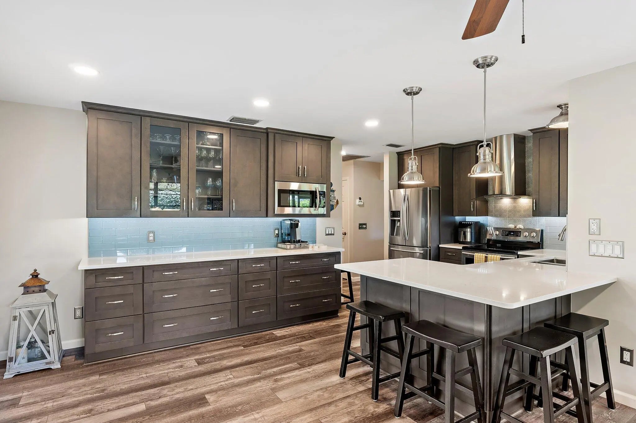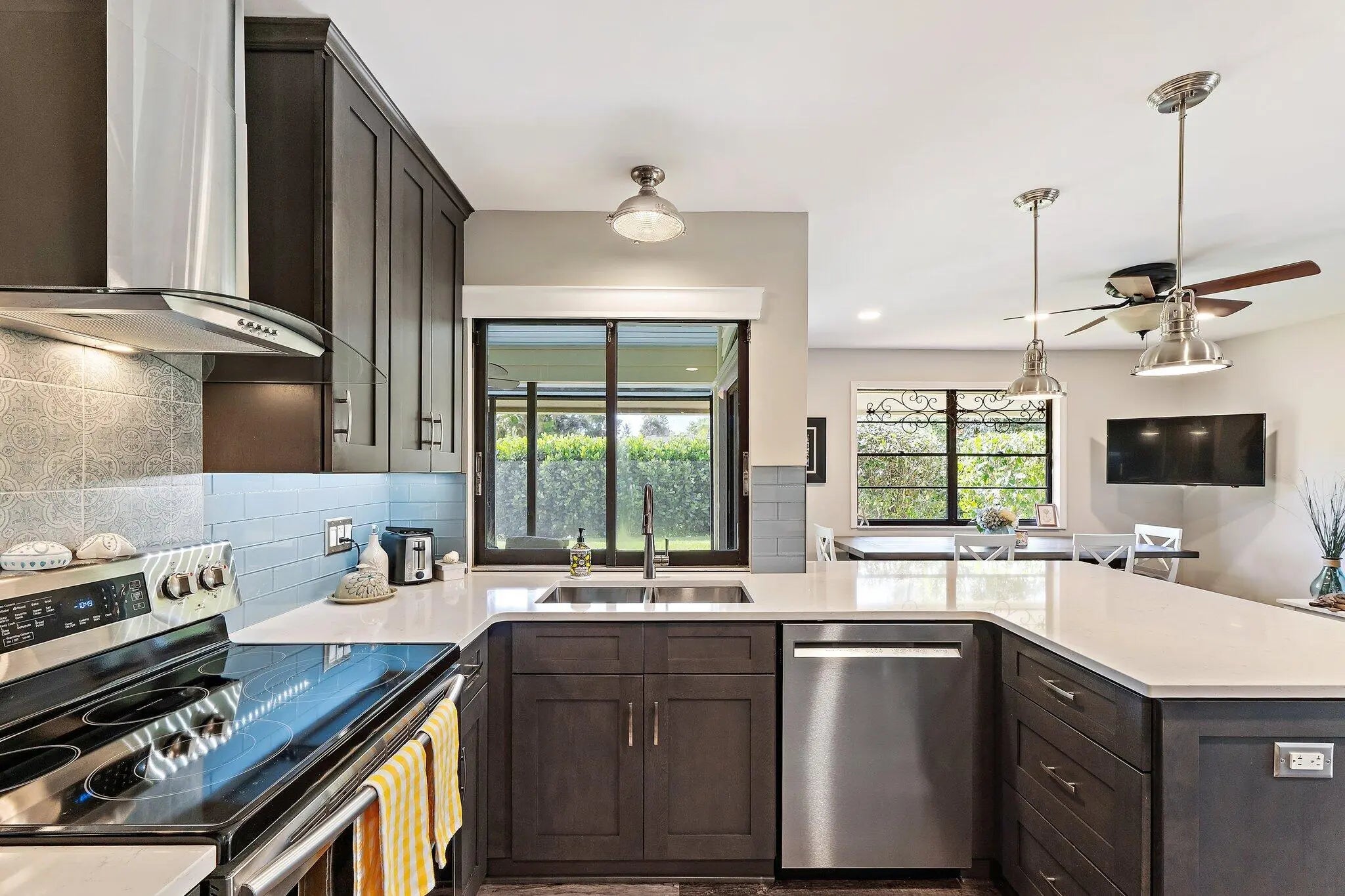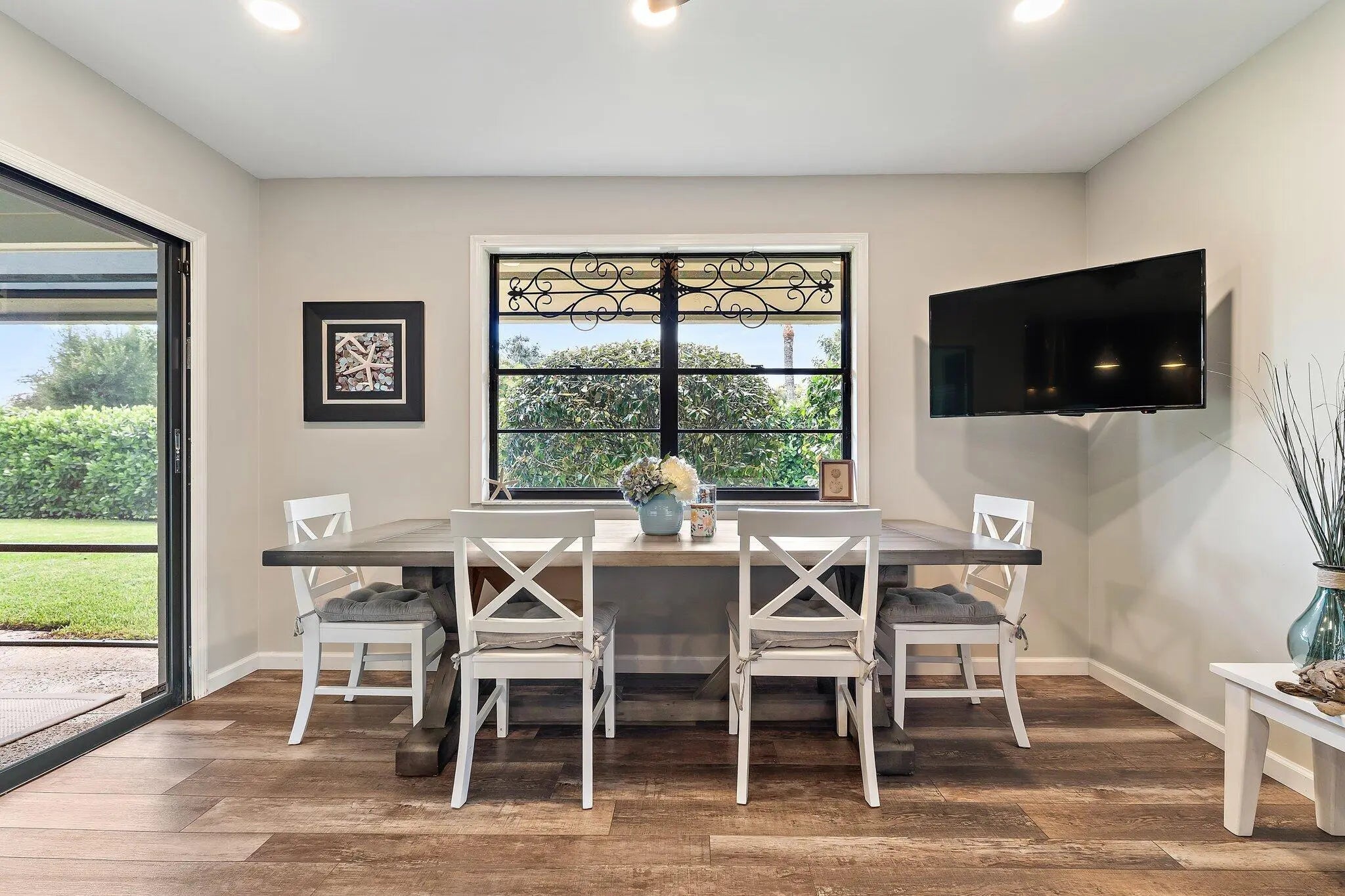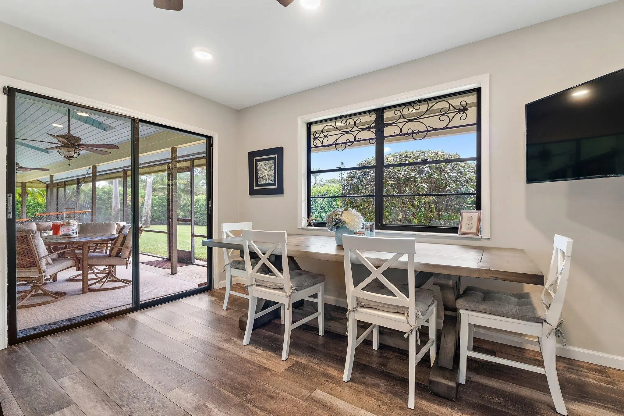 This charming Key West-style residence features three bedrooms, two bathrooms, and a spacious two-car garage. Nestled in a tranquil neighborhood surrounded by natural beauty, it's the ideal retreat for those who enjoy an active, outdoor lifestyle. Inside, the open-concept design creates a welcoming atmosphere, with the living, dining, and kitchen areas flowing seamlessly together. Expansive windows and sliding glass doors invite an abundance of natural light. The newly renovated kitchen boasts sleek stainless-steel appliances, high-end cabinetry, and expansive counter space. Designed with both style and function in mind, it's perfect for everyday meals as well as entertaining. A modern fume hood and thoughtful finishes complete the space. The primary suite offers a serene retreat, featuring a generously sized bedroom, en-suite bath, and abundant closet space. A French door opens directly to the covered, screened lanai for seamless indoor-outdoor living. Two additional bedrooms provide flexibility for family, guests, or a home office, while a dedicated laundry room adds everyday convenience. A seamless metal roof was installed in 2018 for peace of mind. Step out to the screened patio and enjoy the tropical setting, whether you're dining outdoors or simply unwinding in the fresh air. The backyard, framed by lush landscaping, offers plenty of space to soak up the Florida sunshine. Room for a pool if your heart desires. Jupiter Narrows is a scenic community along the Intracoastal Waterway, offering easy access to boating, pristine beaches, and nearby natural treasures such as Jonathan Dickinson State Park and the Hobe Sound National Wildlife Refuge. With tree-lined streets, spacious lots, and a charming blend of Key West and coastal-inspired homes, the neighborhood combines serenity with convenienceclose to excellent schools, dining, and shopping.