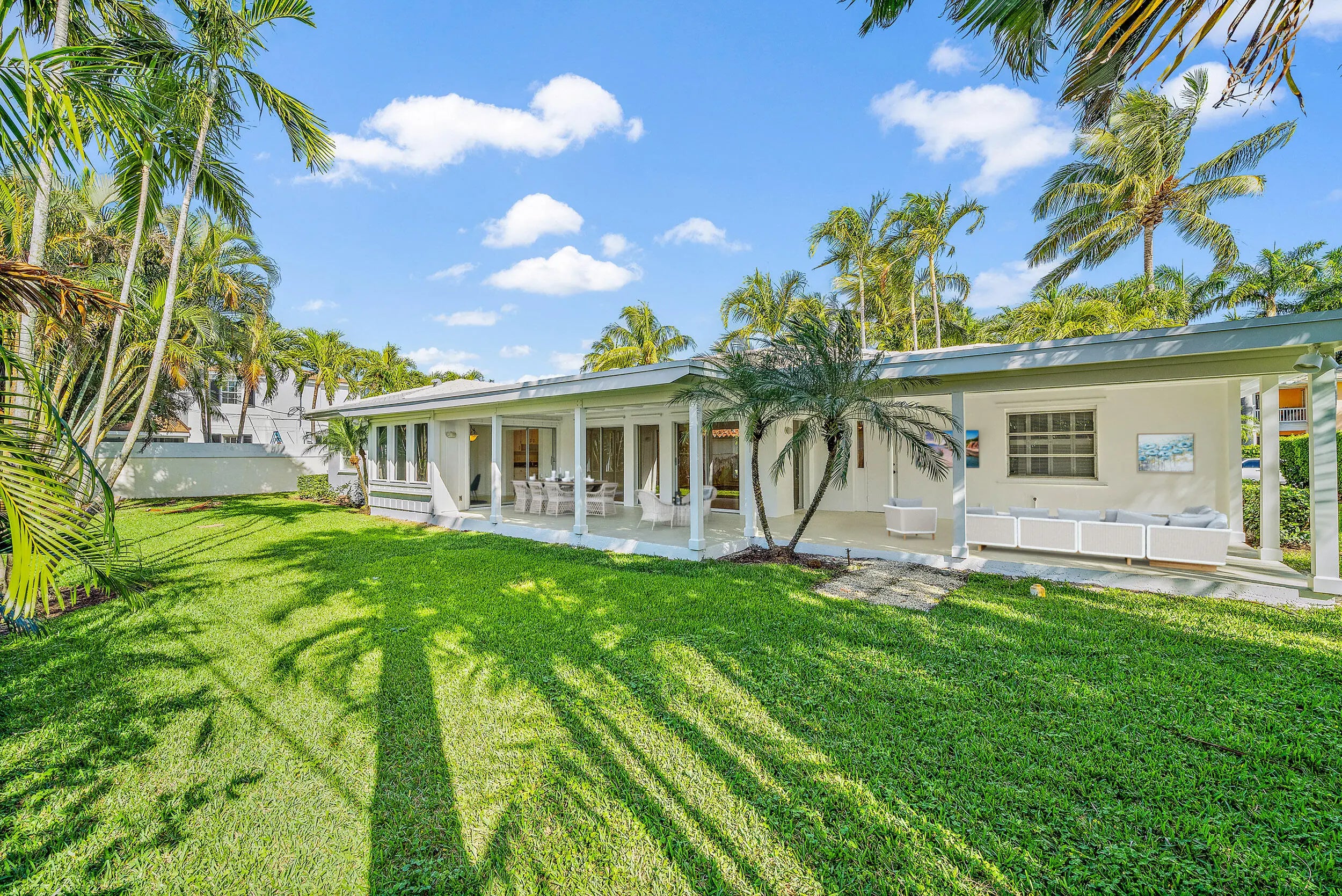 Located on a quiet tree lined street in desirable SoSo, this home is just a short walk to the Intracoastal Waterway down a deeded path. A quick drive takes you to downtown West Palm Beach, I-95 or the shops and restaurants of Palm Beach. Boasting large living spaces and bedrooms with parquet floors. The kitchen suite includes a breakfast nook and an adjacent room that can be used as a home office or pantry. Closet space and storage areas abound in this house and will accommodate all your storage needs. A large covered patio spans the rear of the home and overlooks the large private lawn; a special place for outdoor entertaining close to the kitchen. Available May 2026.