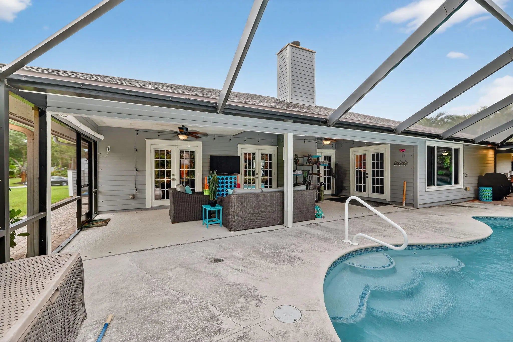 Welcome to your dream home in the heart of Stuart, Florida! This beautifully updated 3-bedroom, 2-bathroom single-family residence is nestled on a spacious half-acre lot within a quiet, gated community offering privacy and peace of mind. Enjoy Florida living at its best with a screened-in pool perfect for relaxing or entertaining year-round. The home features a bright, open floor plan, updated finishes, and ample outdoor space. A fence can be added once approved by the association. Beautifully done kitchen with soft close cabinets and a large pantry. There is a dining area that can be used as second den or easily converted into an office space. EV charging station has been added. All windows are impact but the French doors leading onto the patio are not. With a low HOA and convenient access to top-rated schools, shopping, dining, and beaches, this property offers the ideal blend of comfort, security, and lifestyle. The community also features a storage area that can be rented out at a reasonable rate. Make an appointment to view your next home today!