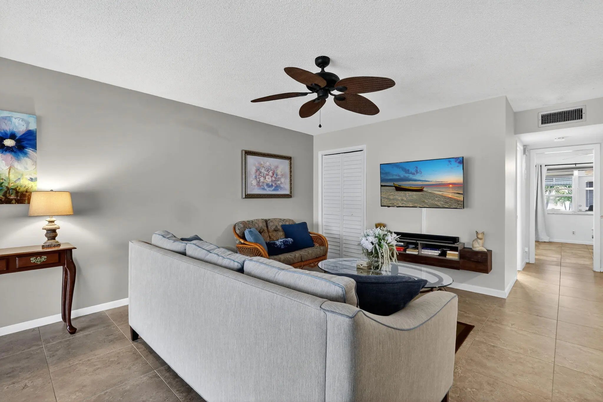 Don't miss this opportunity...NEWLY PRICED! Stunning & fully furnished updated villa with a SUNNY South Exposure! The open-concept living & dining area has beautiful ceramic tile throughout; the exceptionally oversized bedroom includes a newly remodeled en-suite bathroom with walk-in shower & TWO walk-in closets; a second full bathroom has been remodeled with a custom-tiled walk-in shower, and sleek vanity, The inviting Florida room offers newer ceramic tile, windows, and door, and leads to an open patio, perfect for outdoor relaxation. Convenience is built in, with a shared, coin-operated washer & dryer located in each cluster of four villas. NEW ROOF!! Steps from your front door, enjoy resort-style living with access to a sparkling community pool a host of amenities. Best of all, you're just minutes from the trendy energy of Atlantic Avenue, where you'll find award-winning dining, entertainment & the golden sands of the beach!