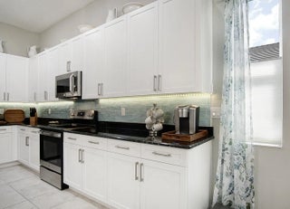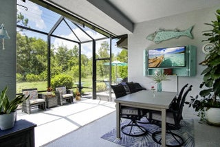 Beautifully appointed 2/2/2 home with a large den that can easily be converted into a 3rd bedroom. Pristine white kitchen cabinets, large island, granite countertops, tile backsplash and upgraded stainless steel appliances. Large welcoming master suite, two closets the walk-in closet has a California closet system. Large master bath has dual sinks, oversized shower and private toilet. Tile throughout the bright open floor plan's main living area. There is carpet in the guest bedroom and den. The living area leads out to a large extended screened Lani with a beautiful micro silk hot tub. There is an additional paved patio for enhanced outdoor living. Oversized 2 car garage with a golf cart door, epoxy floor and extra storage in the spray foam insulated attic. Feel safe with high impact windows, there is a transfer switch located in the garage for a portable generator. Laundry room has a folding area and extra storage with cabinets and a broom closet. This home has everything you need and absolute must see, follow the paver driveway to your beautifully landscaped new home.