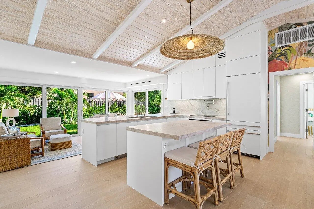 Situated east of A1A, this just renovated beach bungalow features designer finishes, a private pool, and deeded beach access. The home offers sophisticated Palm Beach-inspired décor, ensuring both comfort and quality, with vaulted ceilings in the great room, 3 BR's (one used as a den with a sleep sofa), heated pool and spa, outdoor dining area, professional landscape lighting, and outdoor shower. Conveniently located within short walking distance of the beach and positioned between Palm Beach and Fort Lauderdale airports, the property is minutes from downtown Delray Beach and offers easy access to West Palm Beach and Worth Avenue. Golfers will appreciate proximity to the Par 3 Palm Beach Public Golf Course. This luxury rental is perfect for those seeking an exceptional coastal experience