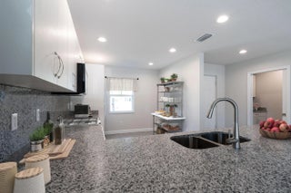 This charming Cottage with a large backyard blends cozy comfort with spacious versatility, featuring a large open concept layout, 1 bedroom plus a bedroom sized den, and 1.5 baths, thoughtfully designed with hurricane-impact windows, metal roofing, and luxury finishes throughout. The den makes an ideal guest room, office, or hobby space, with space-saving pocket doors and a large window overlooking the back yard. The oversized master bedroom and spacious walk-in closet have vaulted ceilings and the ensuite is complete with quartz countertops and tile floor. The kitchen will feature a matching 1 level quartz peninsula Bar Top with enough length to seat at least 4 and an undermounted sink with a matching quartz backsplash. Guaranteed Fixed long term land lease: $529/month for 99 years