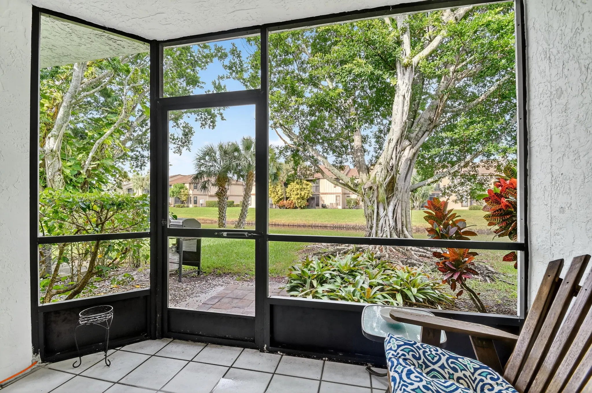 This 3 bedroom, 2 bath property has it all. Newer Roof, Newer A/C, Granite Countertops, Washer and Dryer in unit, Tile floors throughout and a screened porch to enjoy Florida Indoor/Outdoor living! Best of all are the long lake views and greensward area offering an ultra private feel. The home is located in the Resort Style community of River Bridge. Offering a choice of 3 pools, Tennis, Pickleball, Exercise trails, Gym, Basketball, Billiards, Card rooms and Theater its like being on vacation all the time! HOA includes manned Guard Gate and roving security, Full Cable, High Speed Internet, Water, Sewer, Landscaping and more. Owner motivated. Come see this gem today!