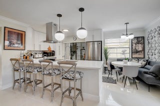 Situated on the picturesque Isle of Capri in east Kings Point. A comprehensive renovation has transformed this condo into a modern oasis. The updates include stainless steel appliances, a front-loading washer and dryer, an island hood, and quartz countertops on custom wood cabinets that effortlessly close. The addition of base and crown molding adds an elegant touch, while the porcelain tile floors and showers provide a luxurious feel. The bathroom features a stylish barn door frameless shower made of high-quality glass. The kitchen is adorned with a beautiful marble backsplash, creating a visually striking focal point. The air conditioning system was replaced in 2017, ensuring optimal comfort. For added convenience and security, rolldown shutters.