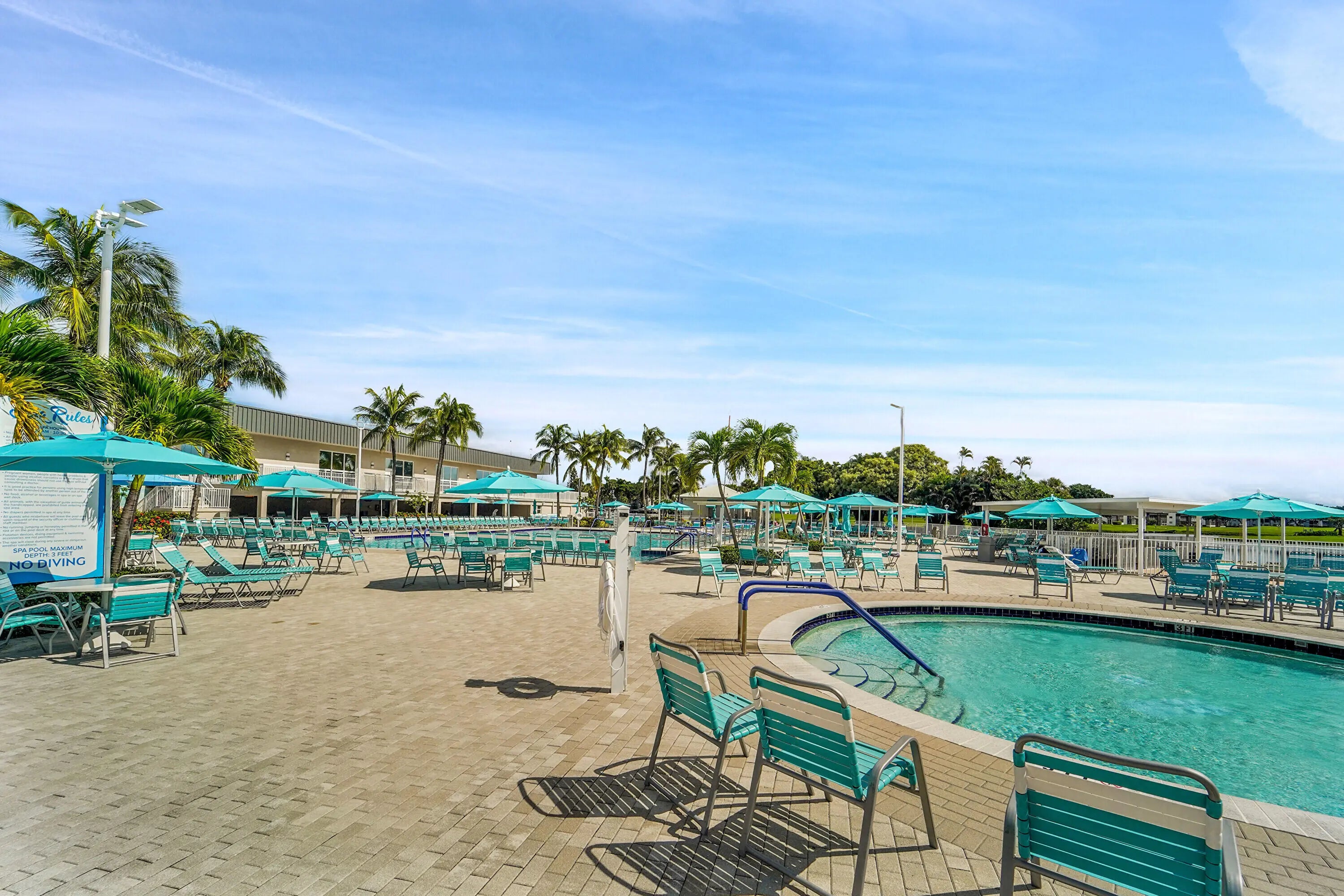 Billiard Room, Clubhouse, Fitness Center, Golf Course, Game Room, Jogging Path, Parking, Pool, Spa/Hot Tub, Tennis Court(s), Cafe/Restaurant, Courtesy Bus, Library, Pickleball Court(s), Sidewalks