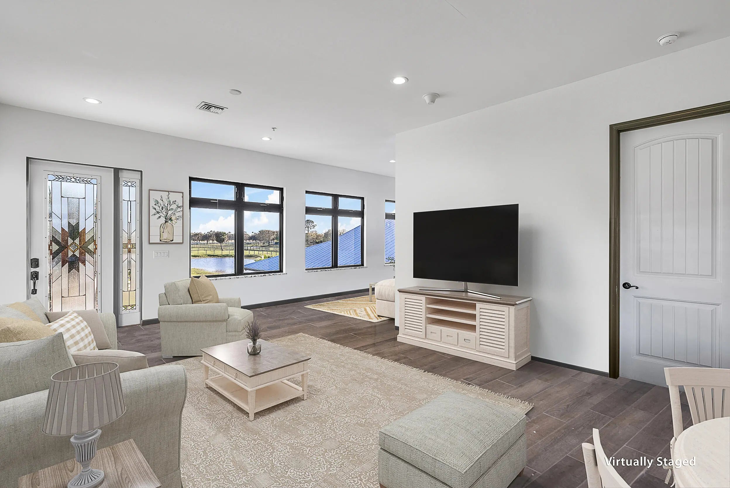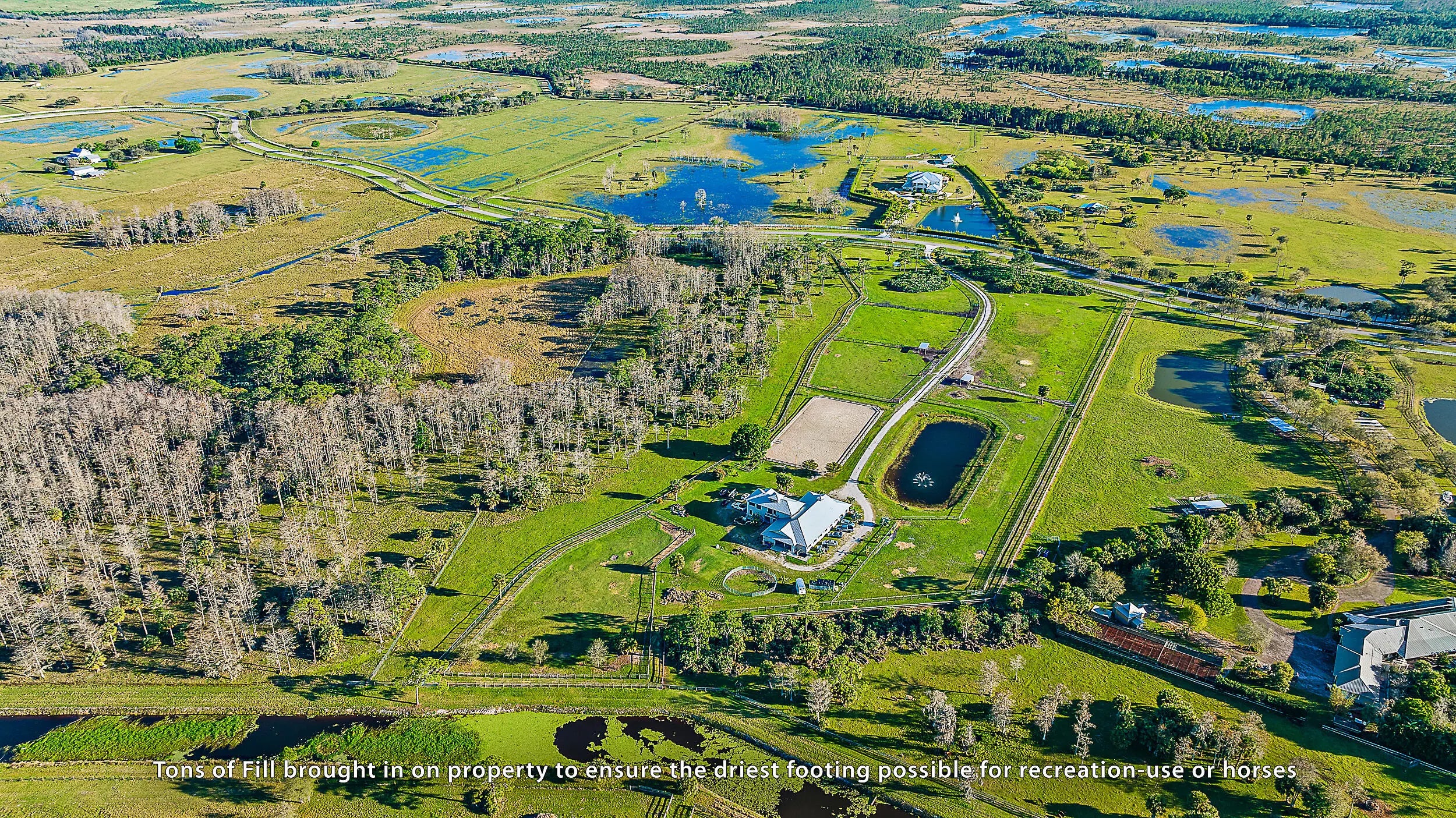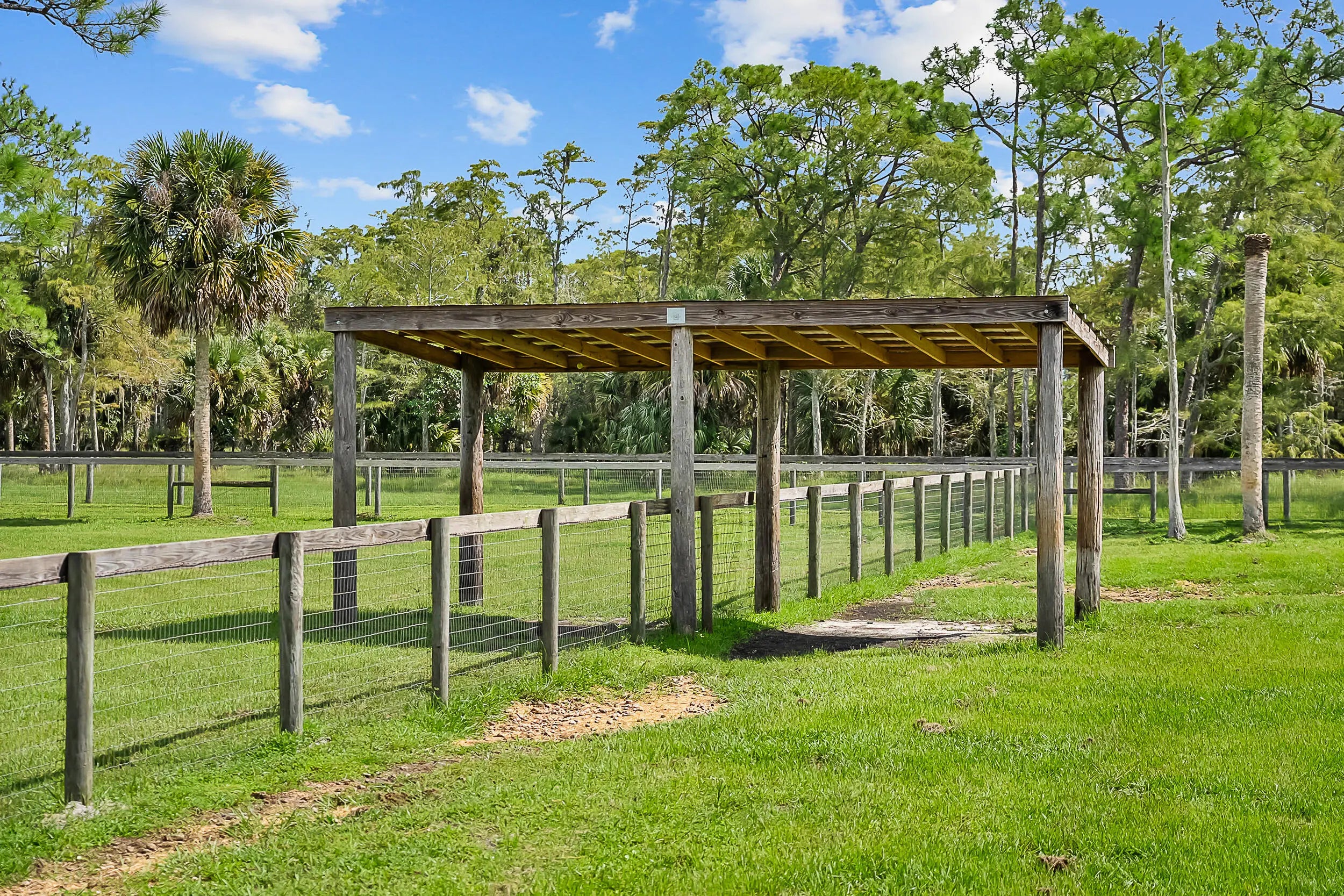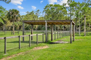 Set on 21.59 acres—approximately 15 usable—within the gated equestrian community of Trailside, this property offers a rare, turnkey equestrian estate. The grounds are fully fenced and cross-fenced, with multiple pastures and paddocks, a fully lit standard riding arena, a round pen, and a private mile long bridle trail. A long private driveway leads to a nearly 5,000 sq ft CBS barn featuring climate-controlled feed and tack rooms. Attached to the barn is a 2,000 sq ft living quarters constructed with rebar-reinforced concrete walls and impact windows and doors, offering 10' ceilings and an upstairs primary suite with panoramic views over the acreage. A designated homesite with underground power is ready for a main residence. The estate is equipped with a whole-house generator with buried propane and a full-property reverse osmosis water system. With mature pastures, thoughtfully planned equestrian infrastructure, and high-quality construction throughout, the property is move-in-ready for training, riding, or year-round equestrian use. Trailside provides privacy while offering access to additional riding and nature trails, including Nine Gems, with Jupiter, Hobe Sound, and Stuart just 15-25 minutes away. This is a rare opportunity to own a secure, private equestrian property with the scale, infrastructure, and flexibility to create a legacy estate.