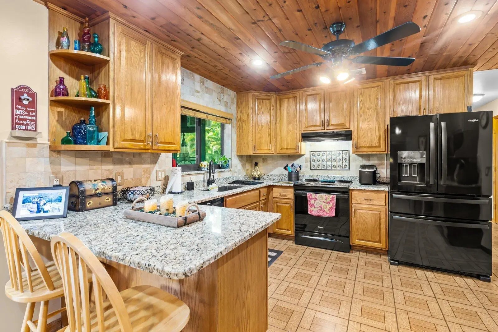 Discover peace and privacy at this beautifully maintained 3 bedroom, 2 bath home set on over 2 acres. This is the perfect home for relaxation and entertaining, with tons of natural light, storage space and country charm! Step outside to your private pond with an arched walkway bridge. Entertain poolside under your own Tiki bar! As an added bonus, there is a CBS dog kennel equipped with water and power, that can easily be converted into a guest home. The possibilities are endless, come make this beautiful home your own!
