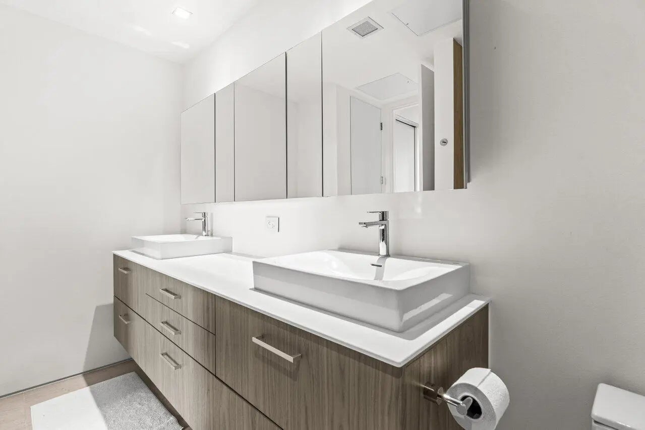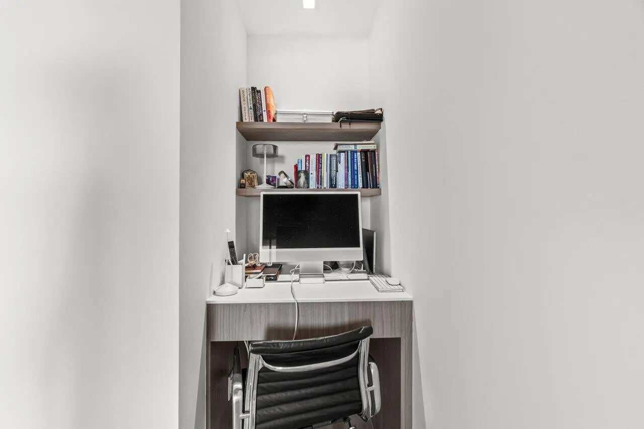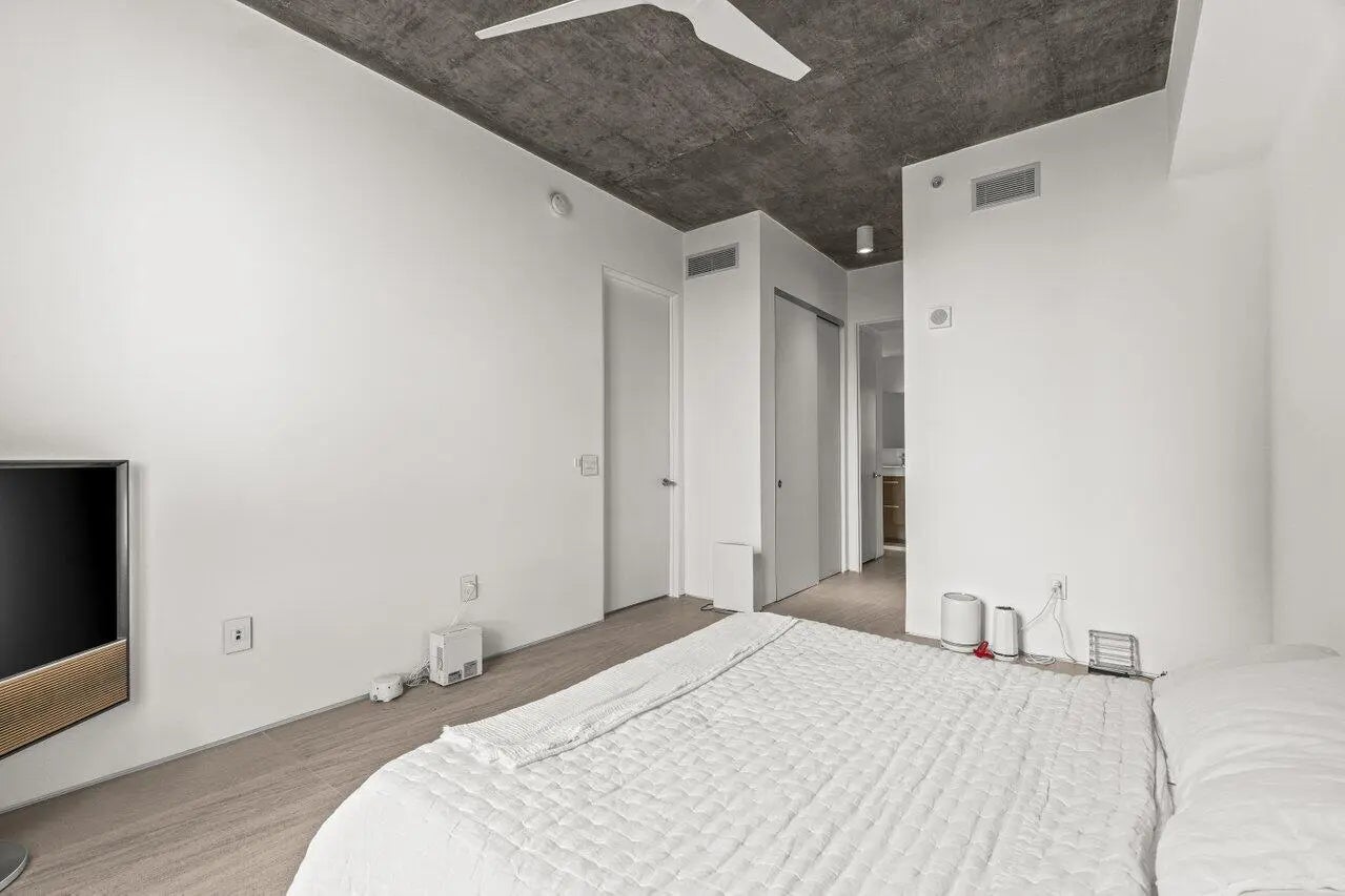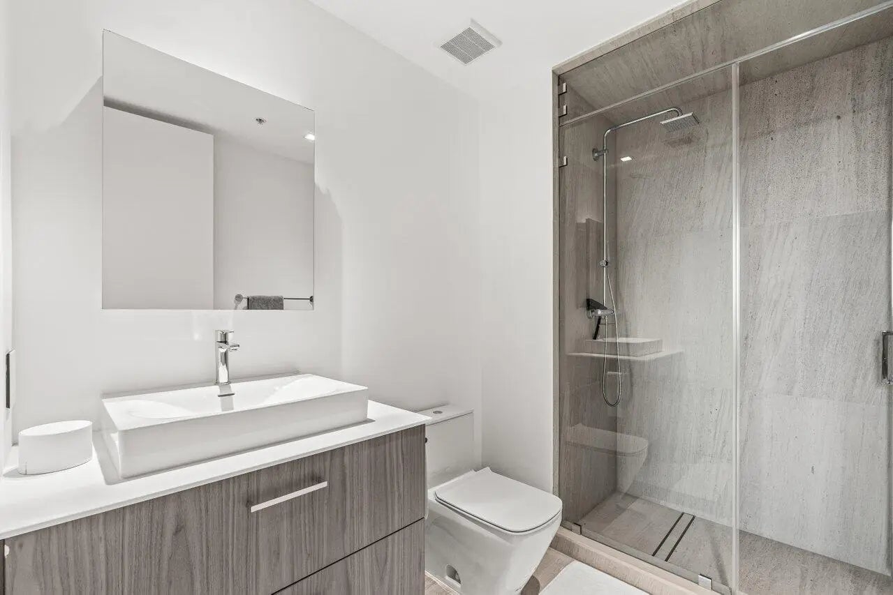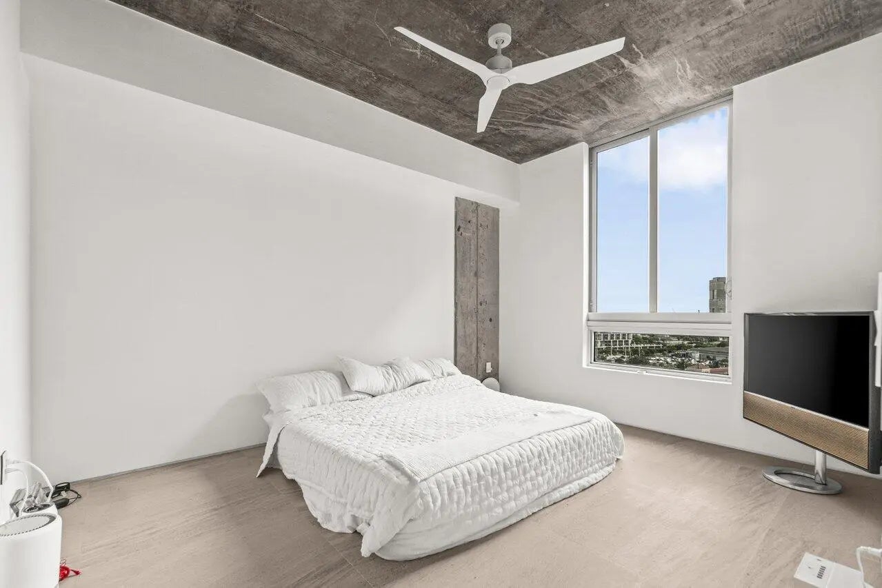 Flawless 2025 renovated 2BR/2BA at The Edge. Condo features mocha limestone honed floors, all new doors and drywall, seamless lighting, and bathrooms with natural stone and frameless glass showers. Both bedrooms have Container Store custom closets. Condo includes reverse osmosis water system, new AC, dehumidifier with pump, and plasma air cleaner. Kitchen boasts Viking stove top, custom-paneled Fisher & Paykel fridge/dishwasher, and Miele washer/dryer. Bonus built-in nook/workstation. Private balcony with city views. Amenities: rooftop pool/clubhouse, fitness & business centers, 24/7 security, lobby, 2 garage spots. Walking distance to downtown restaurants; easy access to PBI, Tri-Rail, and Brightline.