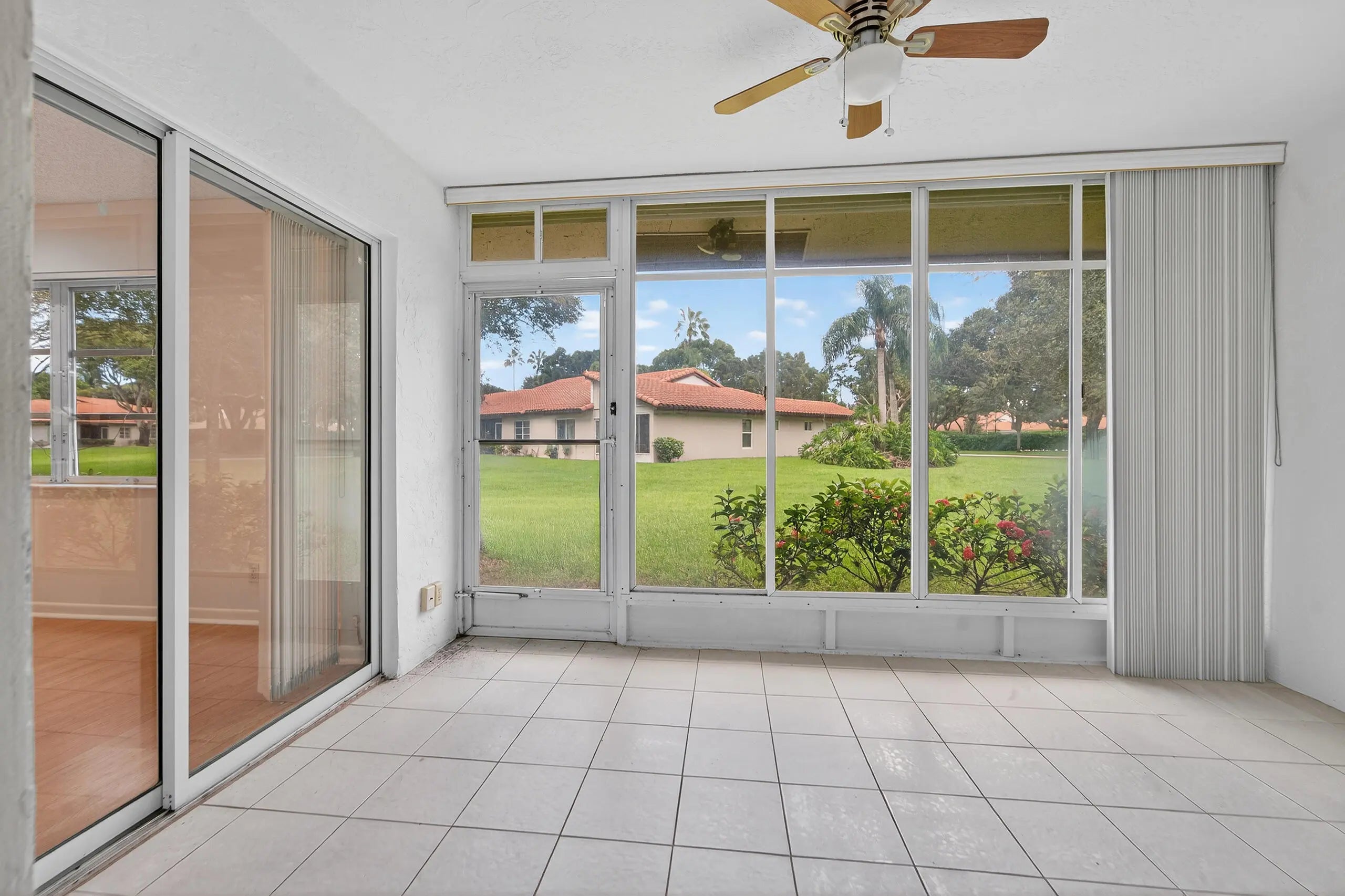 Light, bright, and re-invigorated 2/2 Capri Villa with cathedral ceiling. The kitchen cabinets and counter have been elegantly re-designed. Newer stainless appliances including washer and dryer. Laminate flooring in living room and primary bedroom. Two very large closets in primary bedroom. Primary en-suite bath has upgraded shower, new vanity, and new toilet. The enclosed, screened-in Florida room is perfect an office, den, or guest room, and looks out on a park-like garden view. Inside laundry holds full size washer and dryer. Attached one-car garage fits a full-size SUV, plus there are two parking spaces in the driveway. A/C 2 yrs old. Huntington Pointe is a an active adult community that features a 53,000 square foot clubhouse. The 600 seat theater offers live entertainment and Huntington Pointe is a an active adult community that features a 53,000 square foot clubhouse. The 600 seat theater offers live entertainment and movies year 'round. You also find a fitness center, card rooms, billiard room, aerobicds room, bocce courts, pickleball courts, Har-Tru tennis courts (schedules for December of 2025), 4 heated outdoor pools, heated indoor pool, numerous clubs and organized activities, and a cafe that's open for breakfast and lunch every day. Seller has paid clubhouse assessment in full.