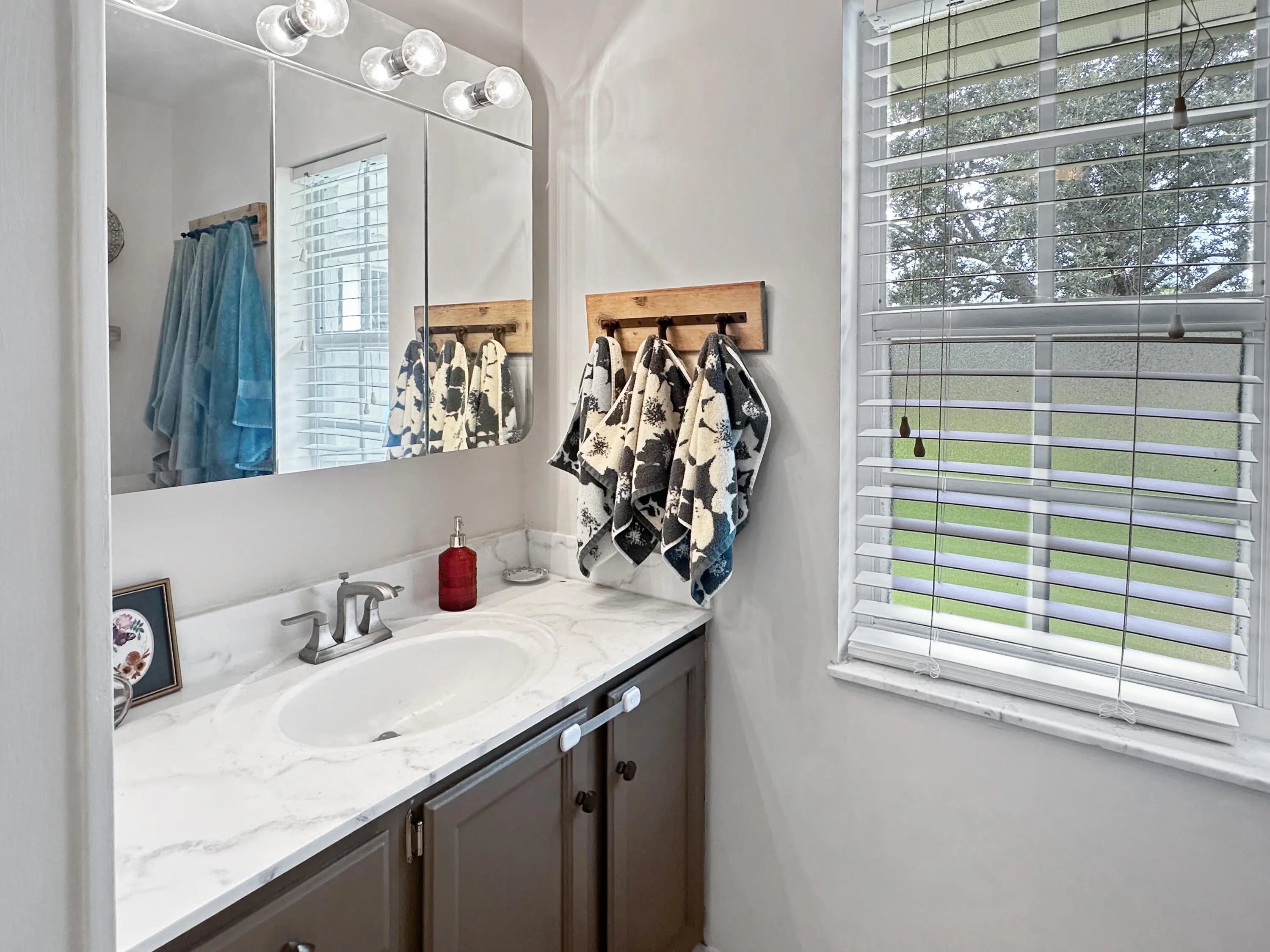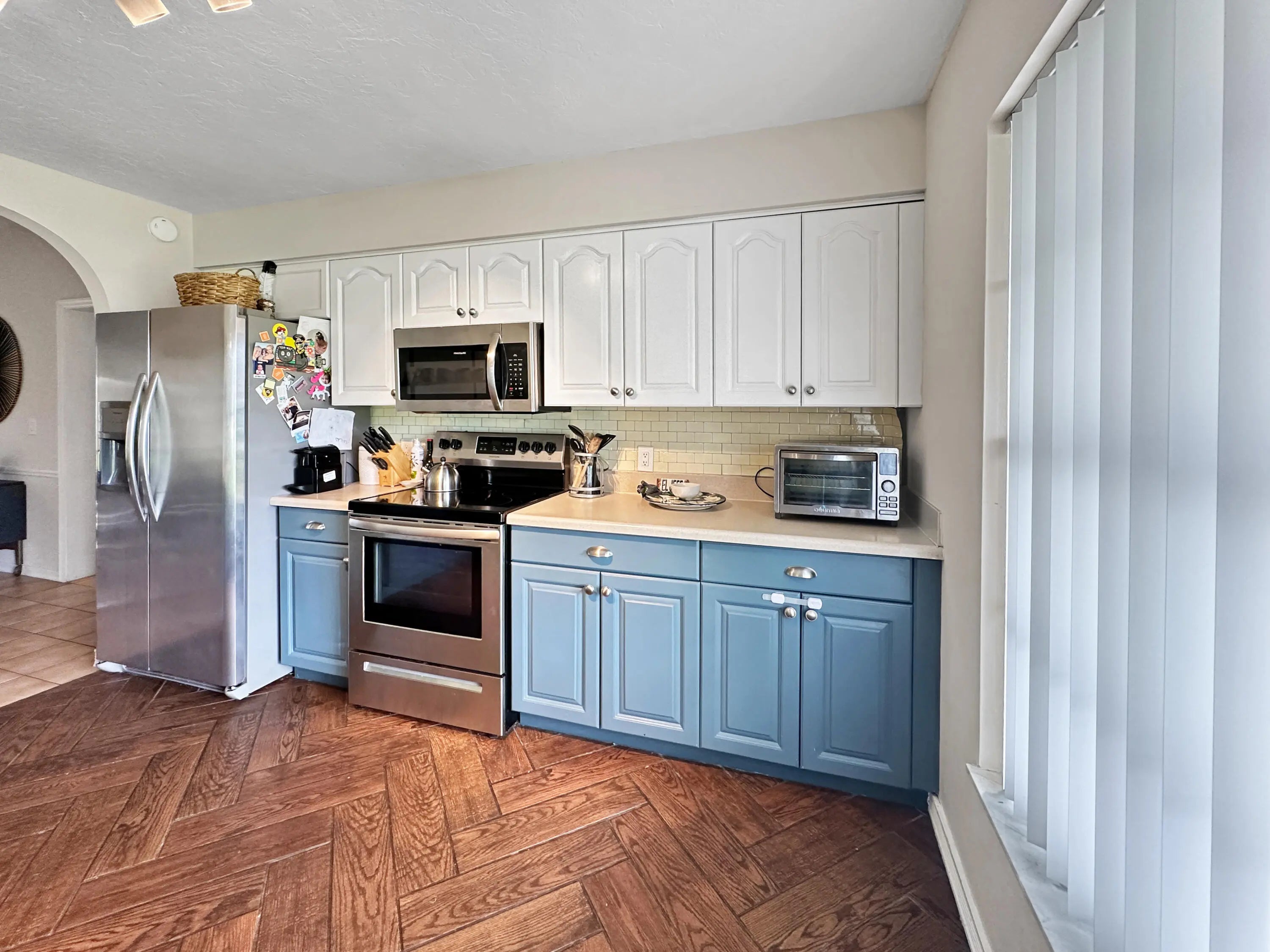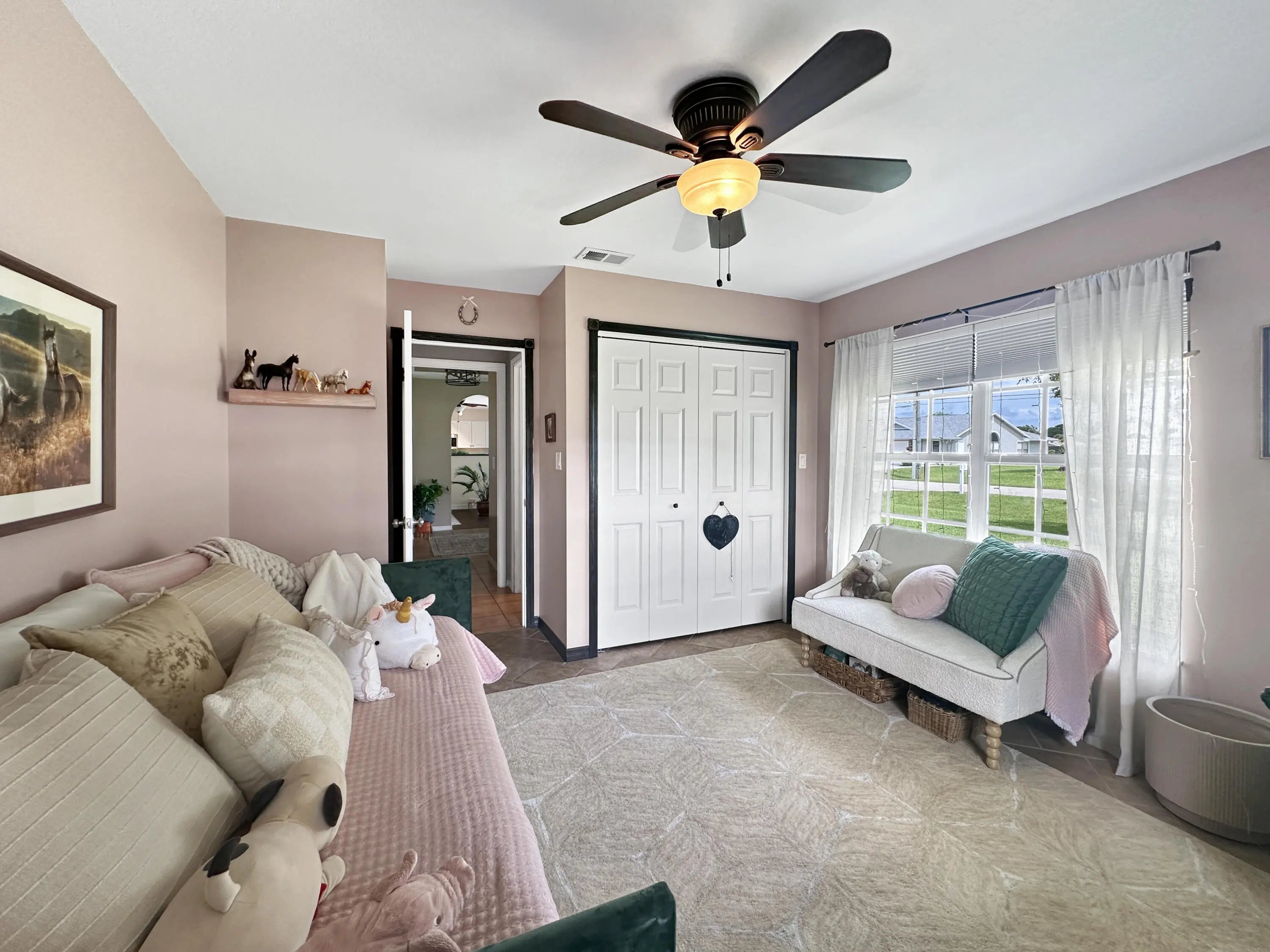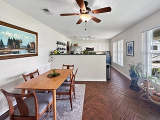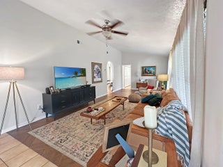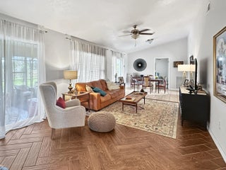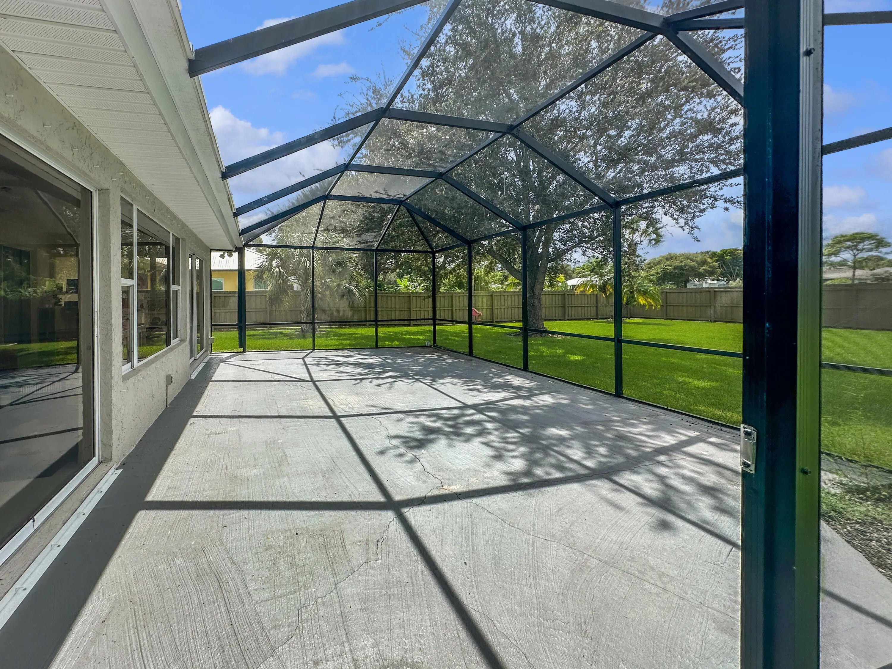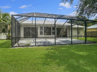 Embrace the elegance of easy living in this impeccable single-family residence, nestled within the serene backdrop of the 6th Fairway of Island Pines golf course. With a stunning metal roof crowning its solid CBS structure, this home radiates both durability and style. Your new retreat boasts two generously sized bedrooms, complemented by two well-appointed bathrooms, ensuring both comfort and privacy. A bonus room offers the versatility to serve as a den, office, or even a third bedroom, catering to your ever-evolving needs. A heartwarming spacious kitchen, complete with newer appliances, melds seamlessly into a cozy family dining area, ideal for creating cherished memories over home-cooked meals. The large formal dining room and family room combination provides a perfect canvas for both elegant entertaining and restful evenings. Step into the enclosed Florida room, bathed in natural light, offering a tranquil space to unwind. Venture out to the expansive screen-enclosed patio, providing an idyllic setting for relaxation amidst the gentle breezes. The property's .39-acre lot affords a substantial fenced backyard, a personal oasis ready for your outdoor hobbies or simply soaking up the Florida sun. The oversized garage, with its double doors, includes ample space for a workshop, crafting a haven for the hobbyist or DIY enthusiast. With a new hot water heater, A/C system, and electrical panel updated in 2021, this home is as functional as it is beautiful. Located in a coveted neighborhood close to all life's conveniences, this is more than a house; it's the key to the lifestyle you've been dreaming of.