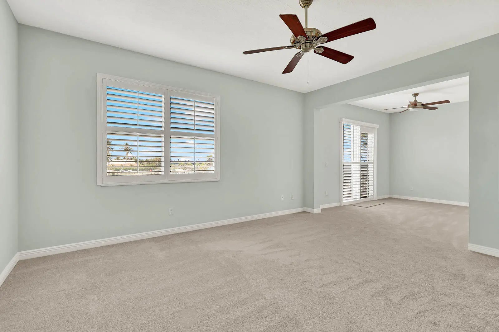 lovely townhouse with magnificent views of the river. The primary bedroom is a suite with double doors and sliders to an upstairs balcony. The balcony has beautiful river views. The balcony off the 2nd bedroom is in the front. Plantation shutters and a 2 car very large garage. The upstairs carpet is new. Downstairs is fully tiled. There is room for an office or a third bedroom and laundry room is upstairs. Walk out the front gate to the beach. Walk out the back gate to the river and kayaking if you choose.