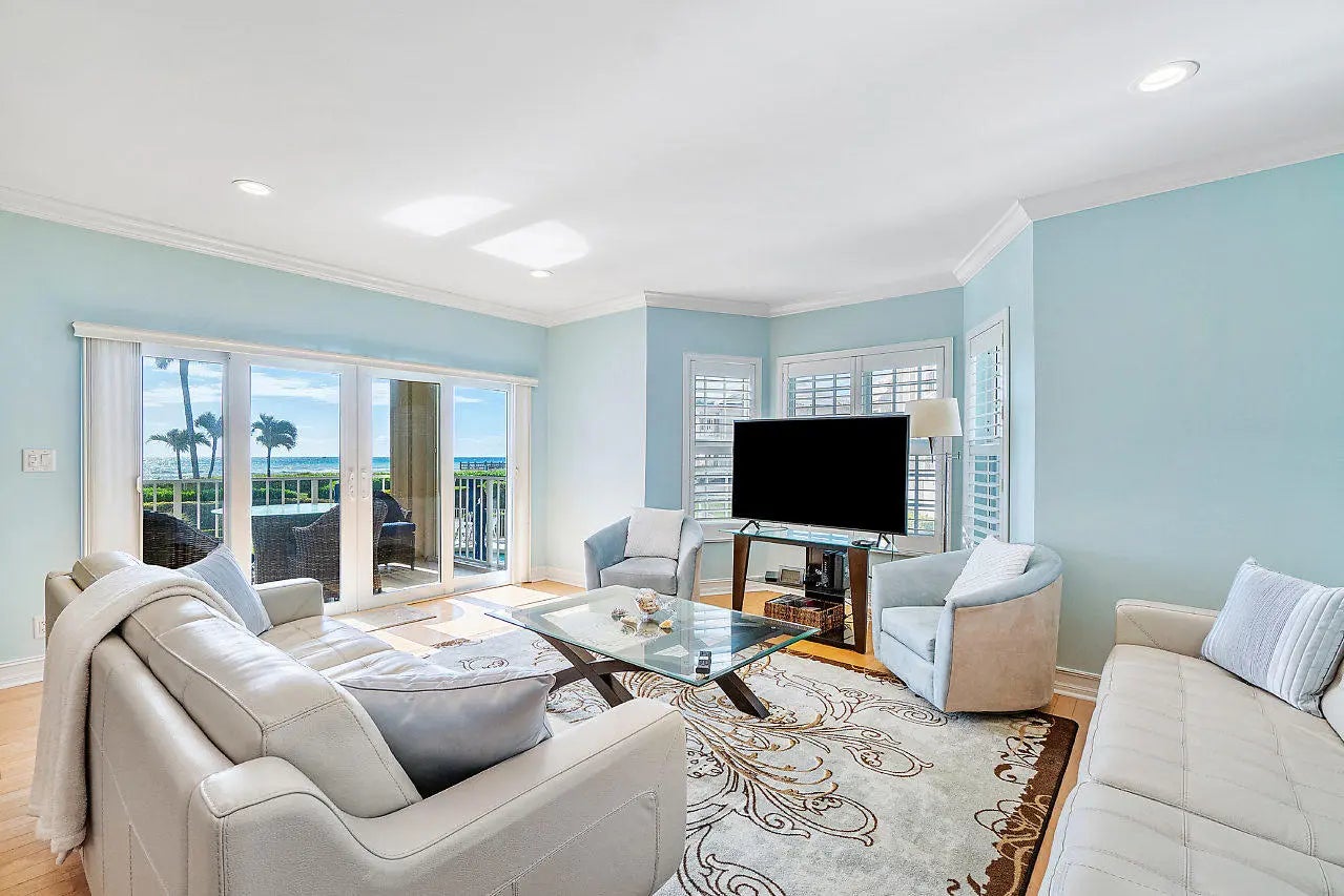 Oceanfront dream rental! Completely renovated interior, wood flooring, impact glass doors and windows, granite counters, custom cabinetry, appliances, marble bathrooms and interior trim. Private elevator from lower-level deeded parking. All contained in a small community in Ocean Ridge, one of the best kept secrets in Florida. Deeded private beach complete with private beach dock, heated pool and tennis court in quiet, prestigious Ocean Ridge