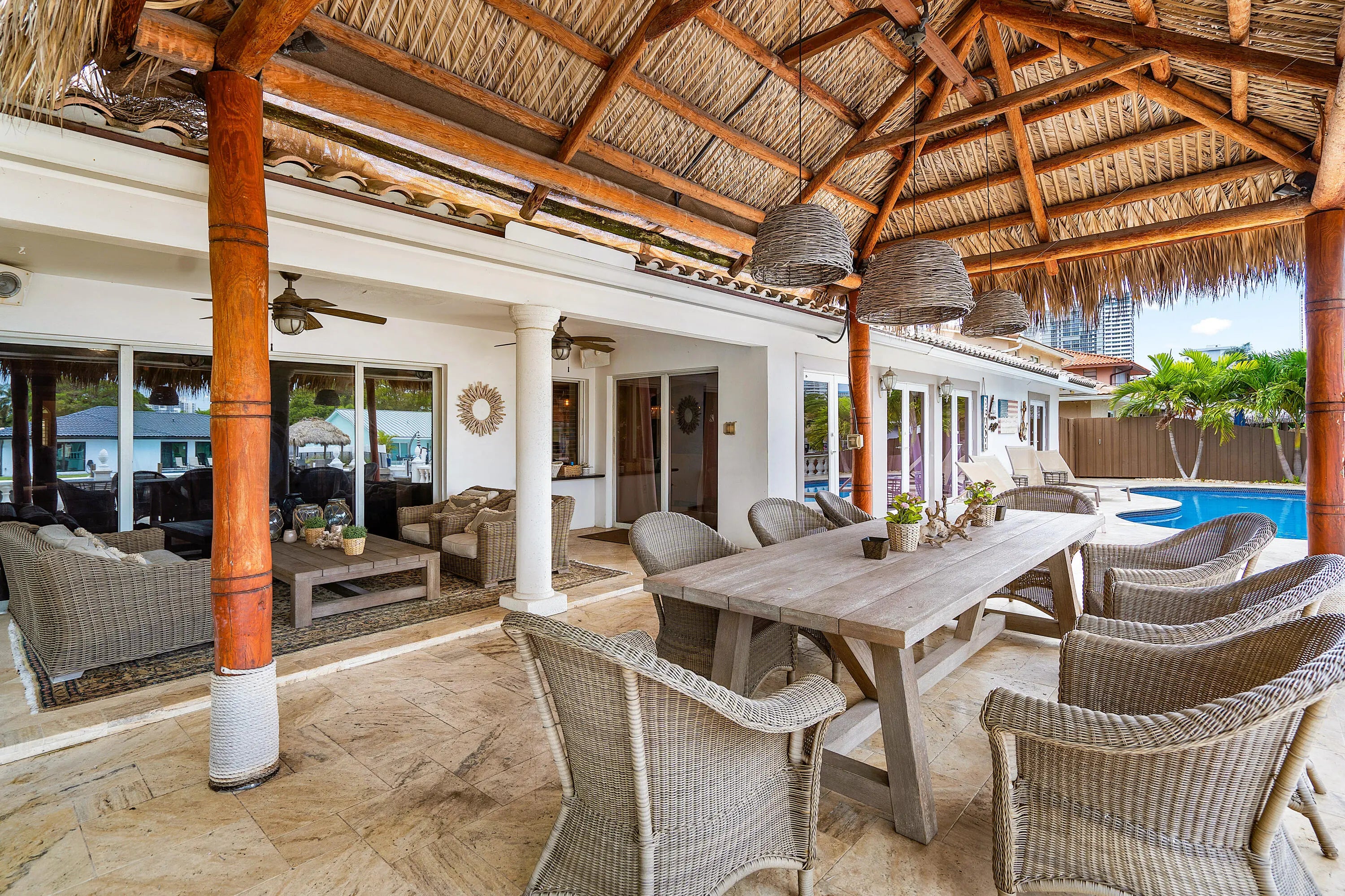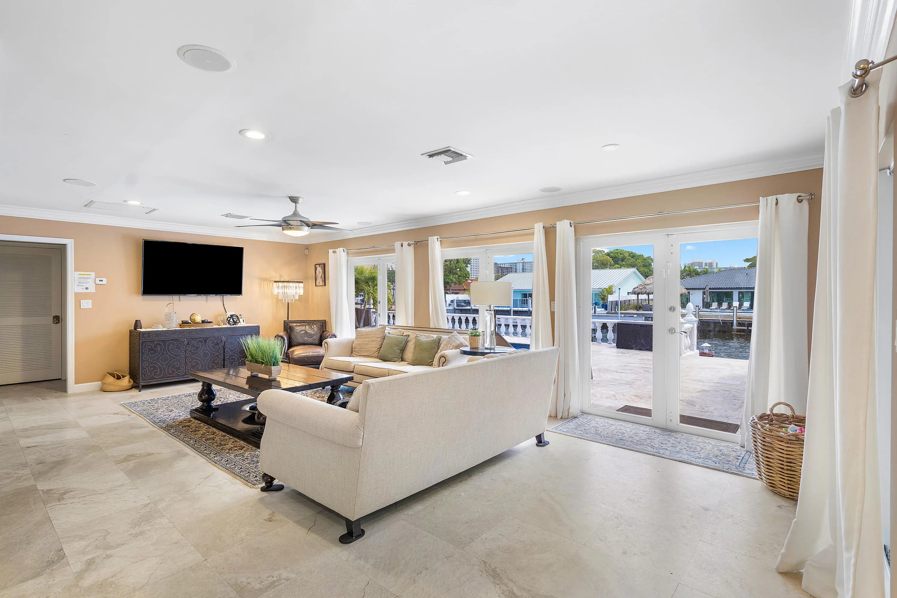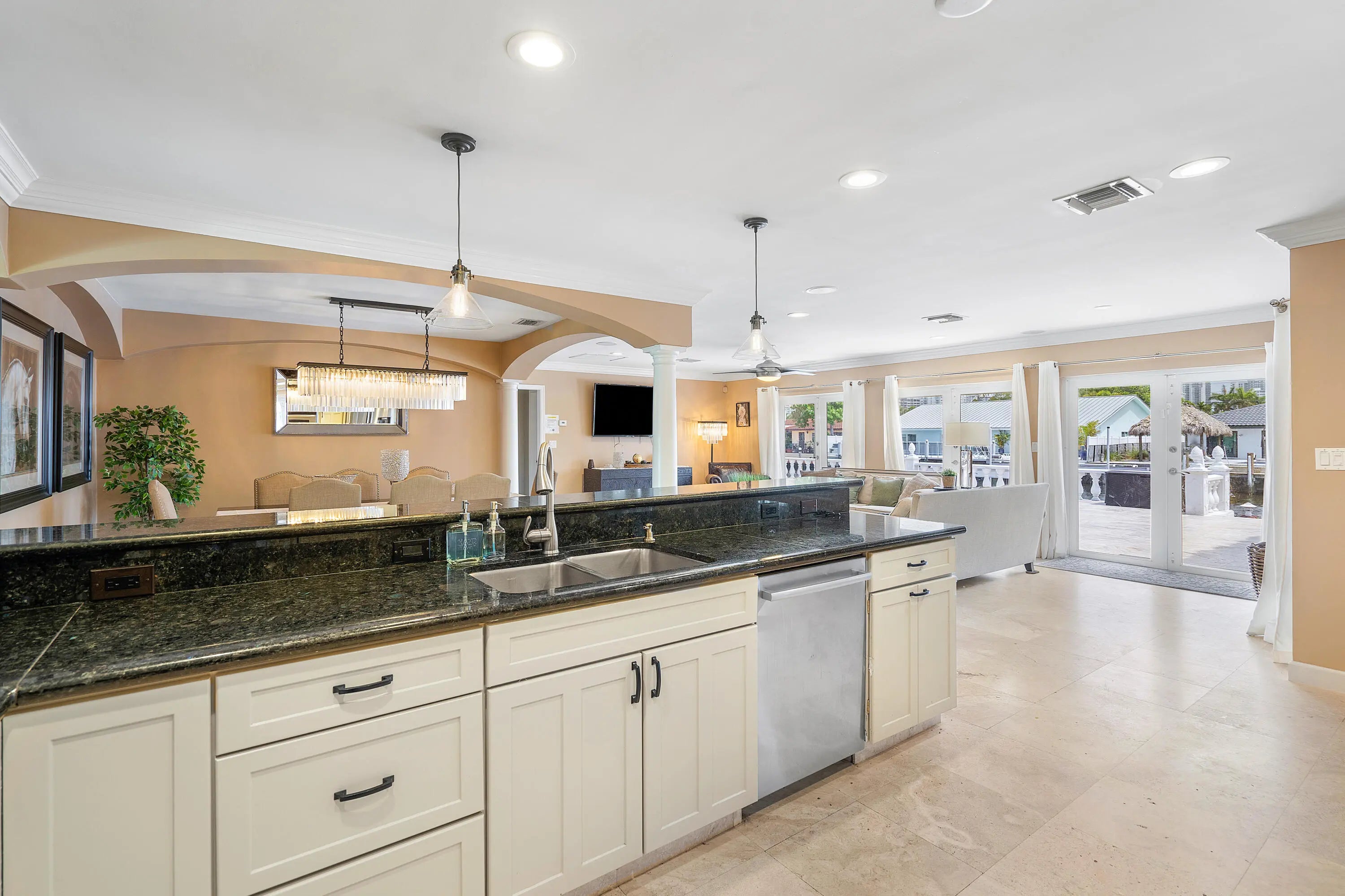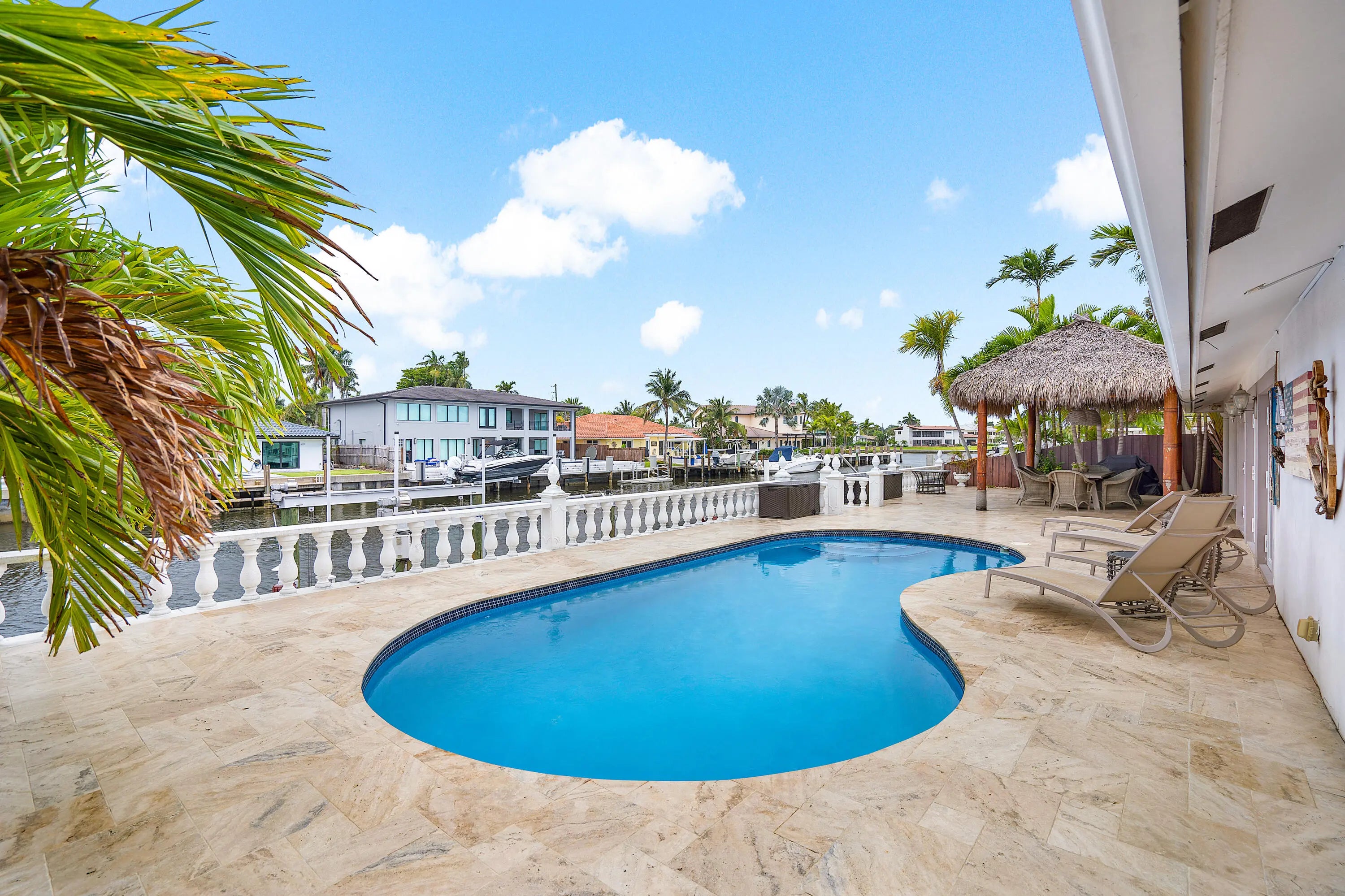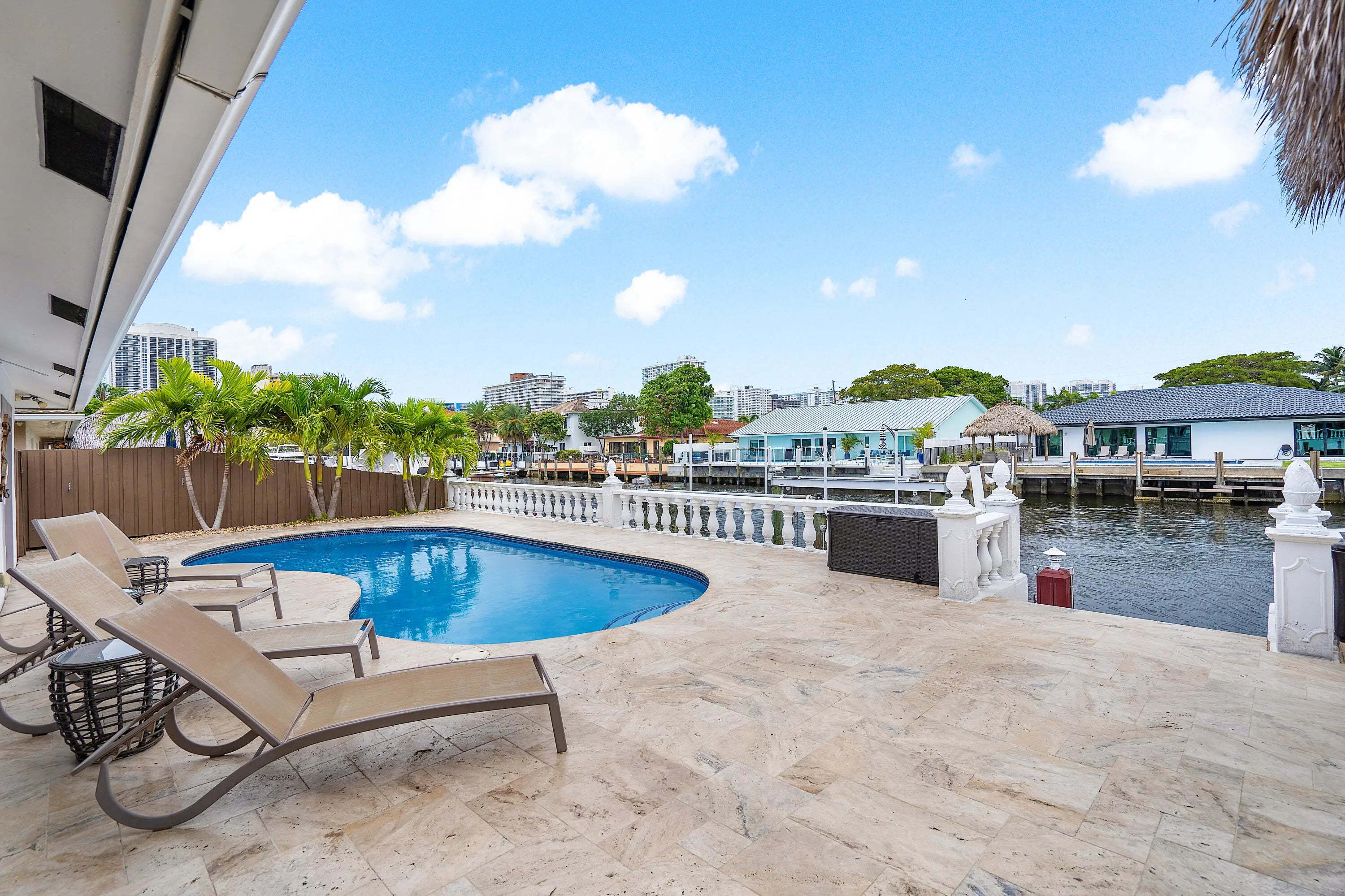 This waterfront gem in Fort Lauderdale offers the perfect blend of comfort, style, and location. The home features impact windows and doors throughout, a split-bedroom floor plan for added privacy, and a spacious master suite designed as a relaxing retreat. The open kitchen with bar seating flows seamlessly into the living areas, creating an ideal space for entertaining. Step outside to a private backyard oasis with a heated pool, tiki hut, and wide water views with no fixed bridges—providing direct ocean access for boating enthusiasts. Additional highlights include a newer AC system and a prime location close to fine dining, shopping, and the beach. This home combines everyday luxury with South Florida's best waterfront lifestyle.