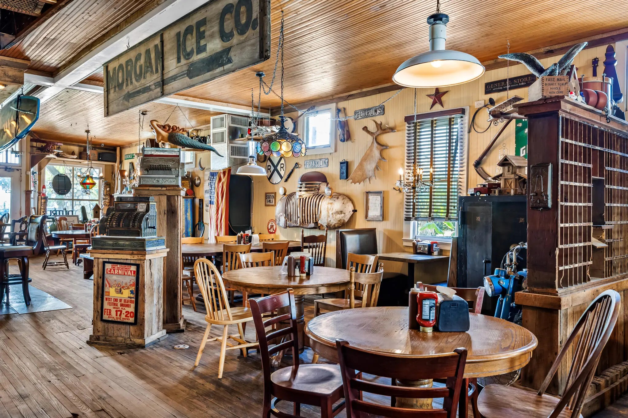 Rare Restaurant Opportunity in Grant-Valkaria! Rib City Still OPEN for business during sales process. Across the street from the Indian River in the heart of town, this iconic property blends history, charm, and functionality. Formerly The Jorgensen's General Store, now ''Rib City'' the building is proudly listed on the National Registry of Historic Places! Sale includes real estate, business & complete on-site inventory, offering a turnkey opportunity. Franchise or complete liberty to make it what you wish! Features include a spacious main dining room, smaller private dining room, outdoor areas, patio, bathrooms, office and so much more. From stone-pillared porch to upstairs deck with river views, this property defines old-Florida character.