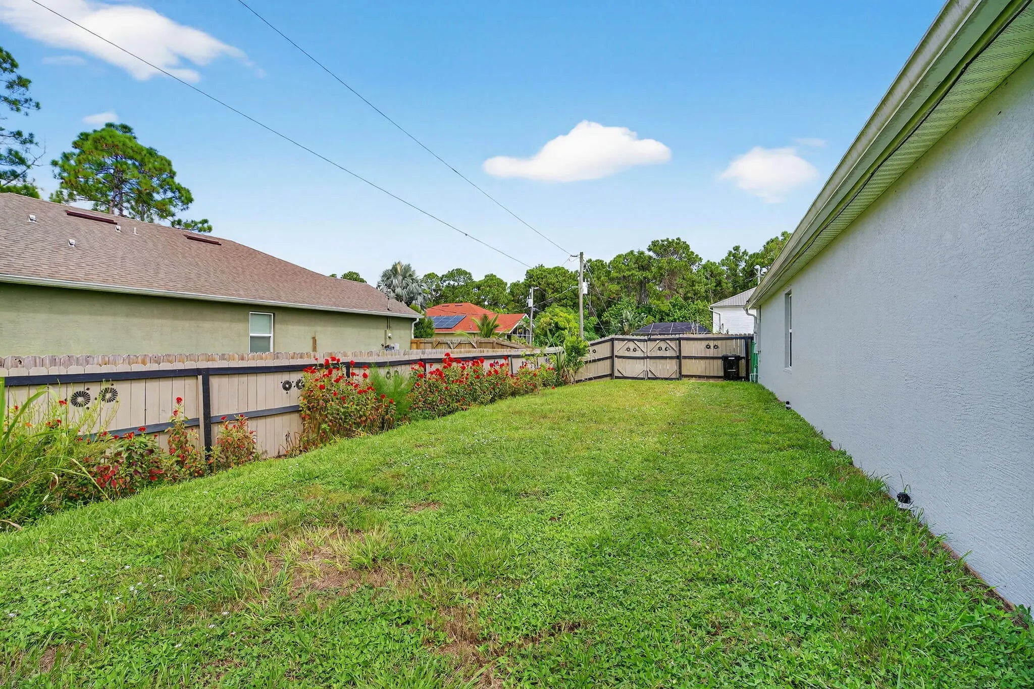 This stunning 4-bedroom, 2-bathroom home offers 1,846 sq. ft. of modern living with an open, light-filled floor plan. The stylish kitchen features stainless steel appliances, while the spacious primary suite boasts a walk-in closet and double vanity. Built in 2019, this home comes with custom molding and elegant finishes throughout. Flooring includes tile in the main living areas and laminate in the bedrooms for easy care and comfort. Step outside to a fenced backyard offering privacy and plenty of space to relax or entertain. Owner will pay for Lawn Care and Maintenance! Located in the desirable Port Malabar area, close to Bayside Lakes, shopping, schools, and more. Move-in ready and designed for both style and convenience!