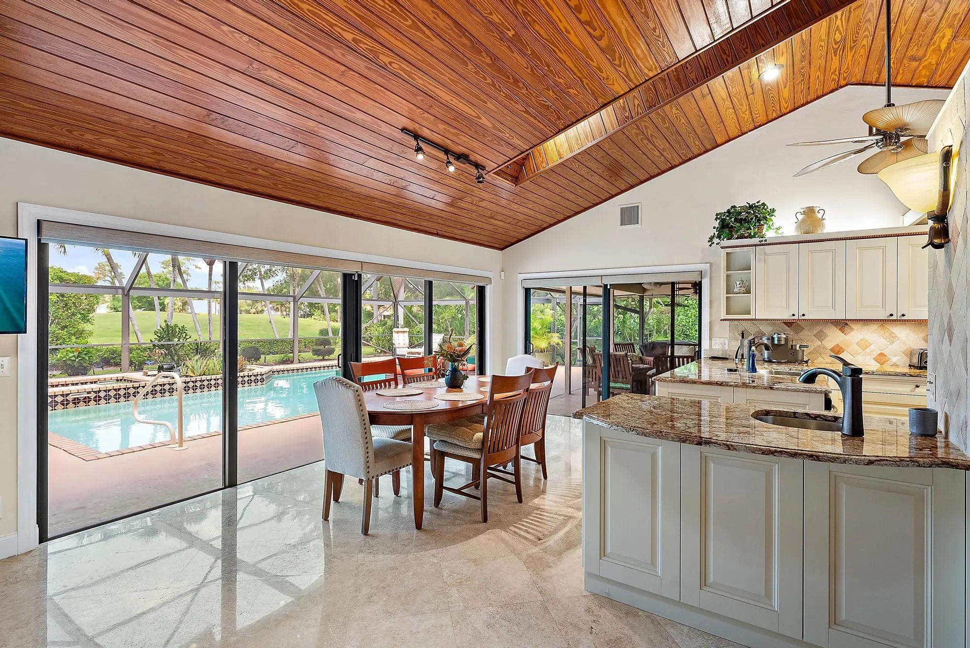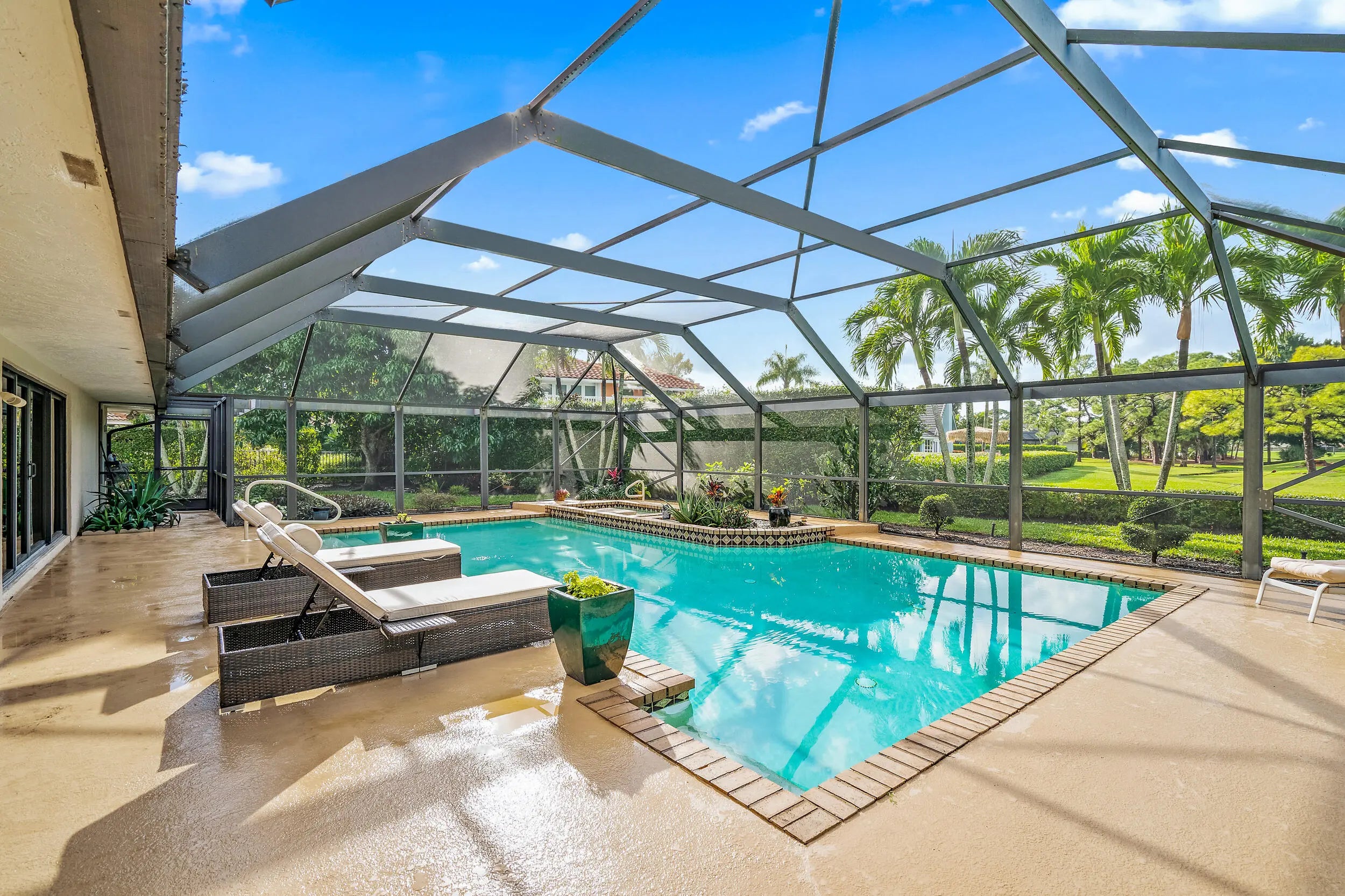 AVAILABLE April 15th, 2026. This beautifully maintained three-bedroom, three-bathroom pool home in PGA National offers a view of the Fazio 4th fairway. This home features a large heated pool with a spa and sits on a tranquil, beautifully landscaped property in the heart of paradise. Great for entertaining, this home features a separate formal dining room, living room, and den with a wood-burning fireplace. Beautiful Saturnia tile throughout the main areas. Oversized laundry room. Impact windows and doors throughout. PGA National is conveniently located in the heart of Palm Beach Gardens, so you'll have easy access to I-95 , the Florida Turnpike & ten minutes to the most beautiful beaches!