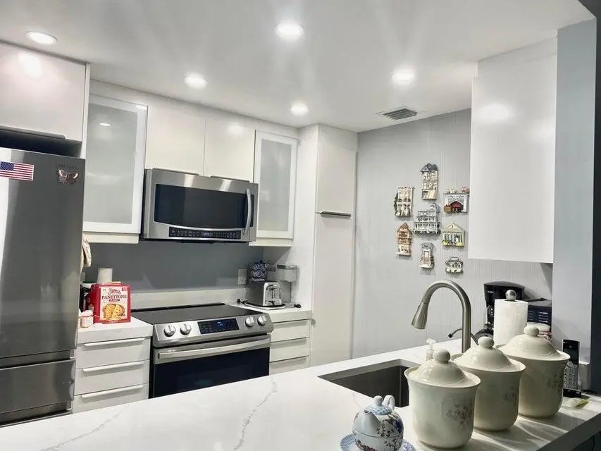 Re-done Beautiful true corner first floor condo. Hurricane impact windows incl. sliding door in 2nd bedroom, Spacious lawn area and canal view from side. Remodeled and new front & back doors.. Encl. porch for that bonus room. washer/dryer closet off porch. Stainless steel appliances, ceiling and lighting redone. quartz counters. Beautiful Porcelin tile. Kings Point is a resort style community with a Bistro andcafe, 3 mult-million dollar clubhouses, 6 tennis courts, pickleball court, Bocce, indoor /outdoor heated pools, billards, theatre with live entertainment, courtesy buses daily to shopping and more...just 6 miles from Historic Delray Beach and the ocean. Welcome home...