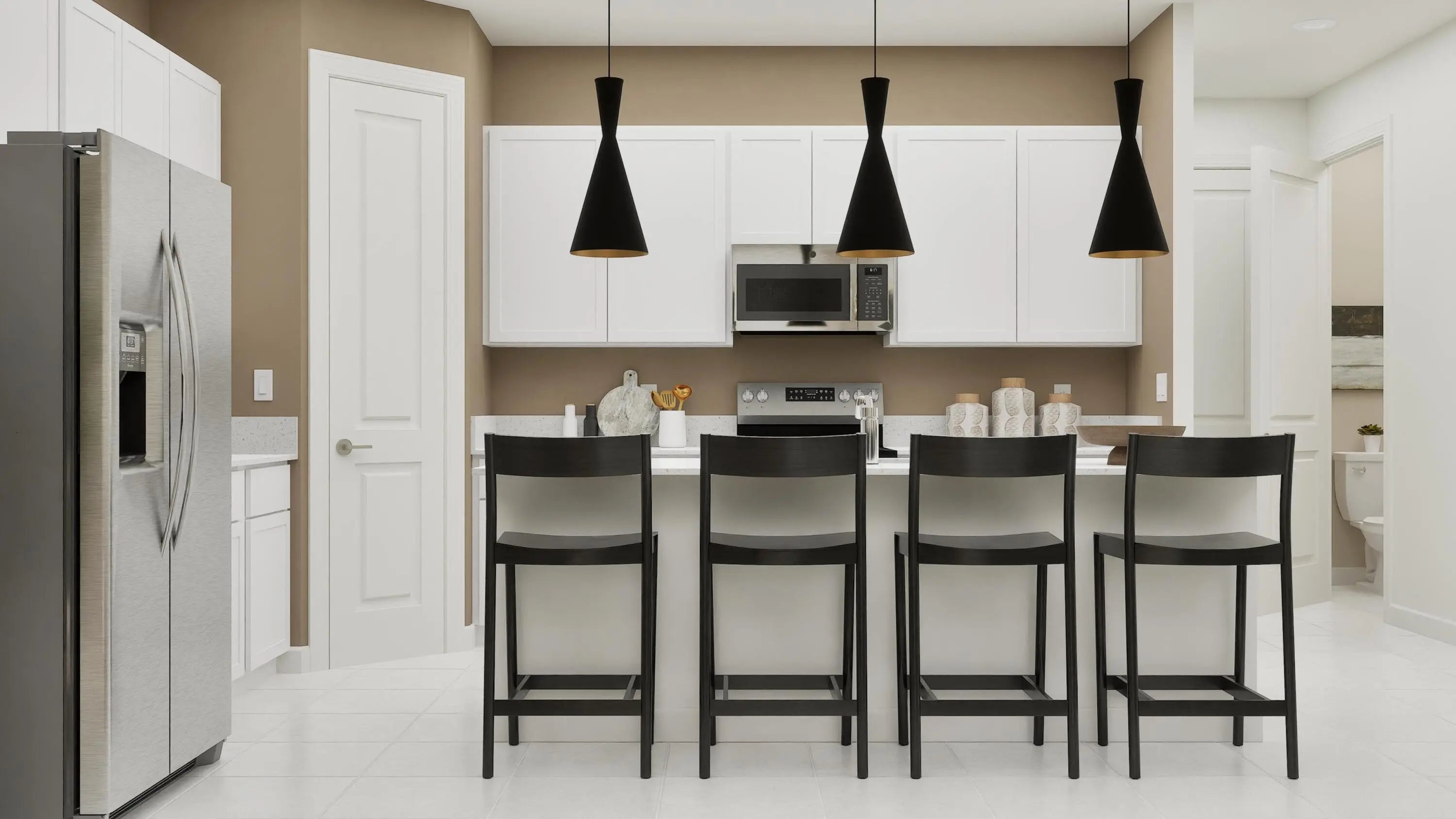This new two-story townhome has a smart layout that offers space and convenience. The first floor is occupied by the living area, which includes an open kitchen, welcoming Great Room and an airy dining room with lanai access. Upstairs is a versatile loft that thoughtfully separates two secondary bedrooms from the spacious owner's suite, which comes equipped with a private bathroom and two walk-in closets. Prices, dimensions and features may vary and are subject to change. Photos are for illustrative purposes only.