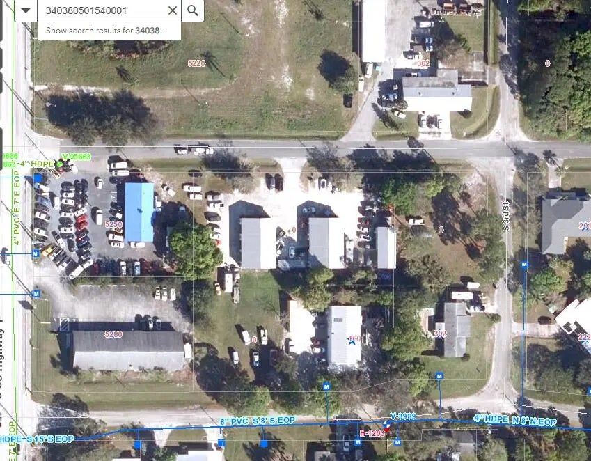 Affordable General Commercial corner lot .35 Acre mostly cleared. (140 x 109). City water located on the opposite of the street (See utility map under documents tab). Located just of US Hwy 1 close to the dealerships, great location for a body or auto repair shop in desirable White City. Or great for your personal storage building for your boat and RV! (SW corner of Melton Dr and South 3rd St.). See documents tab of building site plan for 4,661 sq ft warehouse/office with 2,435 sf of warehouse and 2,2226 of office( can be modified to have more warehouse/less office).