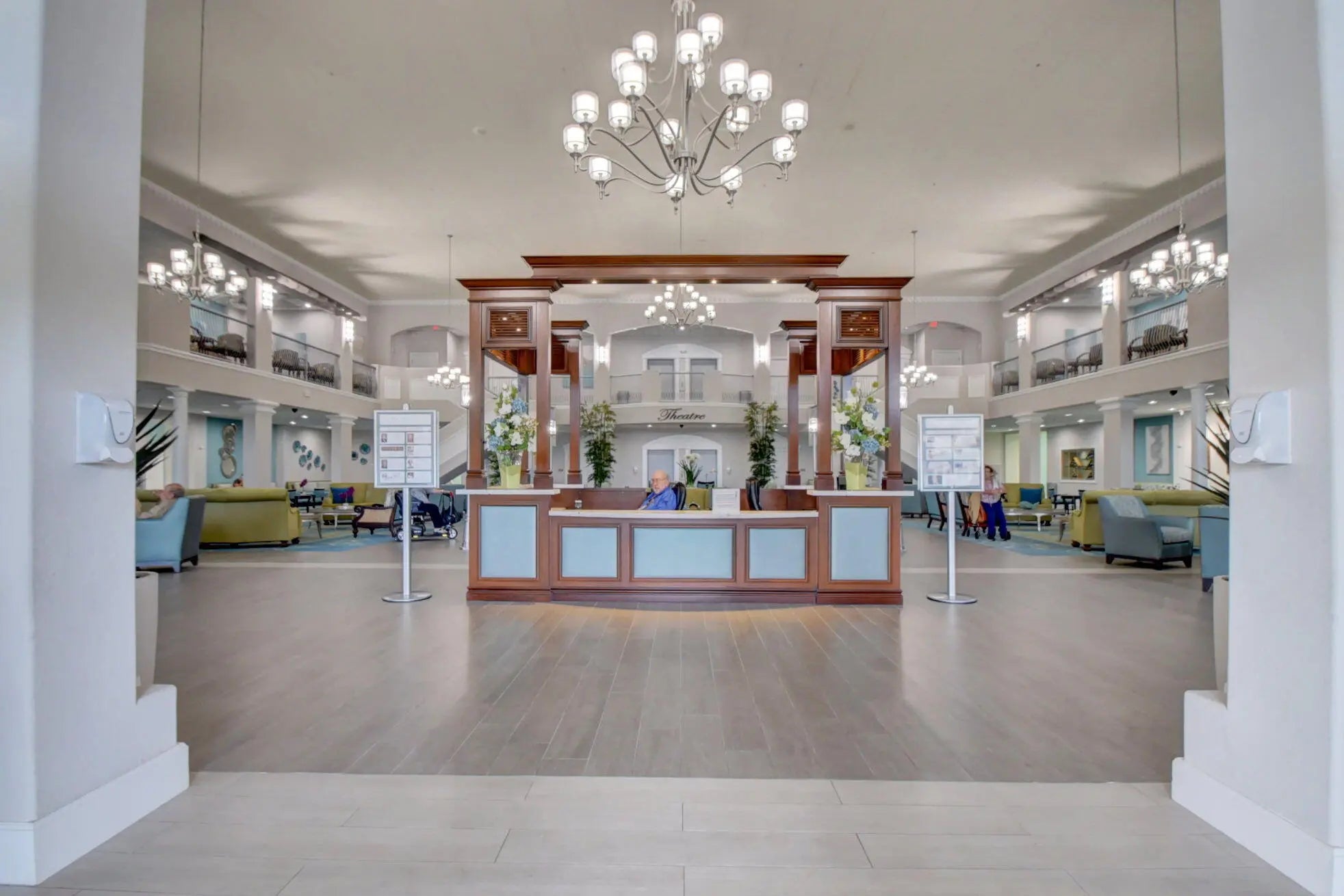 Clubhouse, Fitness Center, Golf Course, Game Room, Sauna, Shuffleboard Court, Tennis Court(s), Cafe/Restaurant, Community Room, Courtesy Bus, Library, Pickleball Court(s)