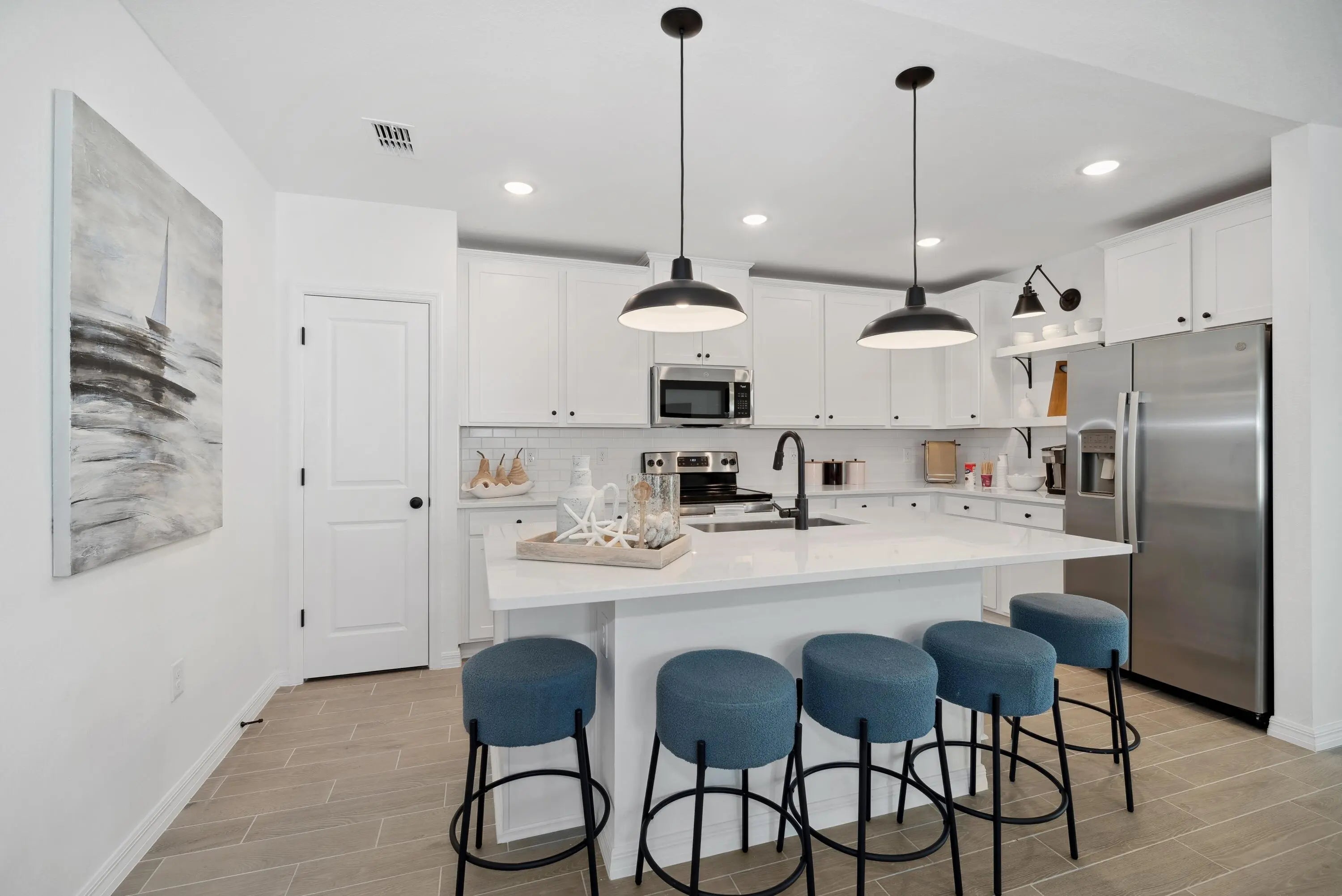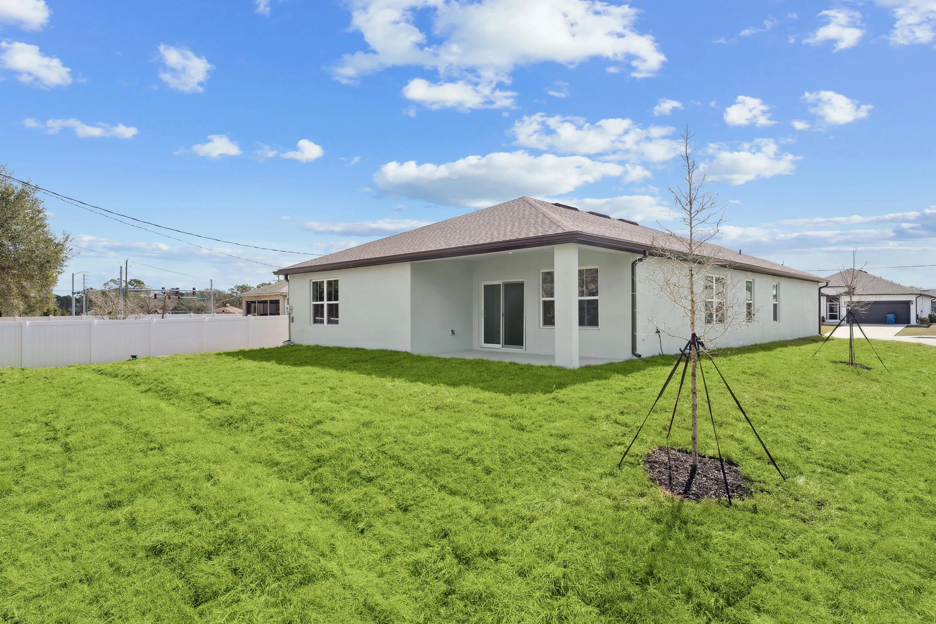 This Passionflower II offers an Extra Suite Plus with a private entrance, living room, and full bath—perfect for guests, extended family, or rental flexibility. The great room and dining area flow together under a vaulted ceiling, creating a bright, open space ideal for entertaining. A covered patio extends the living area outdoors, while the kitchen features a Carrara Miksa quartz center island and modern finishes. The primary suite includes a spacious walk-in closet and a sleek en suite bath with a glass shower enclosure. Impact windows provide peace of mind, and with no HOA, you'll enjoy the freedom to make this home your own. White PVC Privacy fence to be installed prior to closing. This home has it all. Nearby shopping centers along Malabar Road and Babcock Street offer everything you need, including Publix, Walmart Supercenter, CVS, and local boutiques. Grab your morning coffee at Starbucks or Dunkin', enjoy casual lunches at Great Wall Restaurant or La Estancia de Luisa, and explore the many neighborhood eateries that give Palm Bay its welcoming small-town charm all just a short drive from your doorstep.