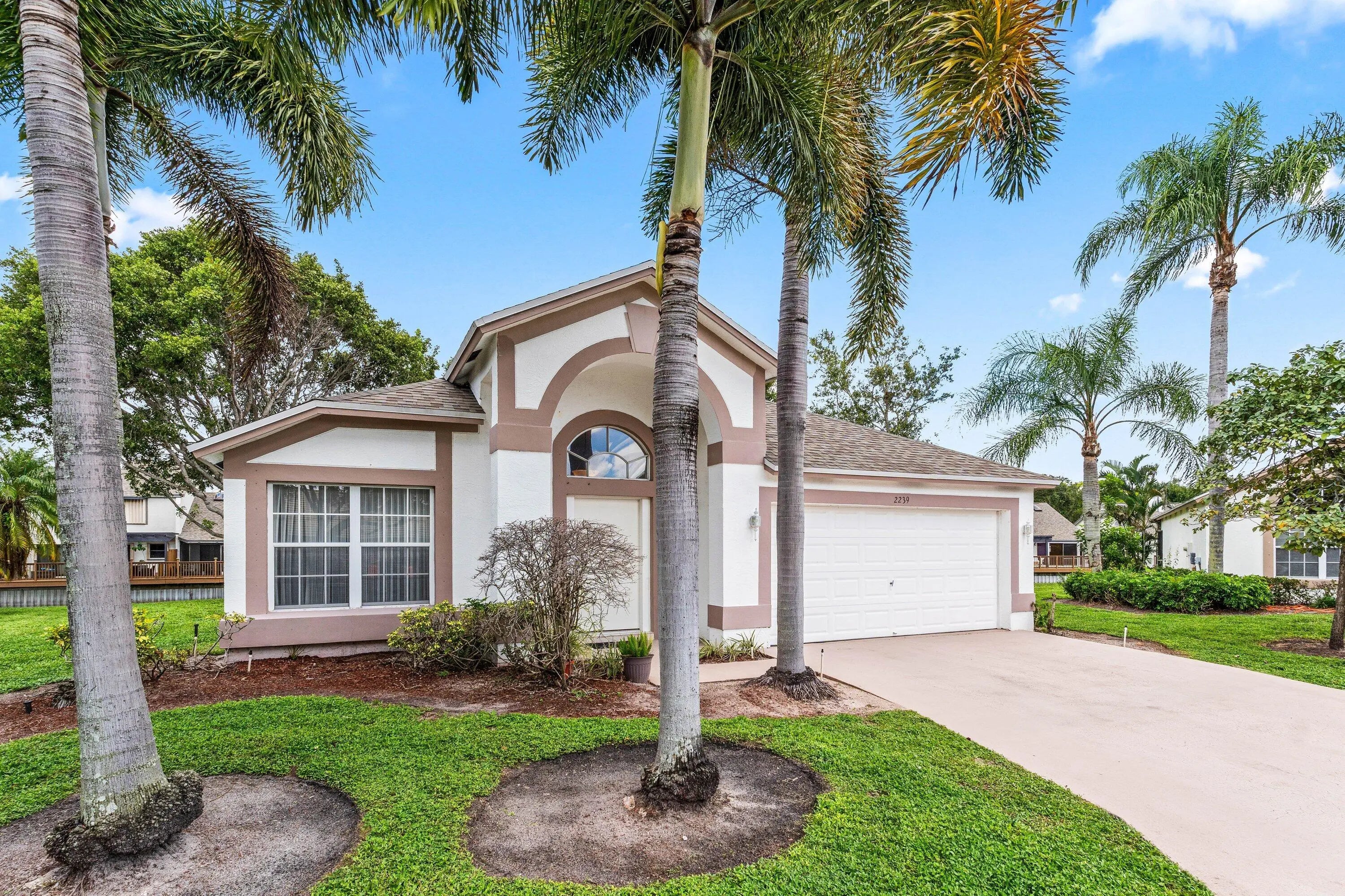 ALL AGES WELCOME! Enjoy serene lake views from this beautifully maintained 3-bedroom, 2-bathroom home with a spacious 2-car garage. The split open floor plan features vaulted smooth ceilings and stylish new tile flooring with updated baseboards throughout. Major systems have been thoughtfully upgraded: ROOF replaced in 2020, AIR CONDITIONER in 2022, and WATER HEATER in 2015—offering peace of mind and energy efficiency. HOA FEE includes, lawn maintenance, CABLE & INTERNET, property management, resort amenities, including gym, pool, tennis, basketball, play area, clubhouse. Nestled in a gated community, this home offers unbeatable convenience—just minutes from schools, the public library, Publix, Beach, Parks, Wellington Mall, restaurants. Easy access to I-95 & Turnpike.