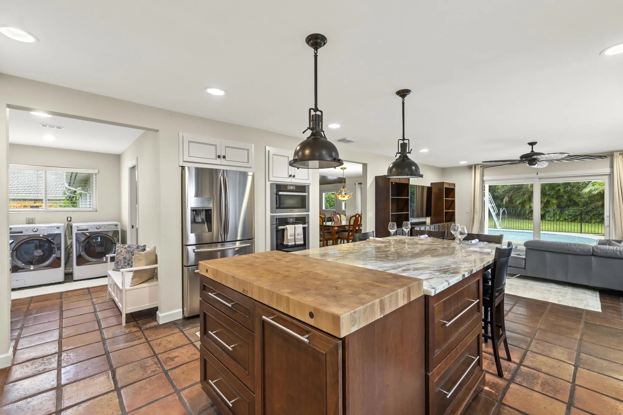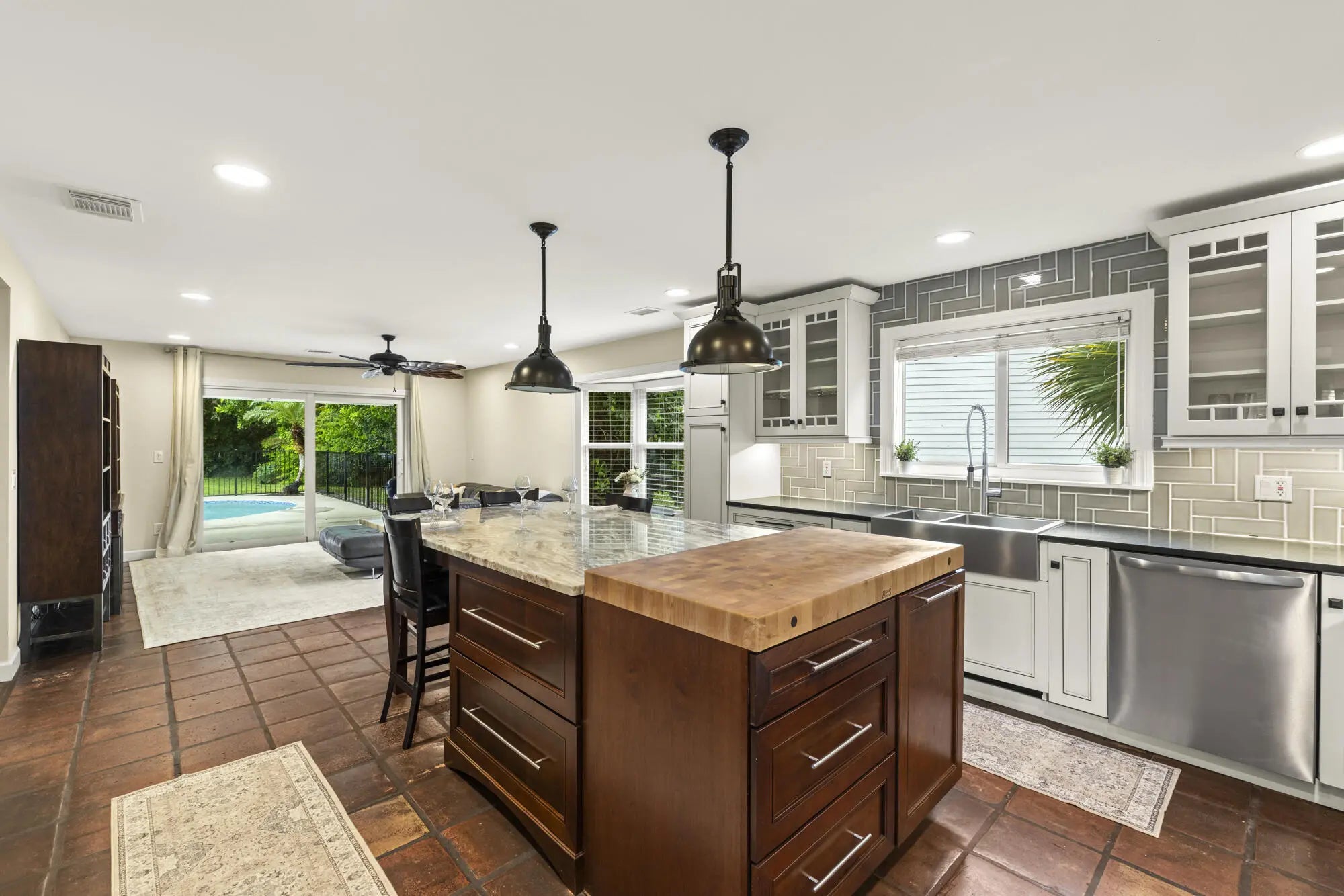 NEW PRICE! Don't miss the chance to transform this property into your dream home. This is a rare opportunity to own just over half an acre (.56) in the highly sought-after Whispering Trails of Jupiter—with no zero lot line. Please note: Several projects throughout the home remain incomplete, and the property is being sold As-Is. Recent improvements include a 2021 roof, impact windows and sliding doors, Hardie board siding, updated kitchen island with granite and butcher block countertop. The kitchen also offers a herringbone backsplash, farm sink, and soft-close cabinetry (incomplete under sink). Resurfaced heated pool with a newer pool pump/skimmer/pool lights. AC 2023 and 2016. Water Heater 2016.The first-floor primary bedroom is unfinished, with concrete floors, & the original primary bathroom remains uncompleted throughout, though new boxed cabinetry and drawers are included (color, finish, quality, and required pieces for the vanity are not guaranteed, does not include countertop). Upstairs, three spacious bedrooms share an updated bathroom. The fully fenced backyard has plenty of room for all your outdoor activities. Whispering Trails offers tree-lined streets, privacy, fresh water fishing, top-rated schools, and easy access to Jupiter's beaches, dining, shopping, and I-95. This home offers an incredible foundation with upgrades already in place perfect for buyers looking to remodel and customize to their own taste.