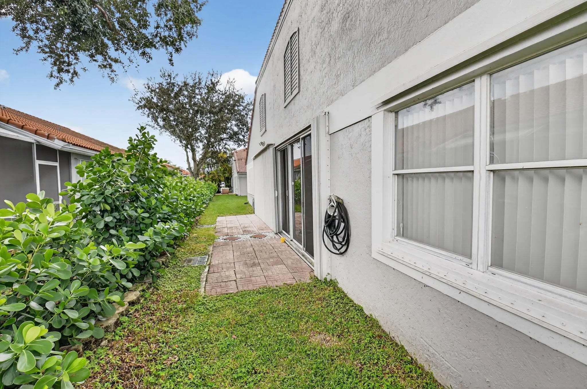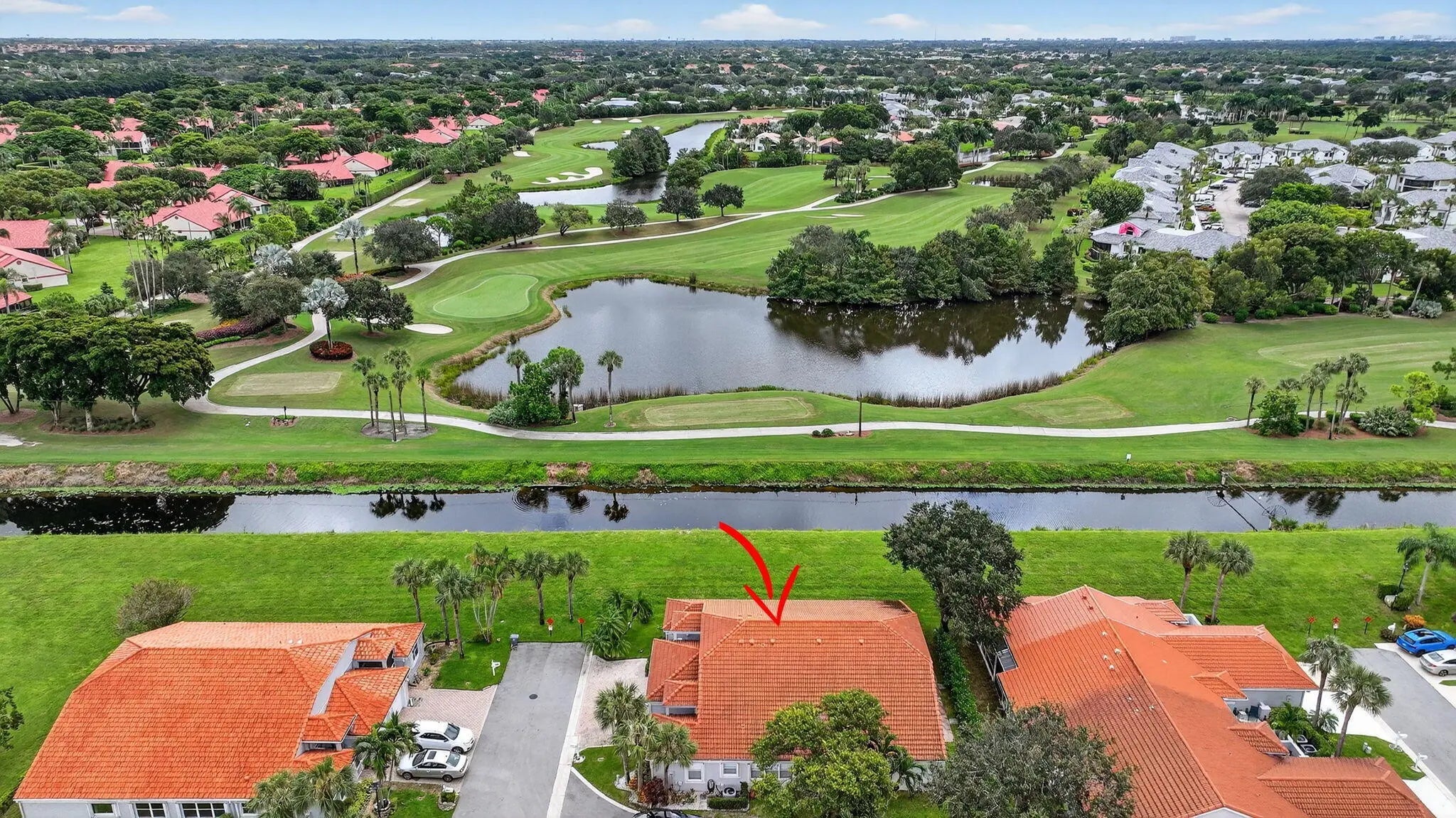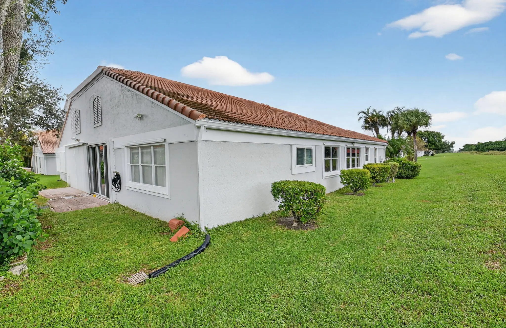 NEW IMPROVED PRICE - Move-In Ready Golf Course View Villa Wake up to breathtaking sunrises and sweeping views of the Glen Eagles Golf Course from this beautifully maintained 2-bedroom, 2-bath villa, perfectly situated on a true corner lot. Filled with natural light throughout the day, this home offers privacy and tranquility on a quiet street with no through traffic. Designed for comfort and easy living, the villa features a Florida room, one-car garage, and a paver two-car driveway. Fresh interior paint, new carpeting, and tile flooring throughout create a crisp, move-in-ready feel, while the 2022 roof provides lasting peace of mind. The updated kitchen showcases granite countertops and modern cabinetry, and vaulted ceilings enhance the home's Mediterranean-inspired style. The spacious primary suite retreat offers a walk-in closet and an en-suite bath with a dual-sink vanity, separate soaking tub, and walk-in shower. A dedicated laundry room with a full-size newer washer and dryer adds everyday convenience. Enjoy resort-style living with a low monthly HOA that includes roof cleaning and exterior painting, internet, cable, security system monitoring, community pool, tennis courts, and a clubhouse with fitness center — all within a gated, all-ages community. Ideally located just minutes from Delray Marketplace, the Florida Turnpike, vibrant downtown Delray Beach, and beautiful ocean beaches.