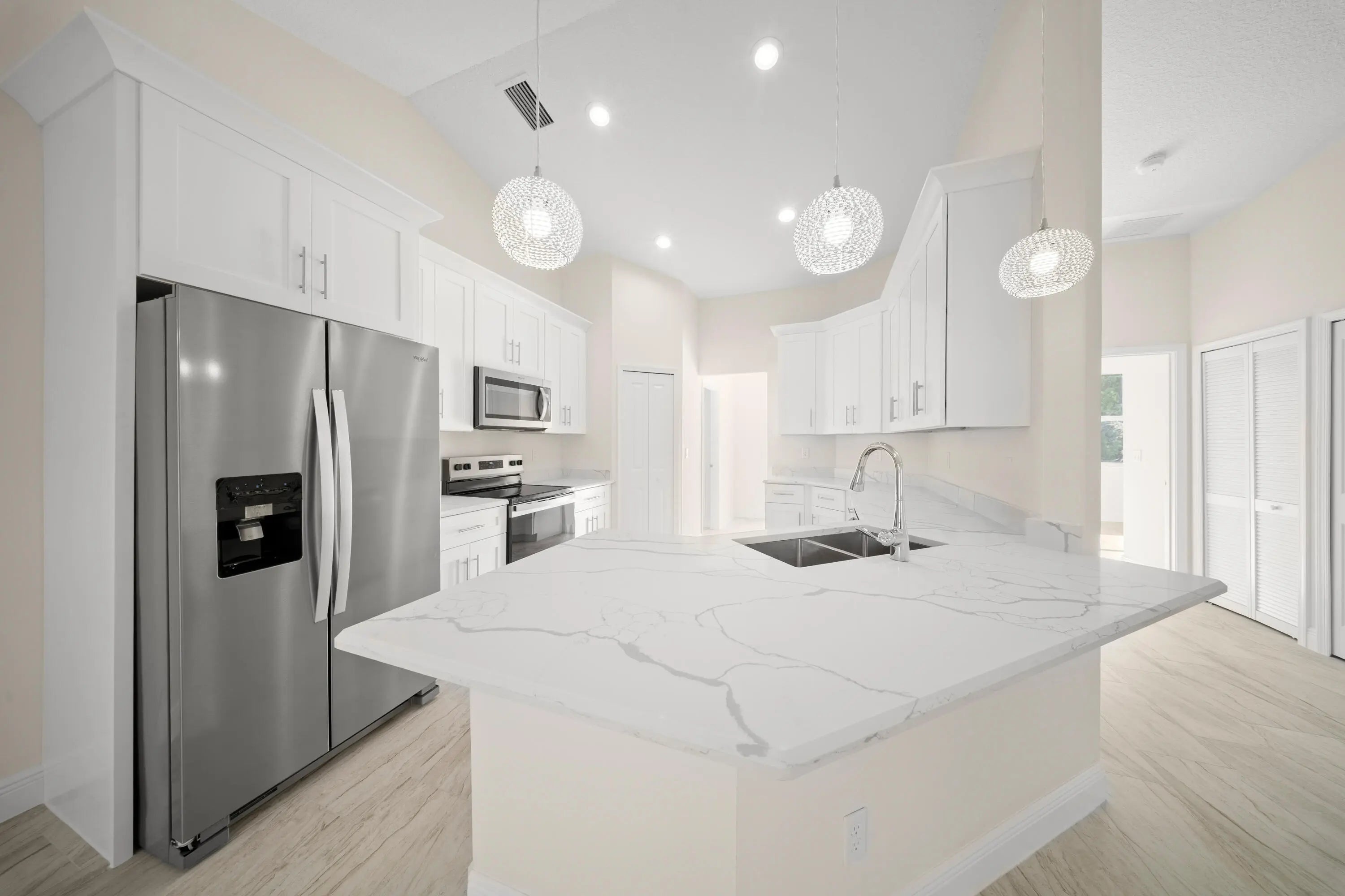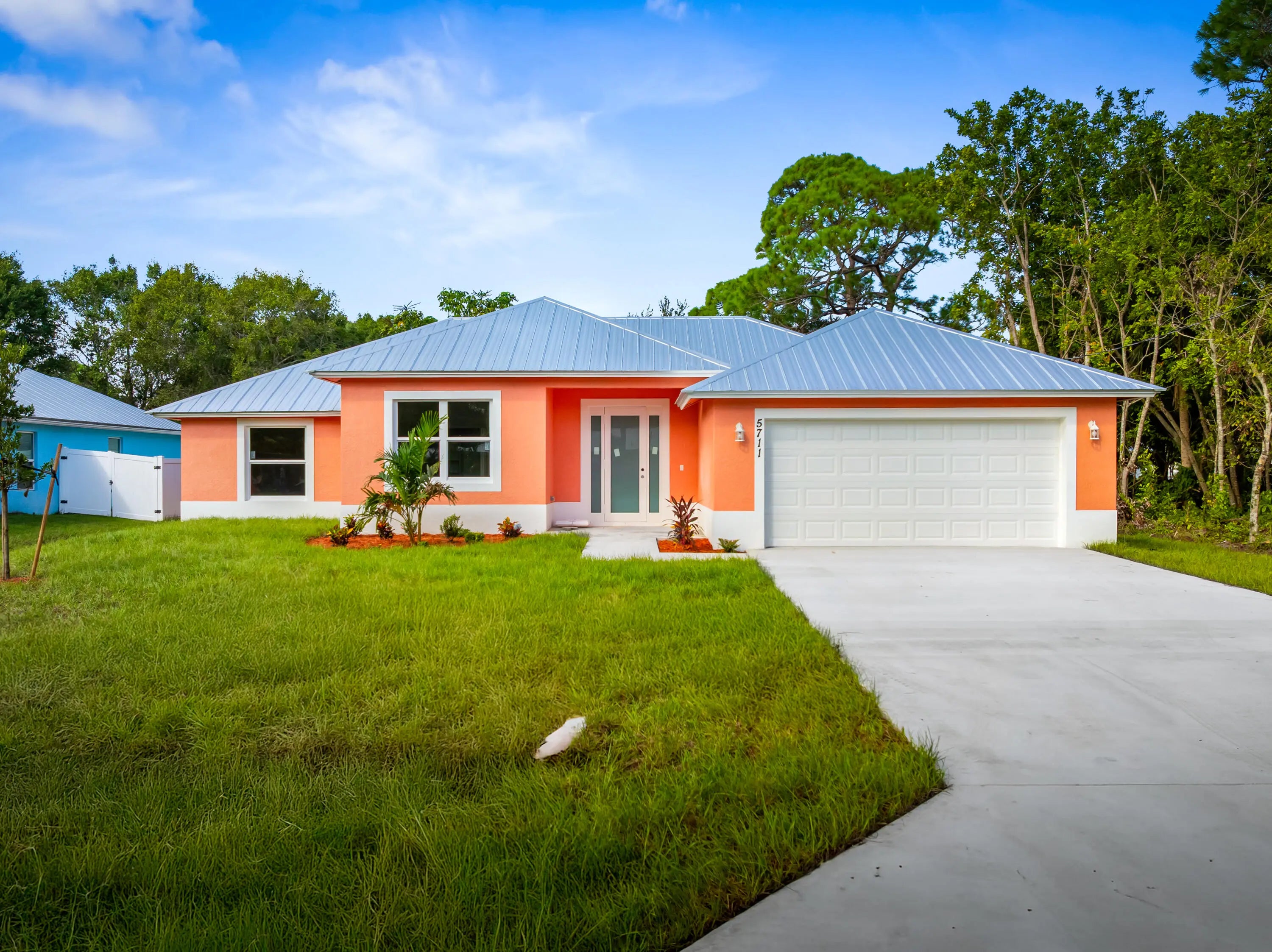 NEW CONSTRUCTION, INDIAN RIVER ESTATES AREA....READY AND WAITING FOR YOU!! 4 BEDROOMS, 2 BATHS, 2 CAR GARAGE. Custom built with 1900 Sq. Ft. living area and 2514 total. You will find here quality construction with beautiful ceramic tile throughout, quartz counter tops in kitchen and baths, tray ceilings, elegant bathroom with tiled showers, two vanities with sinks and garden tub. Large foyer, bright and light great room, ceiling fans and light fixtures already in place, walls with rounded corner, recessed lighting in the kitchen, IMPACT WINDOWS AND METAL ROOF. Marvilla Builders is a private builder with attention to detail. Don't miss your opportunity to call this beauty your home. SOME PICTURES ARE VIRTUALLY STAGED. FENCE COMING UP SOON!! TAKING BACK UP OFFERS!!