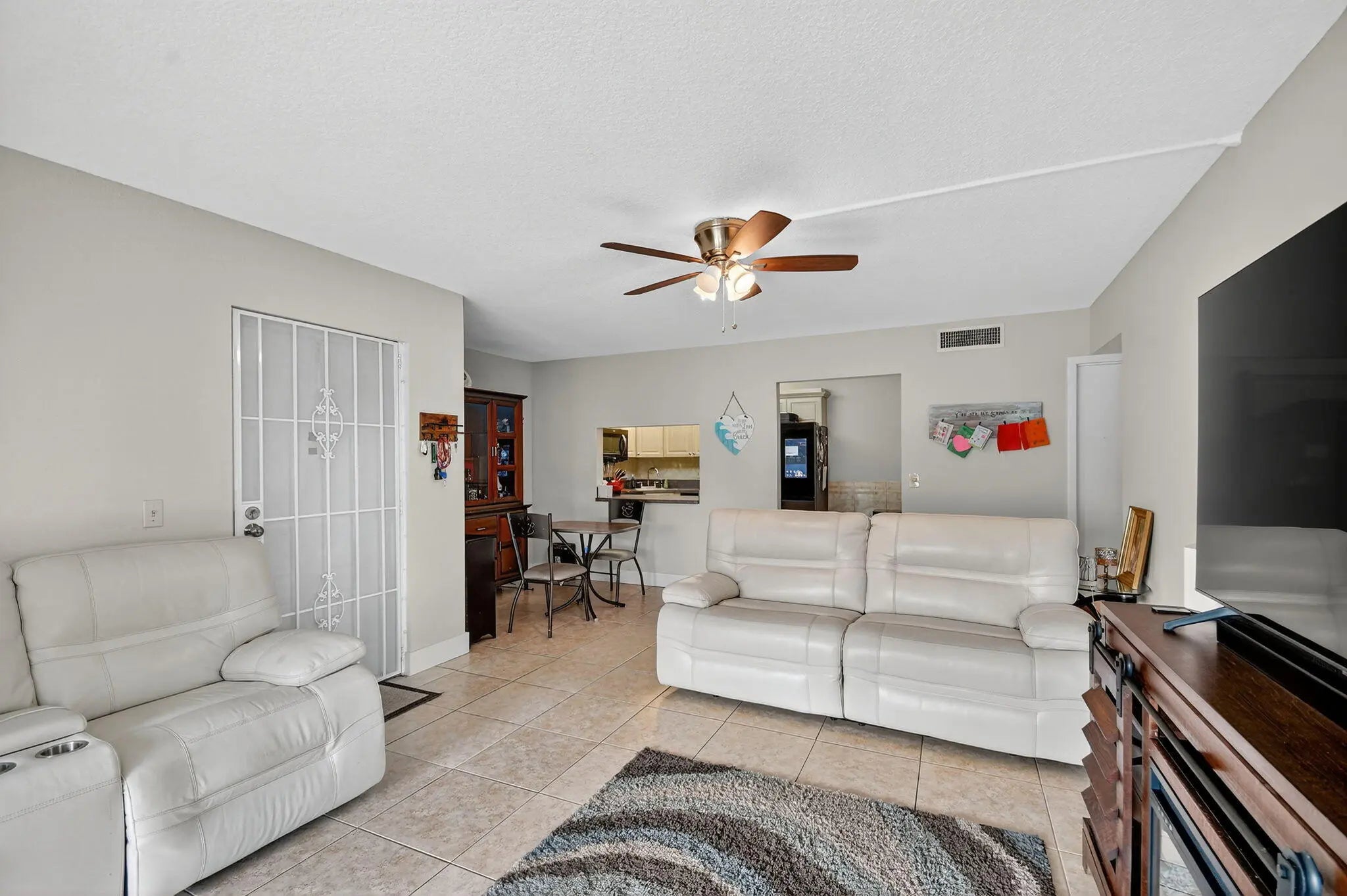 Rare FIRST FLOOR condominium in a wonderful 55+ community with many amenities. NEW ROOF, was replaced this year. Newer A/C unit, was replaced in 2021. Newer modern appliances, all less than four years old. Appliances included. Accordion shutters on windows. Roll down shutters in patio / Florida room. Furniture is negotiable. No waiting period for renting!