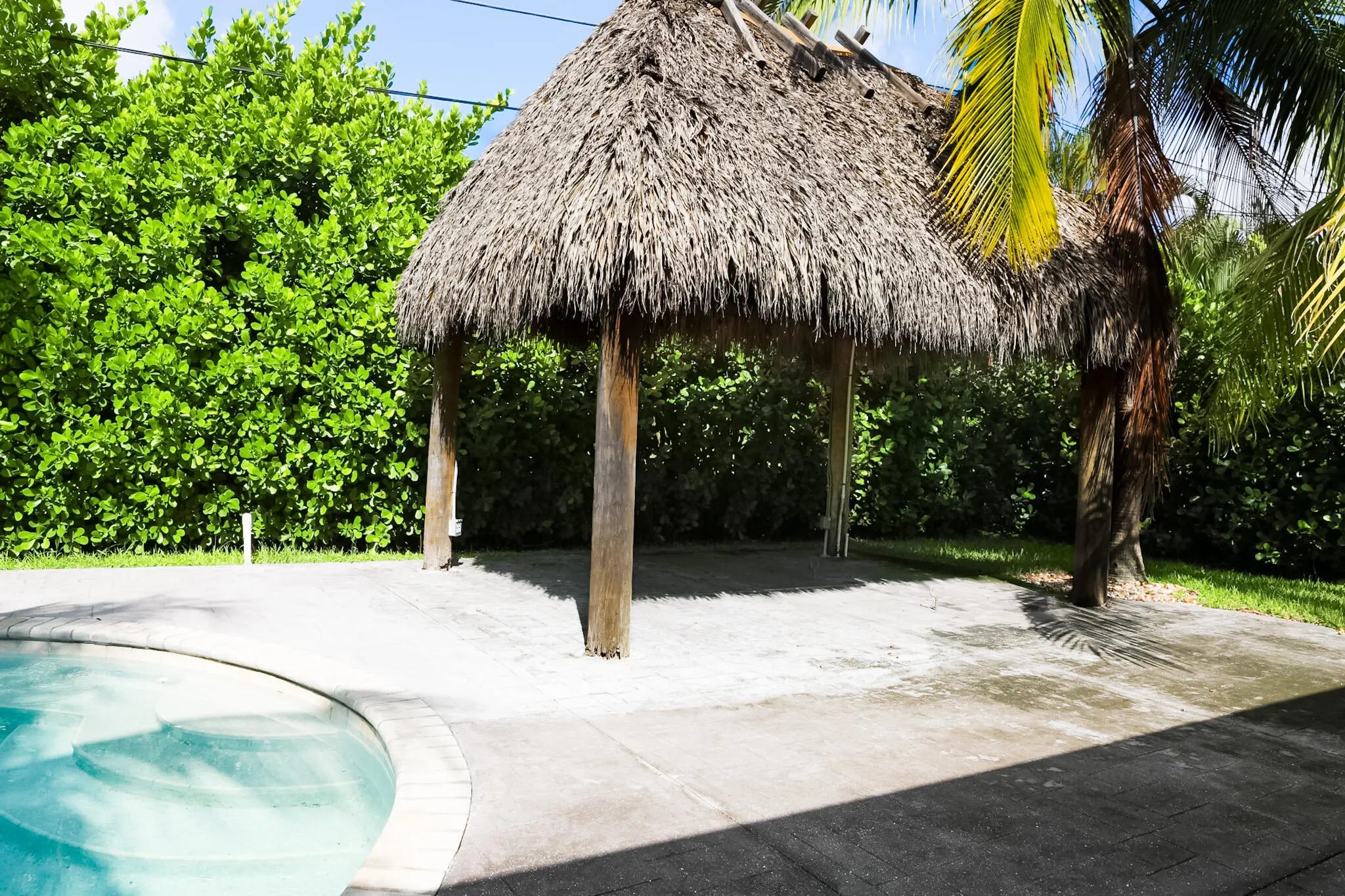 Tucked away on a charming, tree-lined street just over a mile from Delray's vibrant Atlantic Avenue, this sun-filled Lake Ida bungalow blends comfort, style, and Florida living at its best. Offering 3 bedrooms and 2 bathrooms across 1,600+ sq ft of living space, the home features a bright enclosed porch, Italian wood-look porcelain tile, updated LED lighting, and a welcoming kitchen with granite countertops and a breakfast bar that flows into open living and dining areas. Impact windows with accordion shutters provide peace of mind, while the oversized laundry room offers flexibility for storage, a home office, or future reimagination. Outside, a sparkling pool is surrounded by lush landscaping and a fenced yard, complemented by a Tiki hut with electricity and space for an outdoor kitchen or bar, plus a one-car garage and circular driveway for ample parking. Move-in ready yet full of potential, this Lake Ida gem invites you to relax, entertain, and dream.