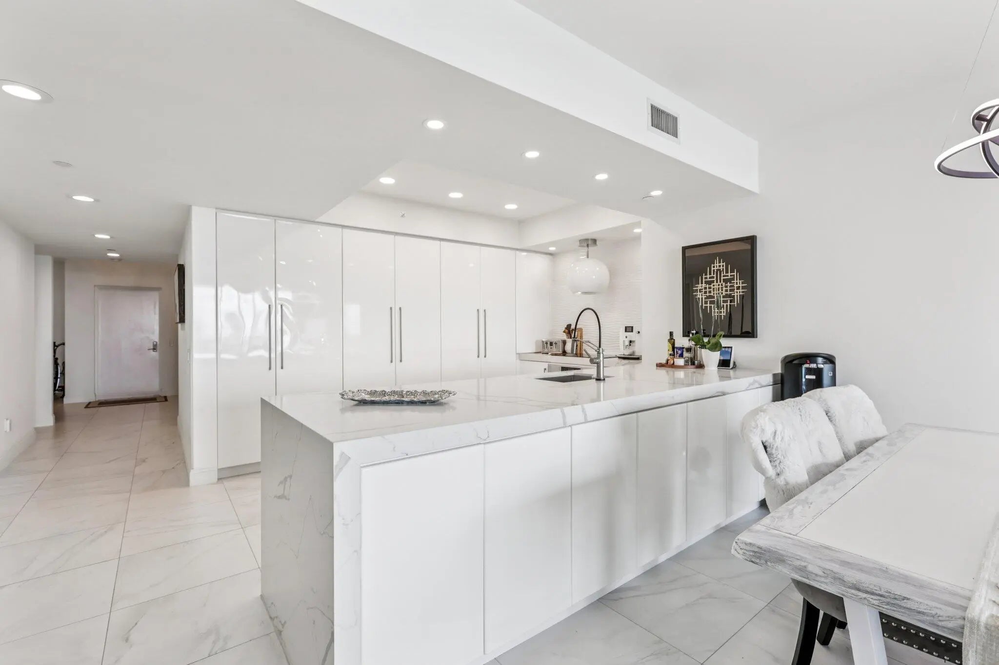 WELCOME TO COASTAL LIVING! This one-of-kind 20th floor retreat situated directly on the widest part of the pristine blue intracoastal, Atlantic Ocean, Singer Island, boating harbor and nighttime city lights. Unique 2 bd. 3 ba. home plus large den/3rd bedroom has endless upgrades, meticulously designed contemporary white kitchen with newer upgraded appliances: paneled Thermador refrigerator and dishwasher, induction cooktop, Wolf microwave, Bosch oven, extra storage, long counter height quartz island, perfect for entertaining, large master suite with 2 walk-in closets, walk out of your 9ft impact floor to ceiling sliders to enjoy morning sunrises, sea life, and boaters from your private balcony, remodeled Inside laundry room for your convenience, 1950 sq.ft unit with large porcelain tile through-out (NO CARPET) and MUCH MORE! Resort style amenities: roof top heated pool, whirlpool, fire place/bar for social events, sauna and steam room, grills, billiard table/ping-pong, bocci ball, 4 pickleball courts, tennis, social room, valet, manned 24hr. security, full-service marina adjacent to the property, Publix across the street and a 15-20 min. ride to PBI airport. Best FL Retreat in Palm Beach County!