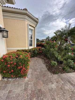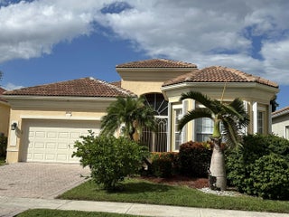 Rare offering of the highly sought-after St Michele model in vibrant, gated Vizcaya! This waterfront residence is the largest floor plan in the community offering 2 bedrooms + den/office, oversized tile flooring, taller upper kitchen cabinets, granite countertops, a thoughtfully designed open layout, built-ins and a 2 car garage. The den is perfect for a home office or guest room. The generous, covered patio creates a relaxing setting with a water view. Nestled deep within the community for added privacy, this house provides a peaceful, quiet setting in an active adult community. Vizcaya offers resort-style amenities including fully staffed clubhouse, heated pool, lighted tennis courts, pickleball, large fitness center, social rooms and craft rooms, card room and a ballroom! The 24 hour manned security gate is just another reason that the residents have peace of mind in this incredible neighborhood!