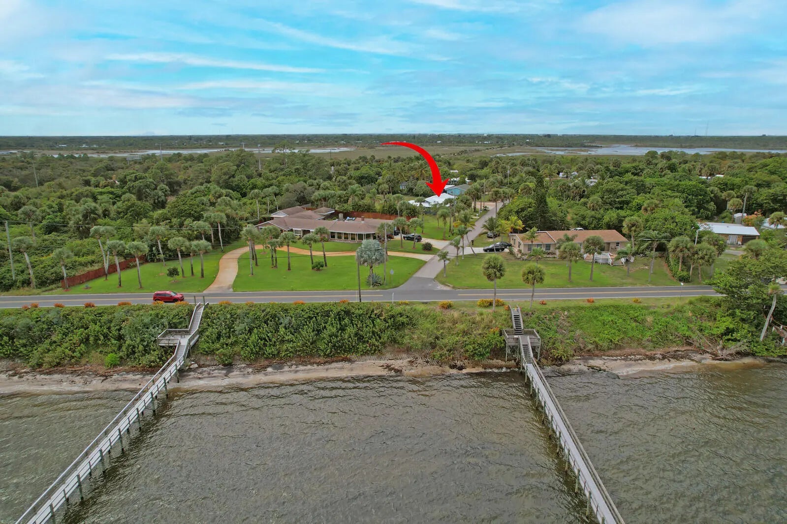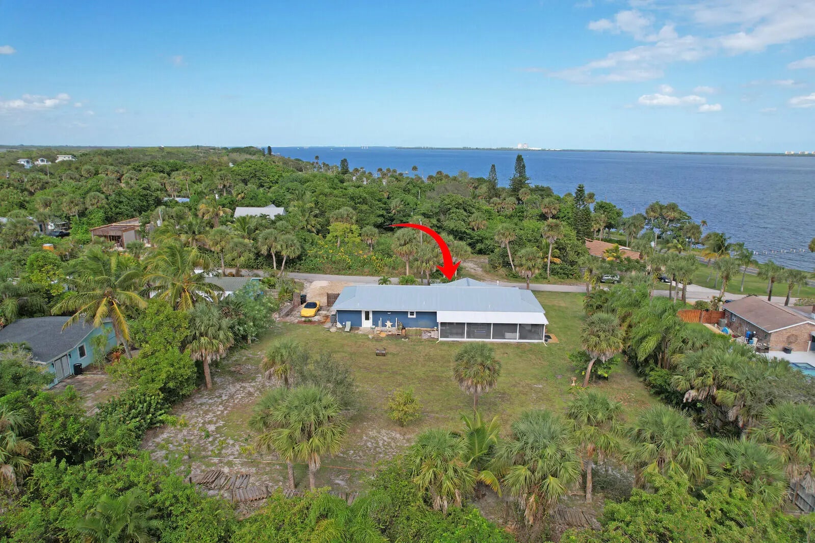 OFF INDIAN RIVER DR-CBS home situated on over 1/2 an acre,2018-NEW METAL ROOF,IMPACT WINDOWS & DOORS,REPLACED ALL PLUMBING & ELECTRICAL,EXTERIOR STUCCO 2 NEW ELECTRICAL PANELS,R 34 BLOWN INSULATION in Attic,NEW FIXTURES,CERAMIC WOOD-LIKE PLANK TILE ( main living),CUSTOM KITCHEN & COUNTERS(2021),NEW DRAIN FIELDS (2022),NEW SEPTIC PUMP & WELL (2021), 12x 40 ALUMINUM PORCH (2023),8 ZONE IRRIGATION SYSTEM (2024),TANKLESS WATER HEATER (2019),NEW A/C HANDLER (2023),TILED FRONT & BACK PORCH (2022), NEW SS APPLIANCES (2018) NEW INTERIOR/EXTERIOR PAINT, NEW INTERIOR & EXTERIOR LIGHTING... see docs tab for full upgrades list. Every inch of this home has been renovated with modern coastal touches. NO HOA, bring your boat, toys, and vehicles! Property sale includes a waterfront lot that is dock permittable. New Price, No Wait-Easy to Show!