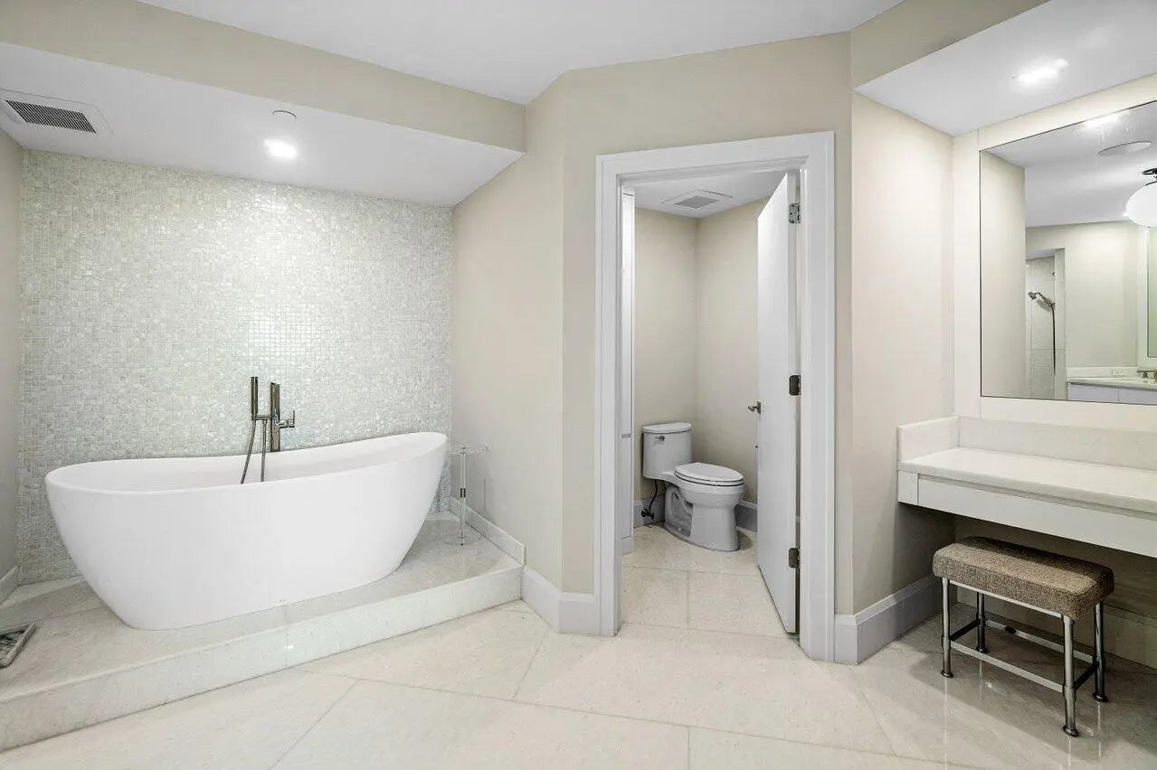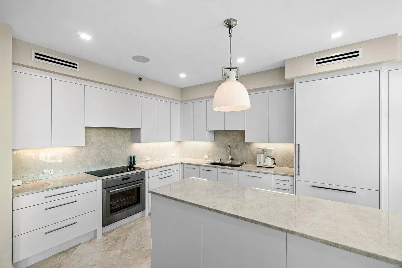 STUNNING PANORAMIC VIEWS OF THE INTRACOASTAL, CITY, LUSH GROUNDS WITH FOUNTAINS & OCEAN! THIS BEAUTIFULLY RENOVATED 2 BEDROOM 2 1/2 BATH APARTMENT WAS DESIGNED & DECORATED BY A TOP PALM BEACH FIRM! A EUROPEAN-STYLE SLEEK HIGH END KITCHEN WITH QUARTZITE COUNTERTOPS, AN OVERSIZED ISLAND WITH SEATING & A WALK IN CUSTOM PANTRY. THE KITCHEN AREA IS OPEN TO THE ELEGANT DINING ROOM GIVING THE PERFECT FLOW FOR TODAY'S ENTERTAINING! TIMELESS VANILLA MARBLE FLOORS, 9 FT CEILINGS, IMPACT FLOOR TO CEILING SLIDERS, TWO PRIVATE BALCONIES ALLOWING NATUAL LIGHT TO FLOW THROUGH & CAPTURE SUNRISES & MAGNIFICENT SUNSETS! THE PRIMARY SUITE BOASTS 2 SPACIOUS CUSTOM CLOSETS, A NEWLY REDESIGNED BATHROOM WITH MARBLE COUNTERTOPS, A SOAKING TUB & MAKUP AREA. THE GUEST BEDROOM IS EN-SUITE & FEATURES A SPLIT PLAN. THE ELEVATORS TAKE YOU TO YOUR PRIVATE VESTIBULE & DOUBLE DOOR ENTRANCE! NO NEED TO MISS THE BEAUTIFUL WINTER SEASON THIS APARTMENT IS MOVE IN READY! THE STUNNING RESTORATION HARDWARE FURNITURE IS NEGOTIABLE! TOSCANA OFFERS RESORT STYLE LIVING WITH A PRIVATE BEACH CLUB ON THE SAND! THE STAFF PROVIDES CHAIRS, TOWELS & WATER SERVICE. BBQ GRILLS WITH AN OUTDOOR EATING AREA, A PARTY ROOM, LOCKERS, SHOWERS & BATHROOMS. THE MAIN LUSHLY LANDSCAPED GROUNDS OFFERS 3 HEATED POOLS WITH AN ATTENDANT FOR CHAIRS, WATER & TOWELS, HOT TUB AREAS, 2 TENNIS COURTS, STEAM ROOM, SAUNA, FITNESS CENTERS, CARD ROOMS, VALETS, 24 HOUR MANNED GATE & CONCIERGE SERVICES!