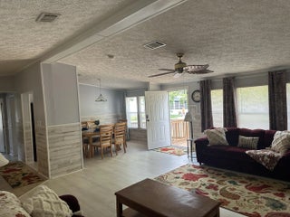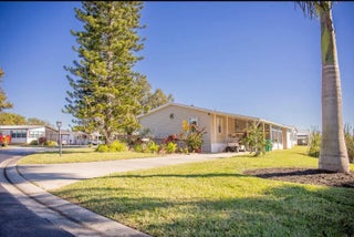 MOTIVATED SELLER** SEMINOLE COVE 3/2 Completely furnished DWMH on corner lot with captive lake view. Newer roof, new HVAC! Open concept, breakfast bar, spacious living and dining, walk-in closets, master features garden tub and separate step-in shower. Freshly painted interior and lvp flooring and tons of storage. Screened in patio perfect for bbqs and sunsets. Attached carport, ramp, and workshop. Home comes furnished and complete with storm panels. Public water and sewer. 55+ Community offering heated pool, clubhouse, fish cleaning station, and activities. *MOTIVATED SELLER* Measurements are approximate.