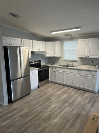 Beautiful home recently freshened up with flooring, paint, newer kitchen, large living area, eat in kitchen, Florida room, screened porch, dual sinks in master bath, large carport, shed and backs to a lake. Ready to move in to, don't miss it. All information is approximate and buyer is to verify all.