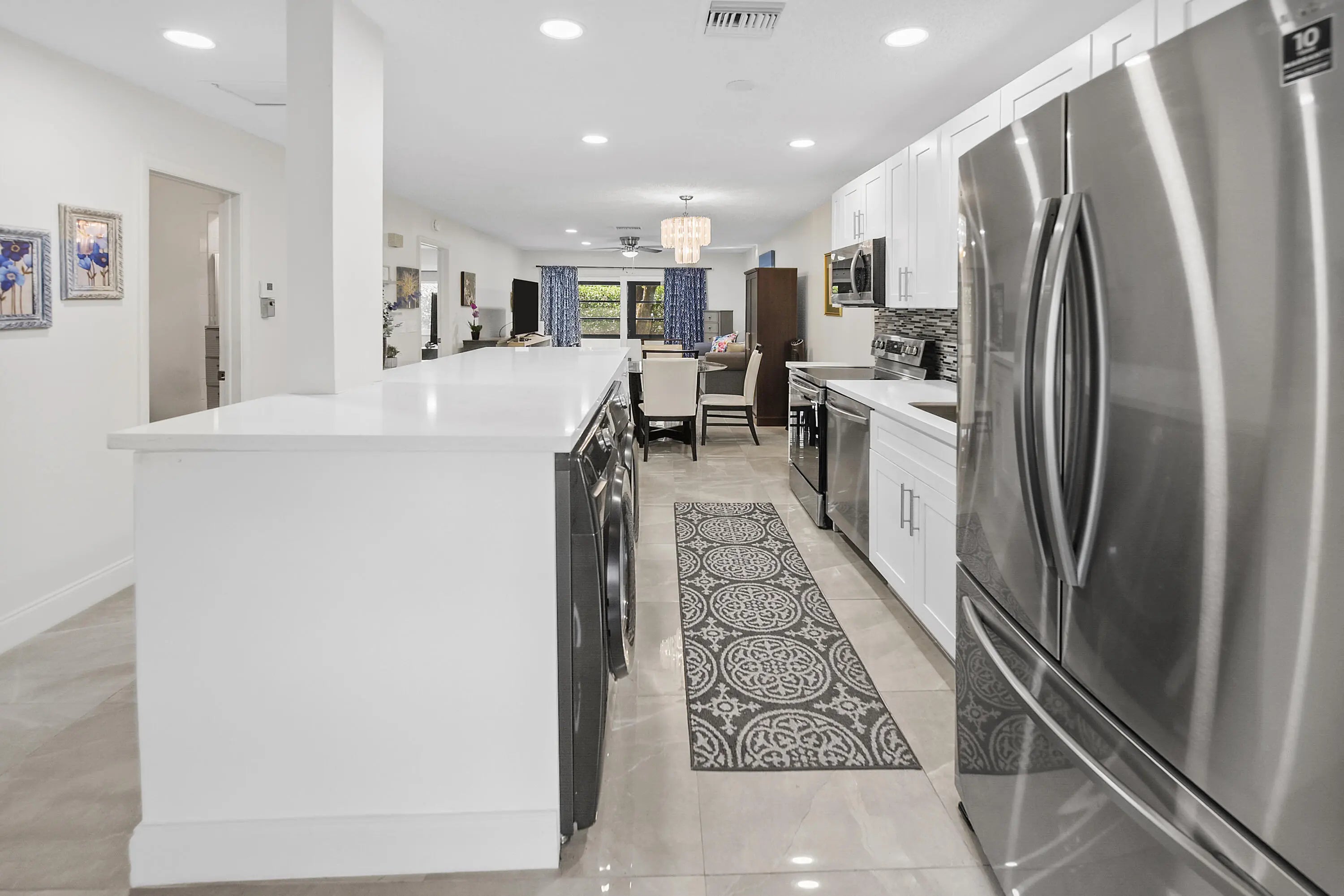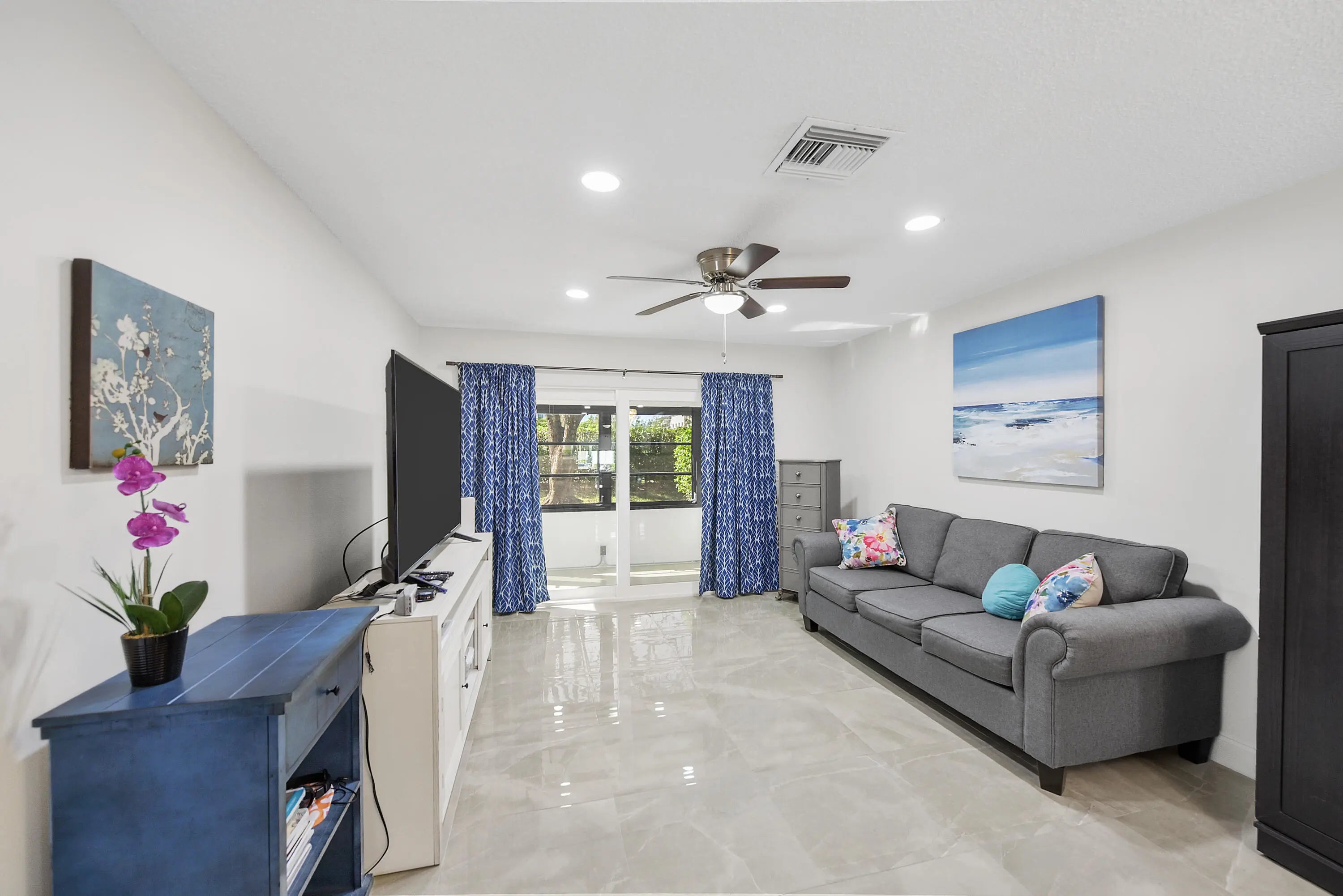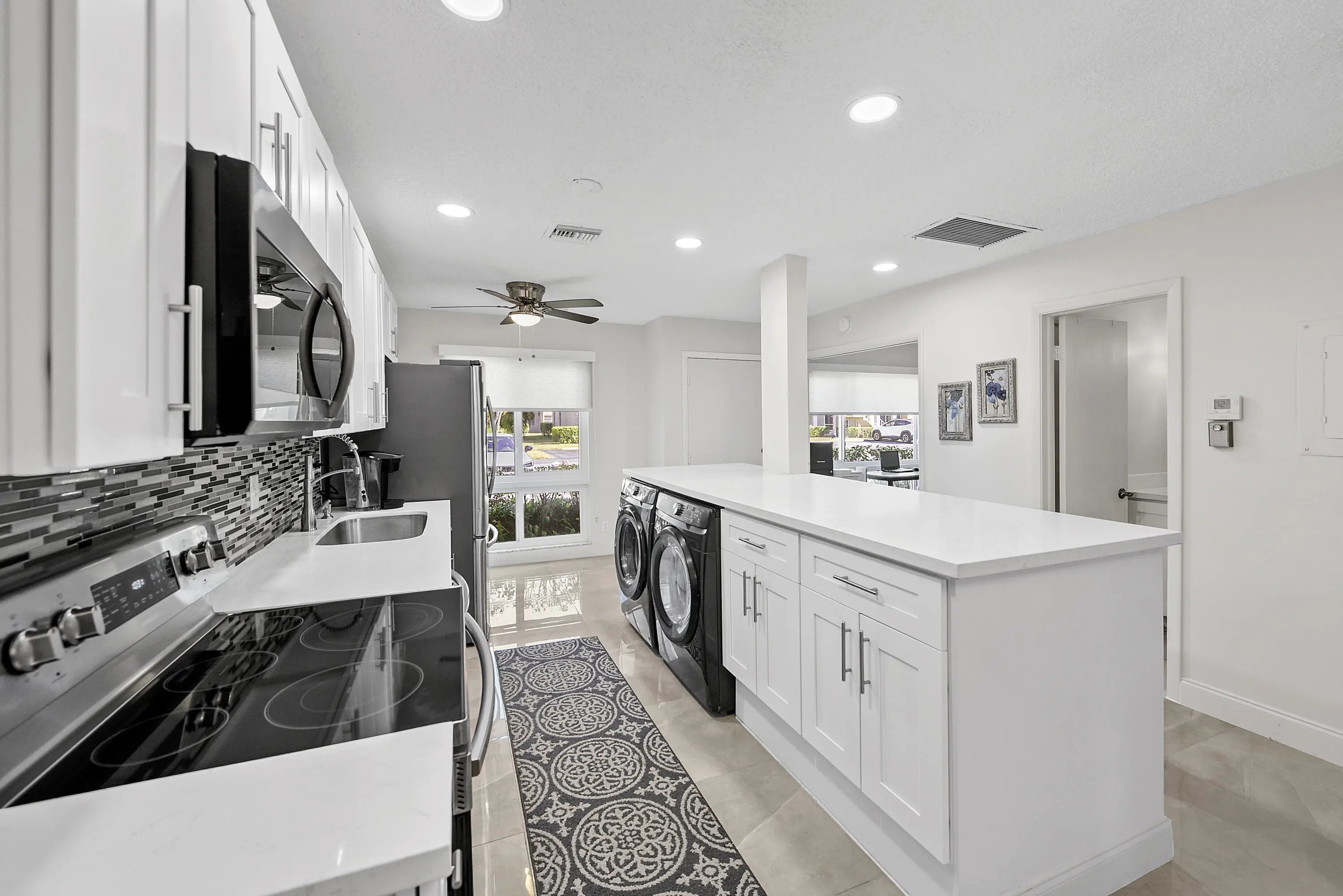 Brand new state-of-the-art clubhouse opening 1/30/26! Welcome home to this move-in ready 2-bedroom, 2-bath villa offering a newer kitchen with quartz countertops, newer appliances, and a full-size washer and dryer. Enjoy updated bathrooms, ceramic tile flooring throughout, and serene green space views with no rear neighbors. Major upgrades include brand new hurricane impact windows and sliding glass door, plus a brand new air conditioner with transferable warranty. Ideally located near top restaurants, entertainment, and just a short drive to the beach. The new clubhouse will feature pickleball, bocce, tennis, swimming, fitness center, café, and more—resort-style living at its best!