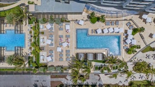 Enjoy oceanfront sunrises and sunsets over the intracoastal from this 2 bedroom + den corner residence designed by Bob Martin of Decorators Unlimited. The former model, 605 offers 900SF of outdoor space on two wraparound terraces, and features considerable upgrades including custom cabinetry, built-ins throughout, Wolf & Sub-Zero appliances, JL Closets, smart home automation, and can be offered turnkey for your Palm Beach stay this season! Amrit is Palm Beach's premier resort-style development with unparalleled wellness amenities, as well as four on-site restaurants. Enjoy the conveniences of condo living, with the amenities of a luxury hotel including valet parking, beach service, room service, resort-style pools, concierge and access to a 100,000+ SF spa and wellness facility.