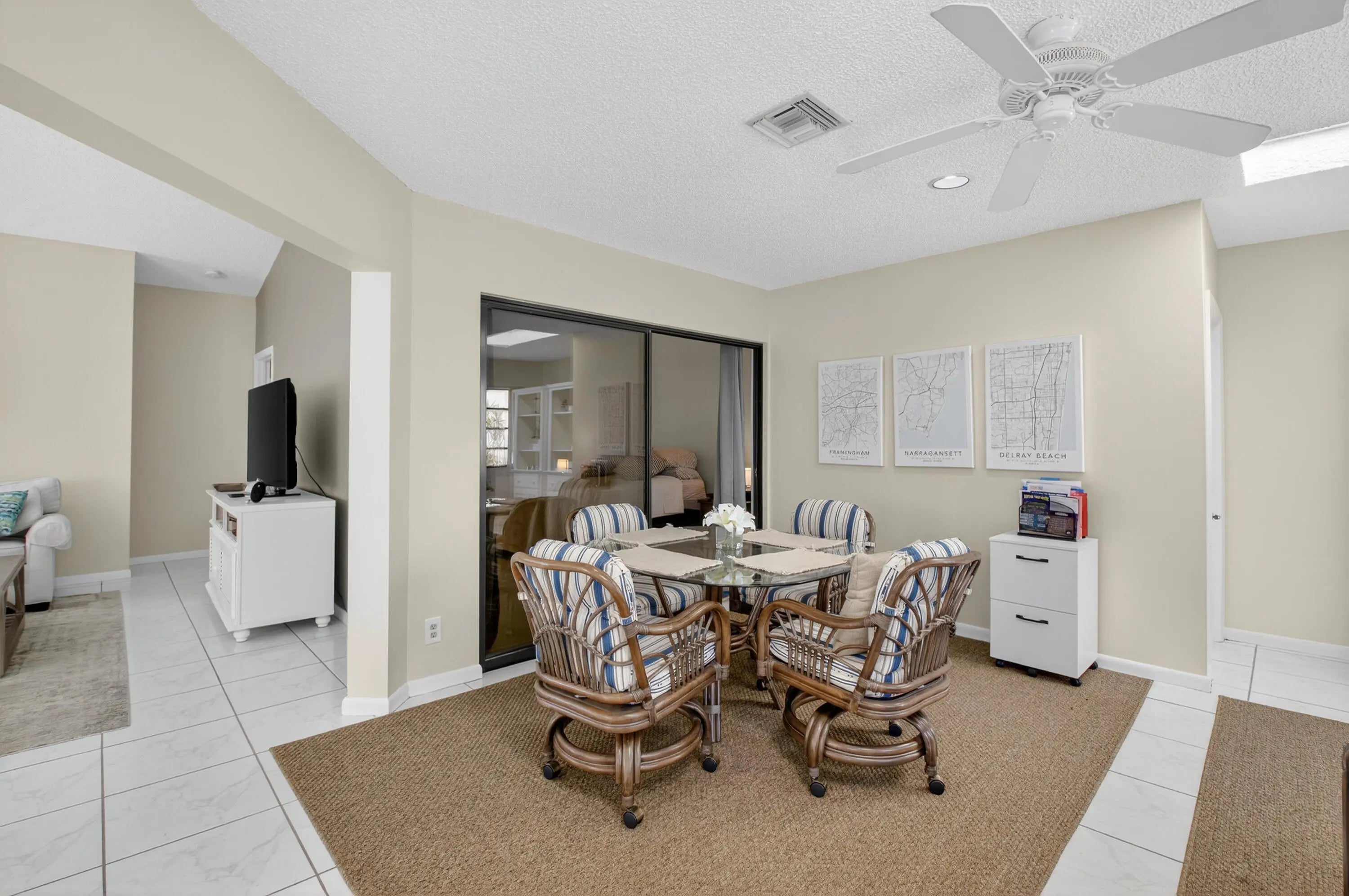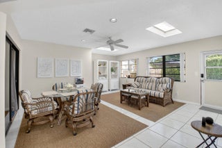 STUNNING BLEND OF COMFORT AND STYLE. FULLY RENOVATED VILLA, FEATURES INVITING OPEN CONCEPT, VAULTED CEILINGS. 2 BEDROOM, 2 BATH PLUS FLORIDA ROOM UNDER AIR. NEW KITCHEN, WHITE SHAKER CABINETS, STAINLESS APPLIANCES, EAT IN AREA, PANTRY, WASHER DRYER. SPLIT BEDROOM FLOOR PLAN FOR PRIVACY, PRIMARY BEDROOM WITH WALK IN AND 2ND CLOSET. KITCHEN, LIVING ROOM AND DINING AREA EXTEND INTO FLORIDA ROOM WITH TASTEFULL NEGOTIABLE FURNITURE. NEWLY PAVED PRIVATE PATIO TO RELAX OR ENTERTAIN. UNIT IS IMPECABLE, MOVE IN READY. 2 PARKING SPACES IN FRONT. AC 2024, 2024 WASHER/DRYER, WH, ROOF 2023, ENJOY ACTIVE ADULT COMMUNITY INCLUDING PICKLEBALL, TENNIS, BOCCE, 5 POOLS, CLUBHOUSE WITH GYM. THEATER. LAKE WITH WALKING PATH, PET FRIENDLY. HOA INCLUDES ROOF AND WIFI. CLOSE TO BEACH AND DOWNTOWN,