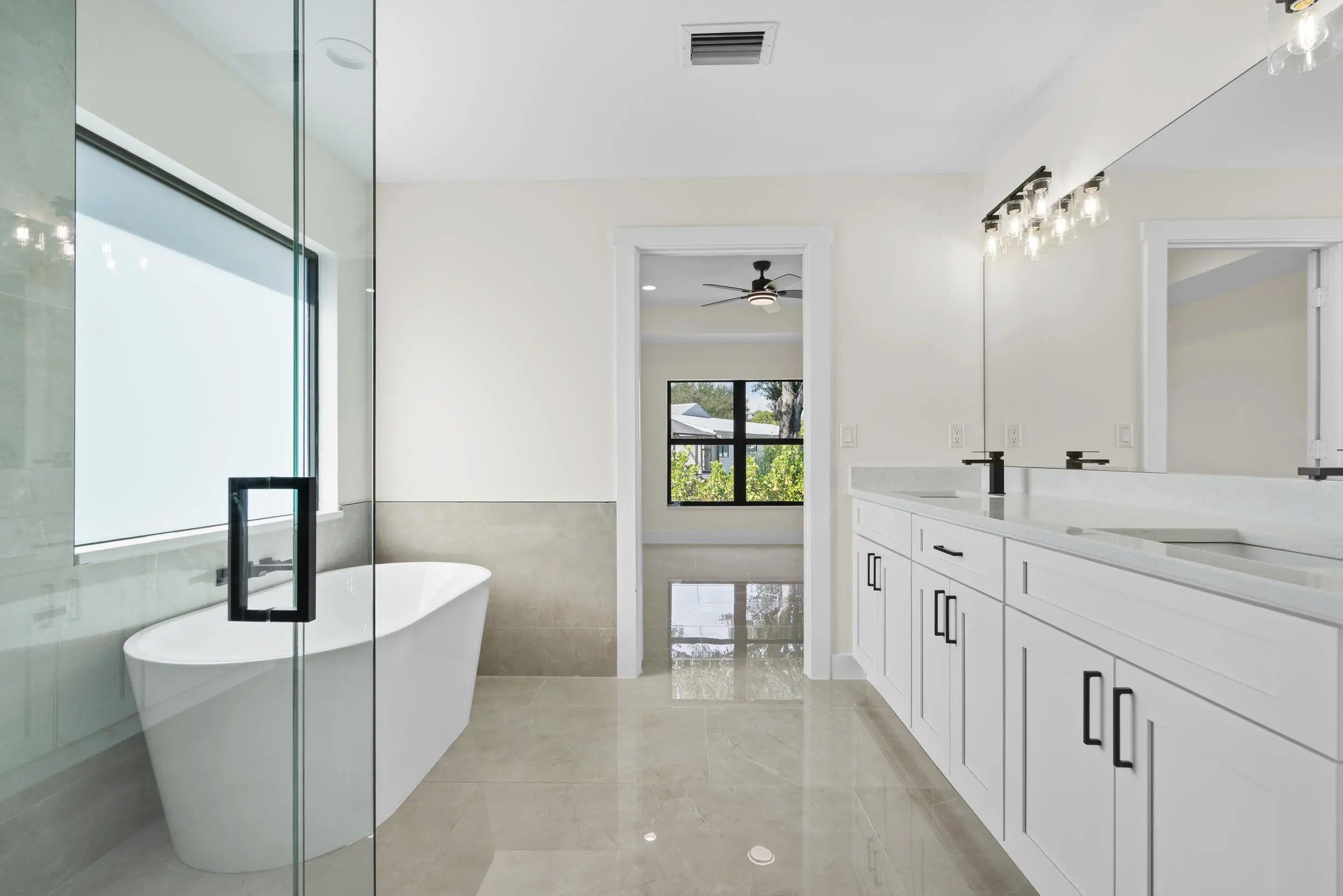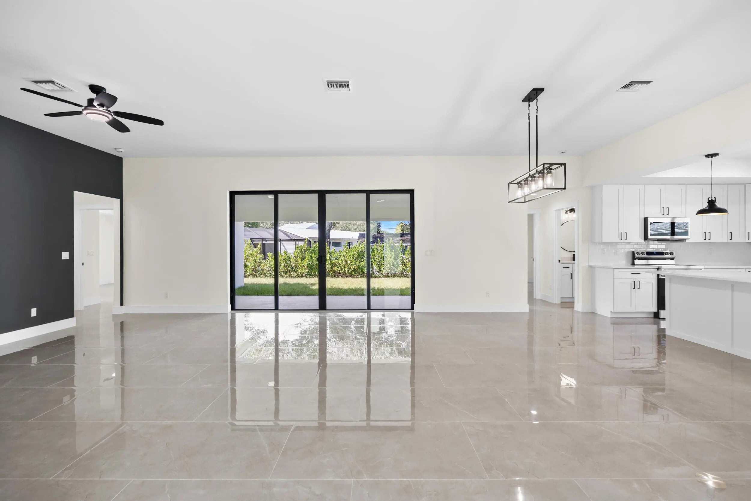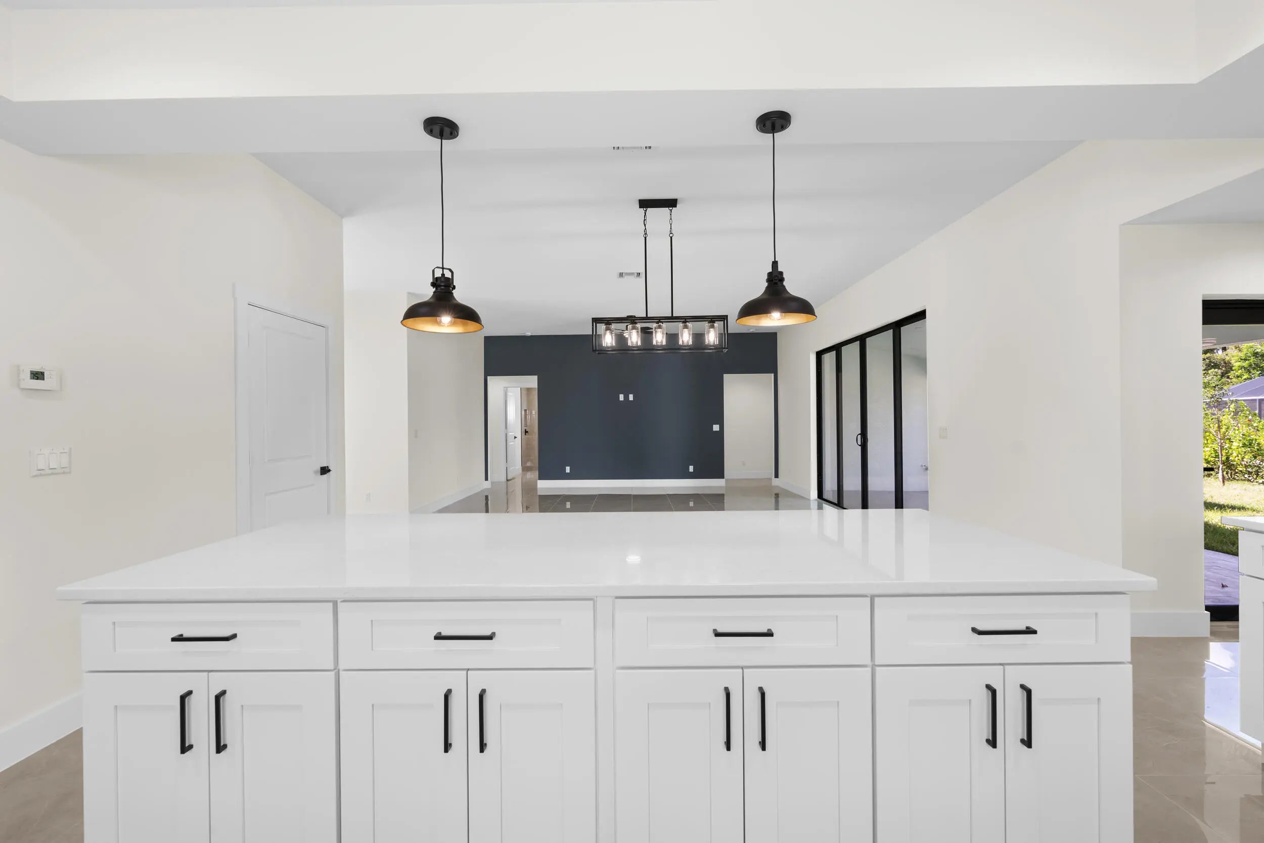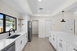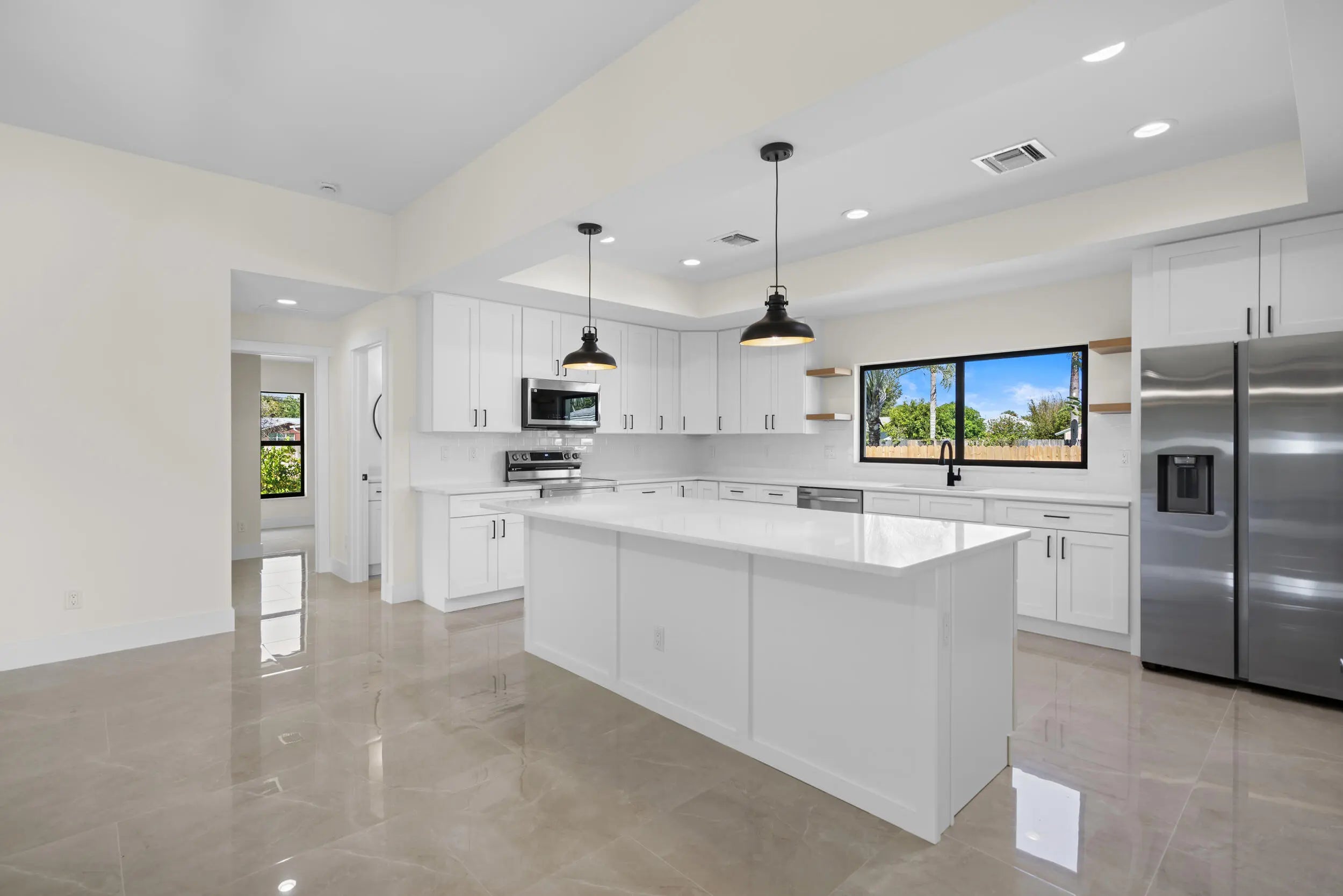 New Home MOVE-IN READY! No HOA! This stunning 4-bedroom, 3-bathroom home offers a modern open-plan layout. Featuring tile flooring throughout, including the back porch and entry floor, this home is filled with natural light, thanks to big impact windows, doors, and garage door. Low E Windows. The spacious kitchen includes quartz countertops, stainless steel appliances, and a large pantry. The luxurious master suite boasts a spa-like bathroom with a free-standing bathtub, shower, dual sinks, and a spacious walk-in closet. The back porch with ample space comes with water and electrical connections ready for you to install a Summer Kitchen.