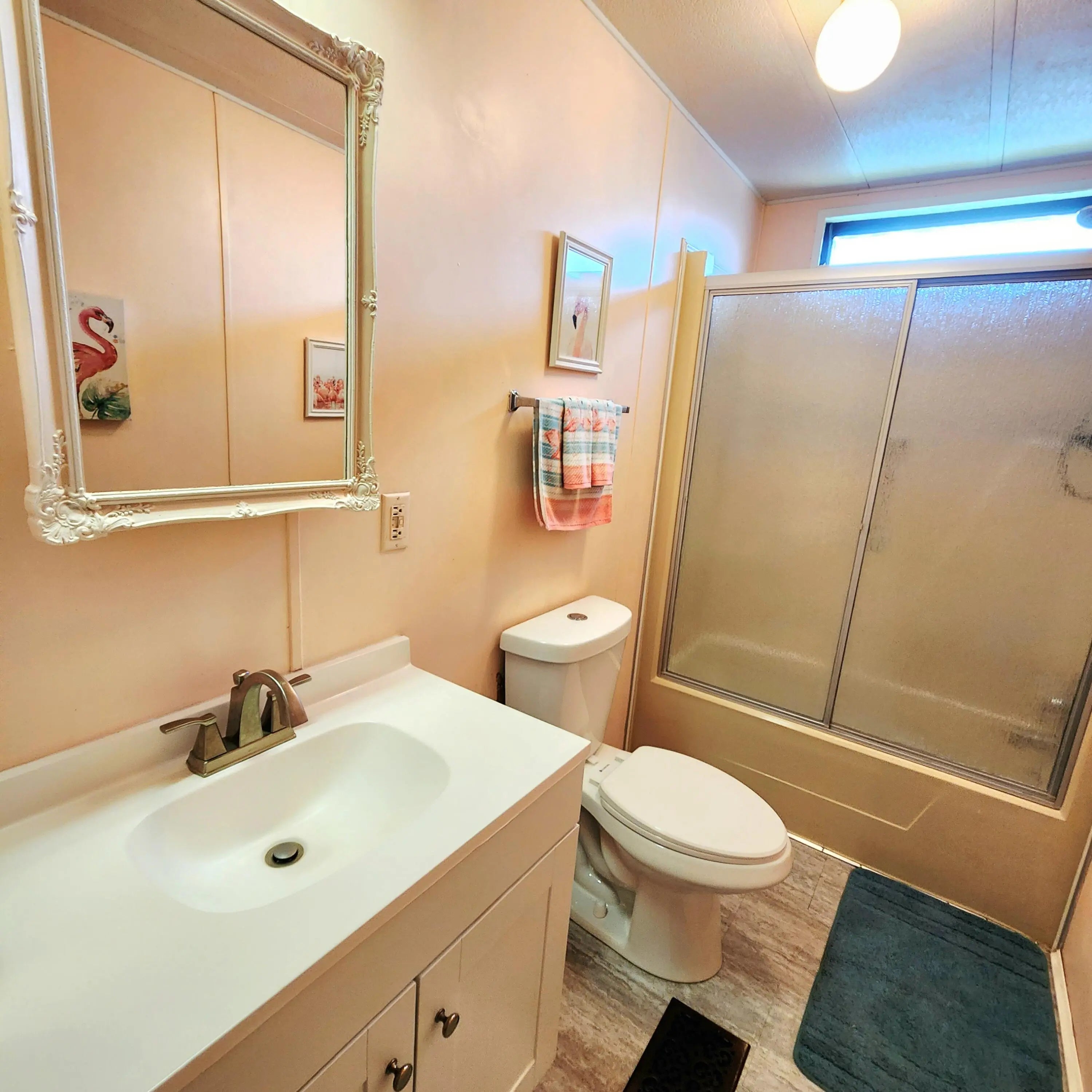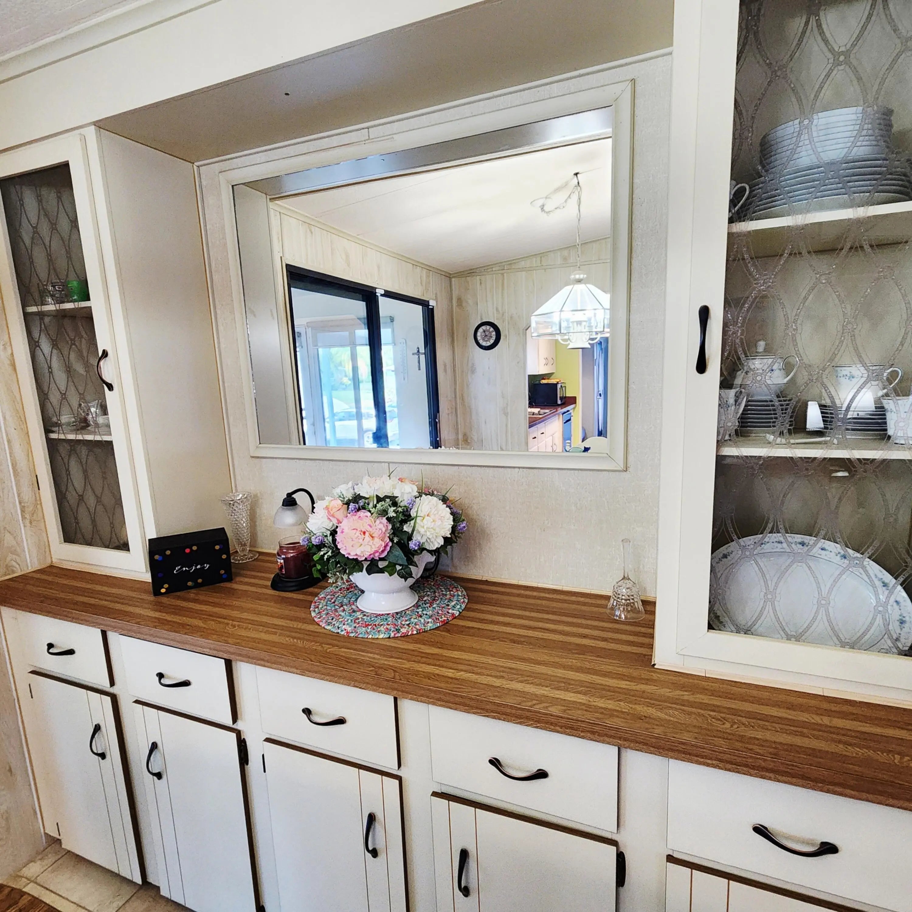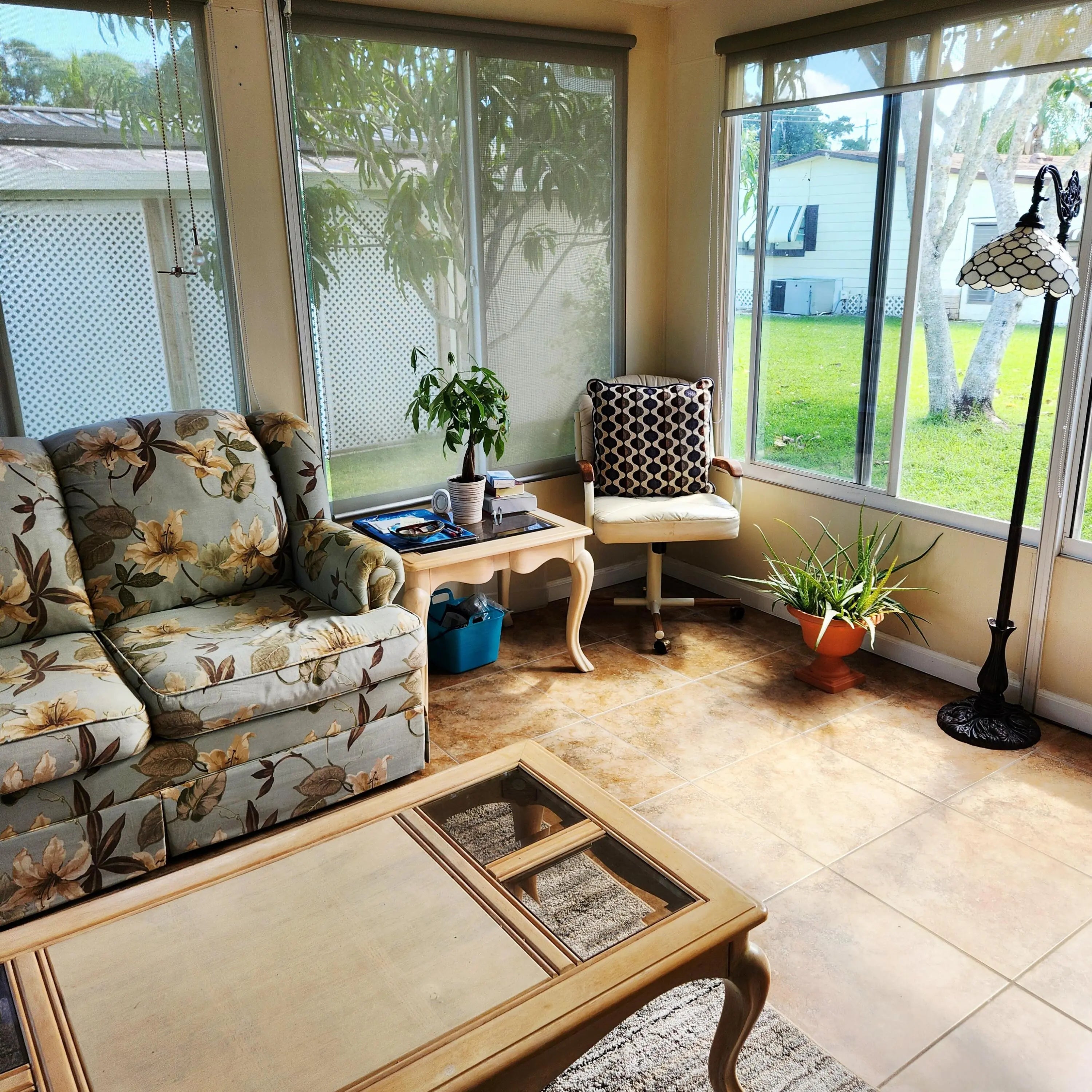 Must see, well maintained 2 bed/2 bath home. On a quiet cal-de-sac, w/ 2 security cameras outside & security system inside. Large walk in closet in Primary bedroom. Murphy bed in guest room. Spacious Florida room w/ updated window treatments. Indoor laundry room. Laminate floors w/ carpet in bedrooms & ceramic tile in Florida Rm. Kitchen cabinets recently painted & outlets updated. Golf Cart outlet added in carport. Large Shed. A/C 2024. Spanish Lakes, 55+ community w/ lot lease of 931.00 includes lawn care, trash removal, Heated Pools, Security, Cafe, Clubhouse w/activities, Private Golf Course (no fees to play), Bingo, Billiards, Bocce, Pickleball, Tennis, Shuffleboard, gym, Library, cards, Mahjong, Clubs & More!