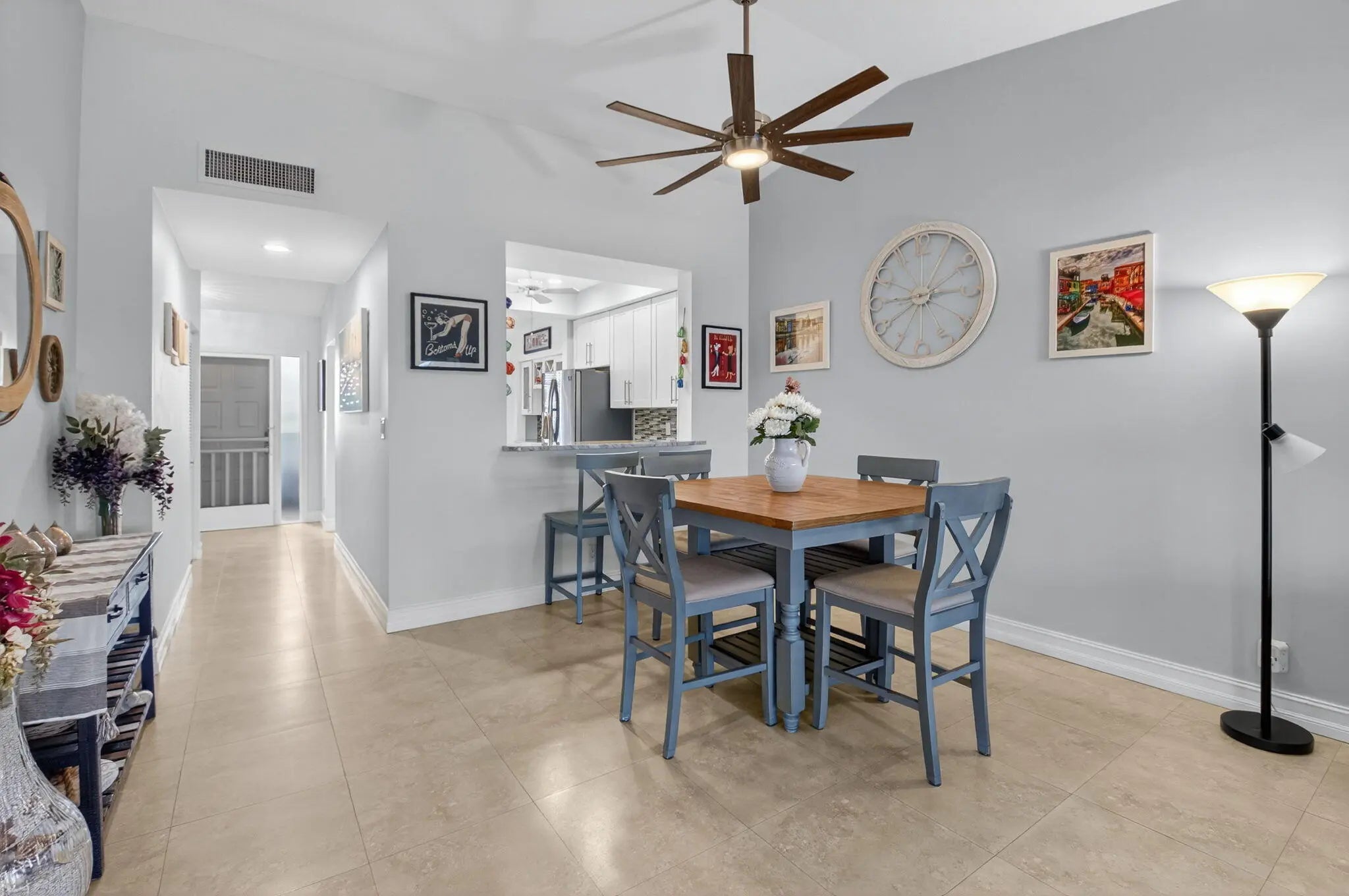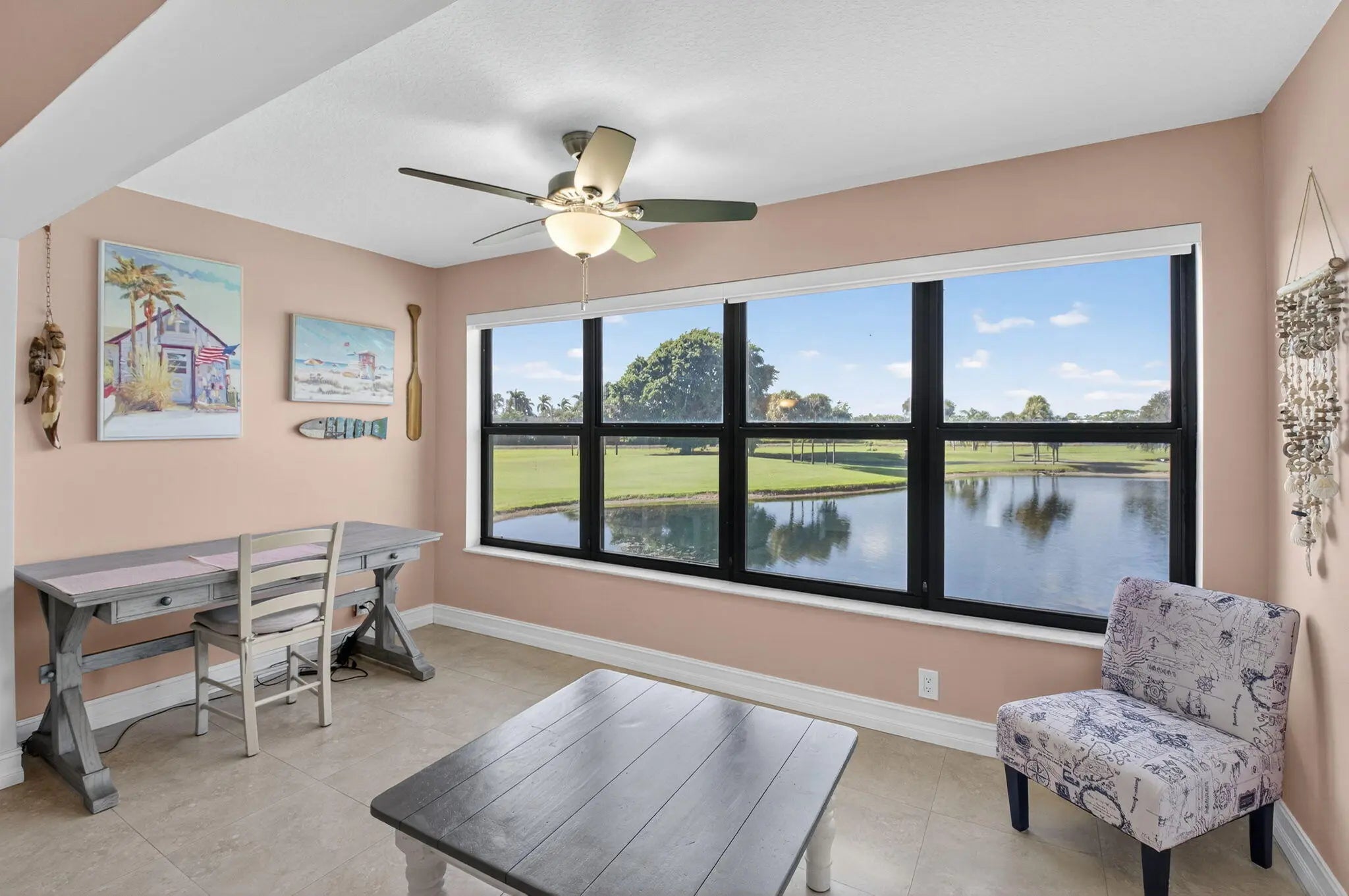 Stunning 2/2 plus den, second floor- corner condo with 1,598sq ft. of modern style. Second living room can be converted to 3 bedrooms. Features vaulted ceilings, an open-concept layout, and golf and water views. In a 55yrs+ Adult Community. Relax on the spacious screened balcony, perfect for morning coffee or evening cocktails. The gourmet kitchen includes Thomasville cabinetry, quartz countertops, stainless steel appliances, and a breakfast bar ideal for entertaining. The primary suite features a walk-in closet, double vanity, and a walk-in shower. Enjoy country club living with NO equity or membership fees in a prime location close to shops, restaurants, highways, and the beach. Internet & water included. Incredible value.