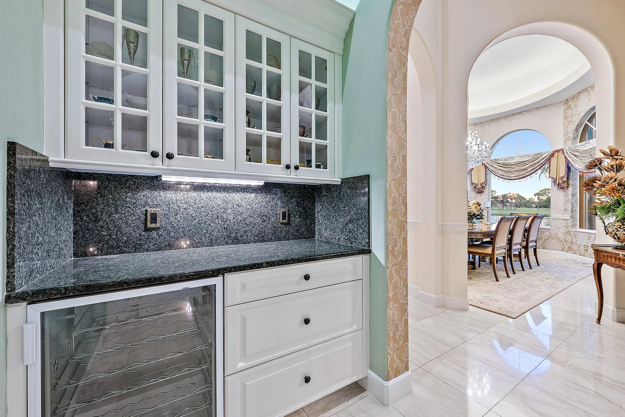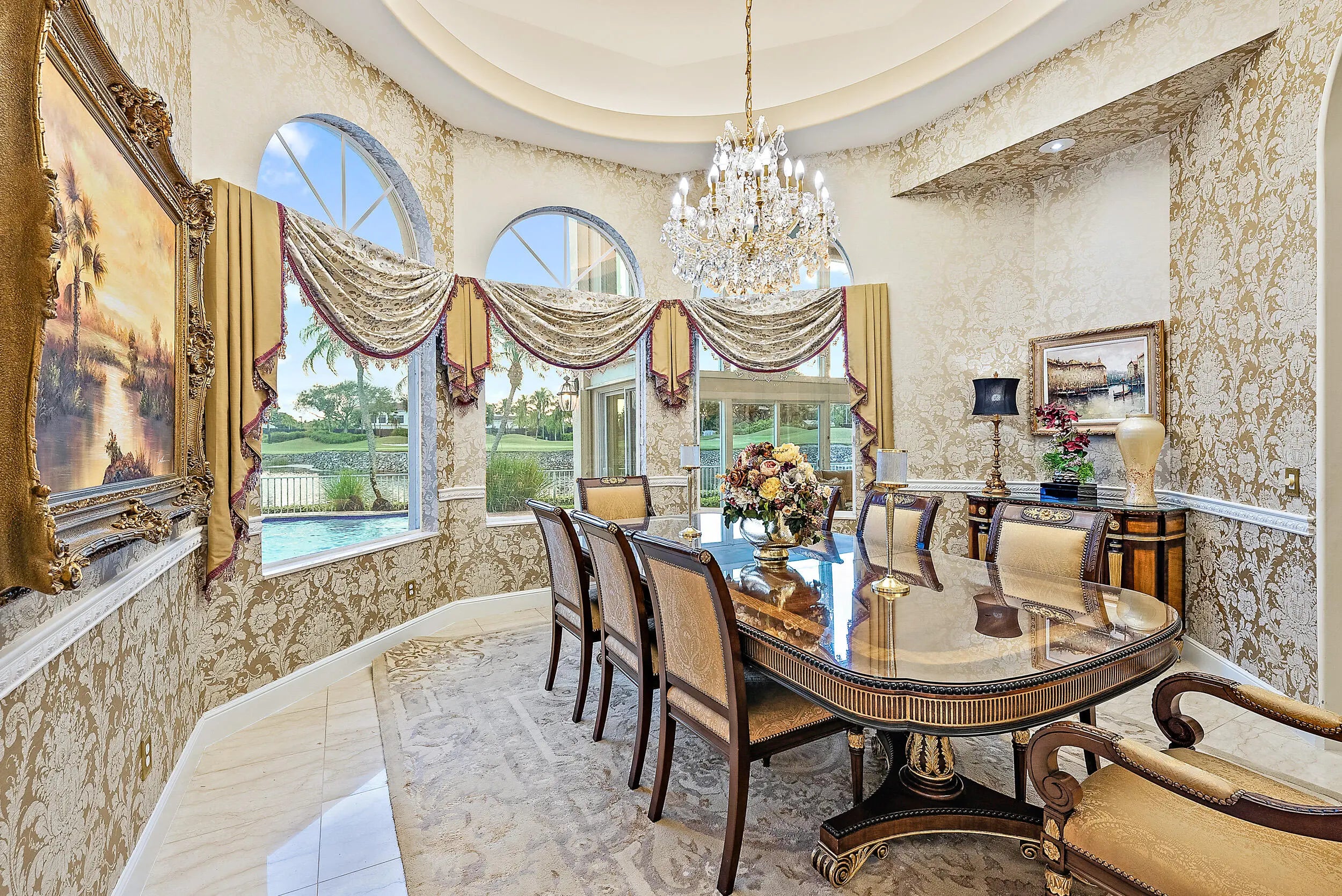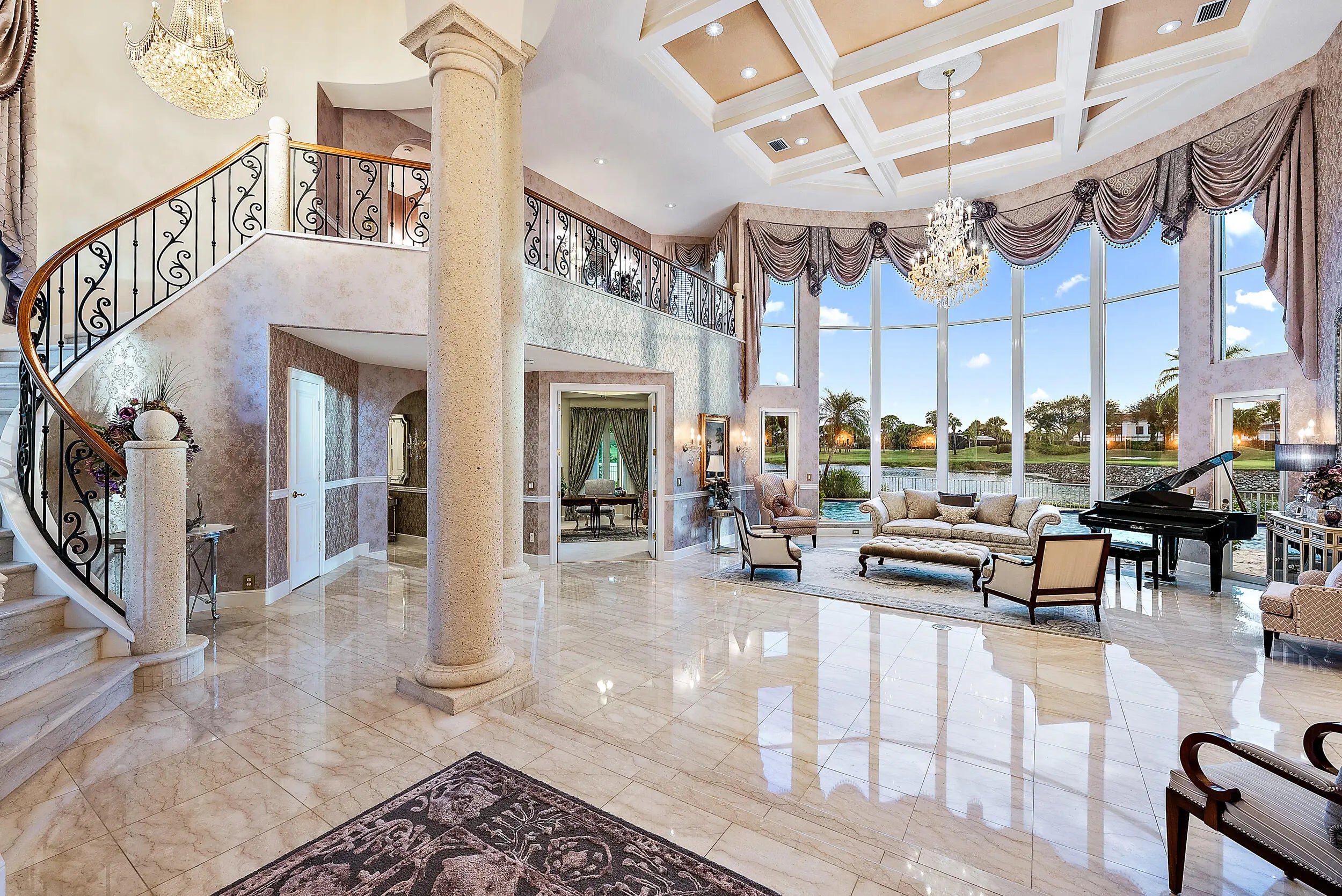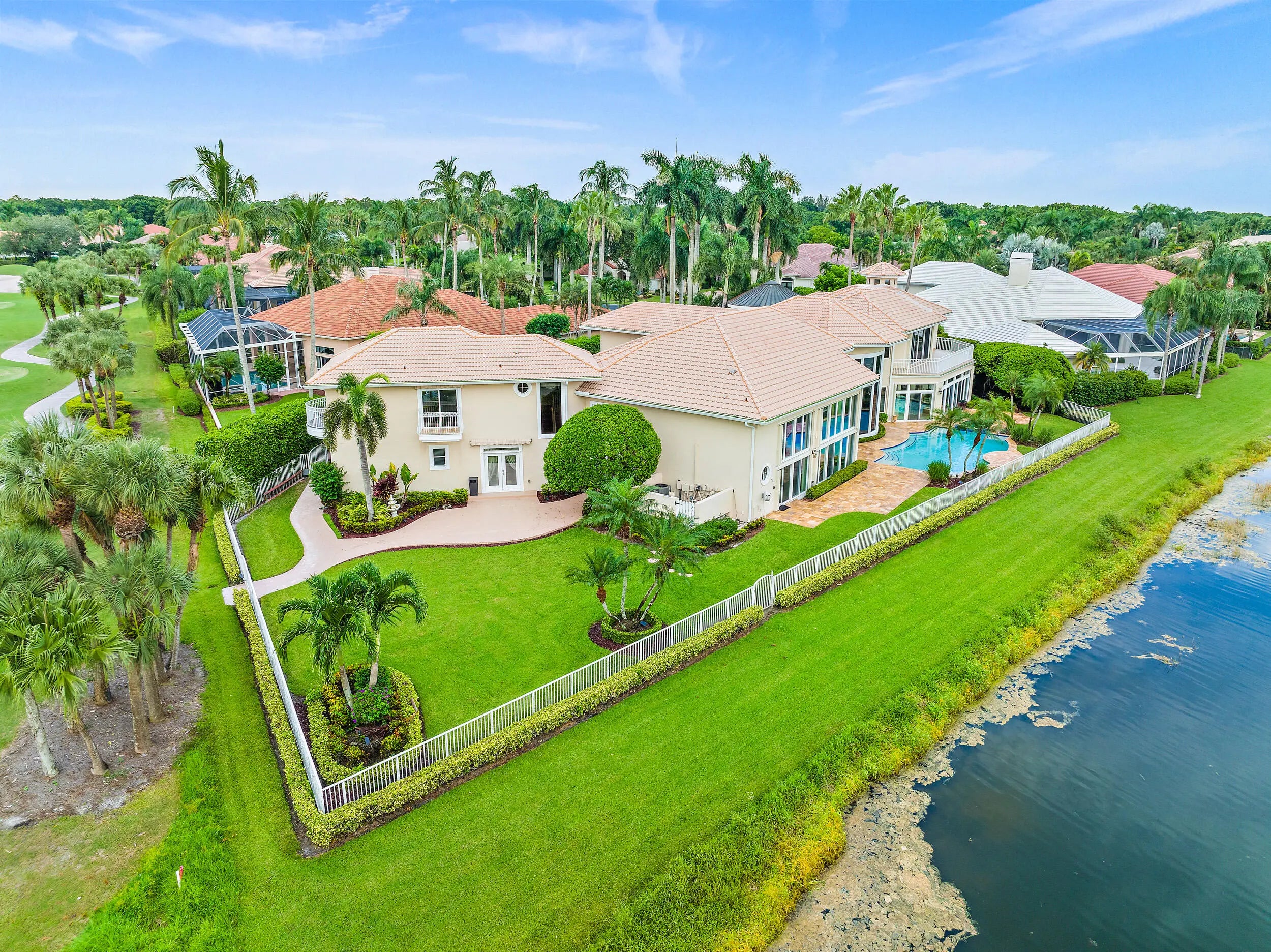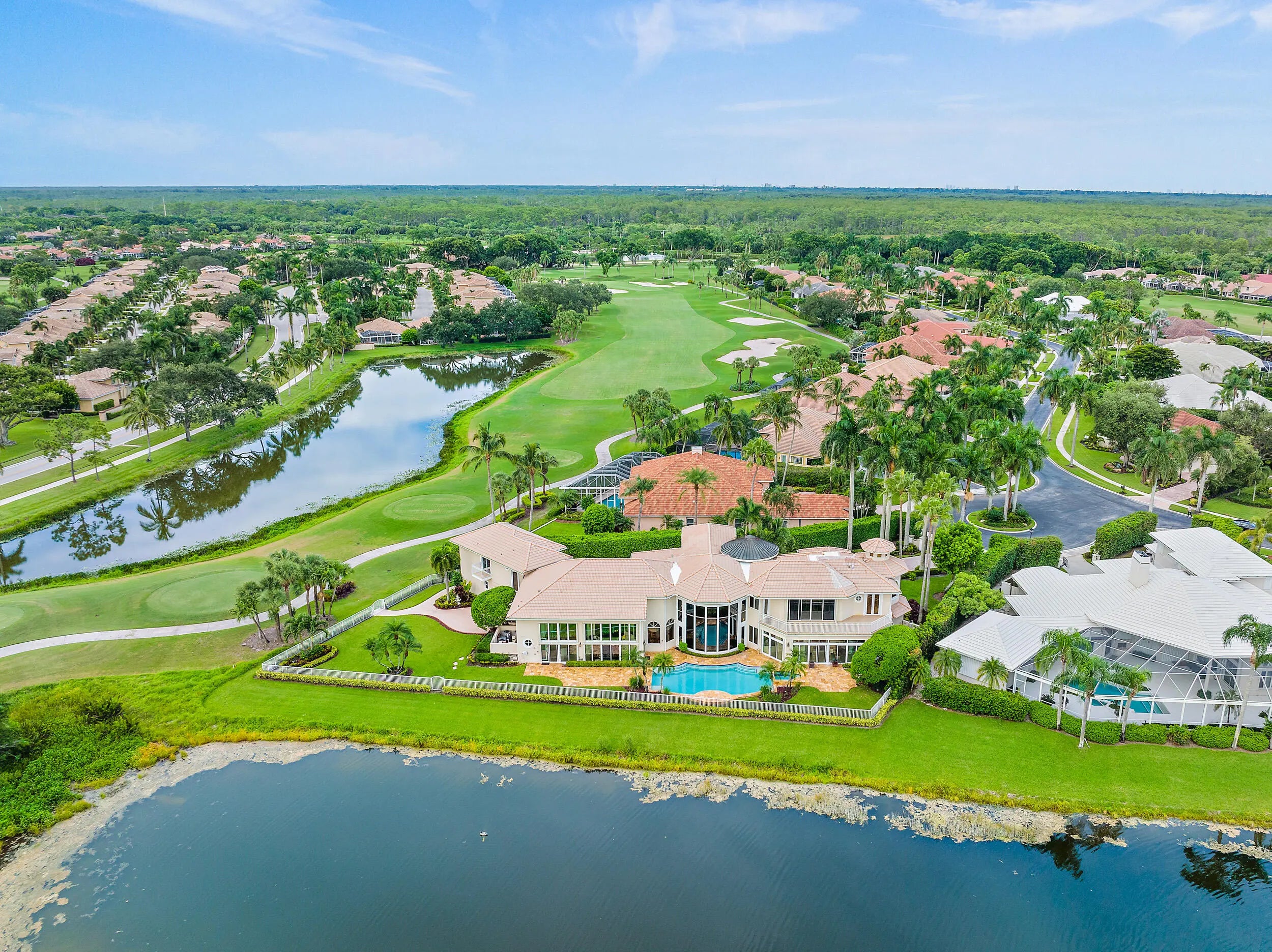This Cribb-built custom masterpiece boasts a premium .58-Acre lot with private golf course access and is located within quick walking distance to the world-class amenities at the Club at Ibis. Location, Location, Location! With 200 FEET OF WATER FRONTAGE, this home offers breathtaking golf and lake vistas from numerous vantage points and balances privacy with incredible curb appeal. Its discrete location, nestled in the cul-de-sac, and its elongated private driveway and Romanesque fountain set the tone for the grand scale of this ICONIC IBIS ESTATE. With soaring ceilings and picturesque views throughout, this architecturally exciting, home has been designed to impress and pamper. The marble spiral staircase is a dramatic focal point, epitomizing estate luxury at its finest. This Cribb-built custom masterpiece boasts a premium .58-Acre lot with private golf course access and is located within quick walking distance to the world-class amenities at the Club at Ibis. Location, Location, Location! With 200 FEET OF WATER FRONTAGE, this home offers breathtaking golf and lake vistas from numerous vantage points and balances privacy with incredible curb appeal. Its discrete location, nestled in the cul-de-sac, and its elongated private driveway and Romanesque fountain set the tone for the grand scale of this ICONIC IBIS ESTATE. With soaring ceilings and picturesque views throughout, this architecturally exciting, home has been designed to impress and pamper. The marble spiral staircase is a dramatic focal point, epitomizing estate luxury at its finest. This masterfully built and fastidiously maintained 6BR home boasts 6 Full Baths and Two Half Baths. All bedrooms are ensuites and there is a full mother-in-law apartment attached to the main houseit's like two residences in one. All new HVAC systems were installed in 2023 with Honeywell wireless thermostats: (7 total; 4 split systems and 3 mini-splits.) With 7707 sf under air, there are two primary suites; one upstairs and one downstairs. The upstairs primary suite is 1600 sf and boasts a loft, sitting room, ample closet space, and opulent bathroom. Enjoy sweeping post-card perfect views from the balcony. A space has been reserved for the installation of an elevator, if the new owner wishes. The versatile floor plan was designed to accommodate family, houseguests, and live-in help, while offering privacy and luxury in one of the most unique and ideal type of lots found in any country club in South Florida. Opulent and dramatic interior styling with impeccable workmanship bring to life this iconic propertyinside and outside. Custom touches create the epitome of luxurious country club living: two full gourmet kitchens and two full laundry rooms, plus a custom sauna, custom engineered outdoor landscape lighting, high-end light fixtures, sconces, custom window treatments and draperies (2019) and custom wallpaper (2019). The recently customized sun room graciously expands the interior space to the magnificent views and outdoor space. The swimming pool was completely refinished in 2023, and the patio was redone with timeless marble pavers. The interior was painted and high-grade carpeting was installed in 2023 as well as new 7" gutters with downspouts and splash guards, and a new tankless on-demand water heaterall in 2023. Toto electric Washlet toilets, a custom stereo system as well as Central Vacuum system were also installed in the home. Ample storage offered throughout this residence. With 200 feet of water frontage on the western side and 100 feet of golf course views on the northern side, this lushly landscaped and manicured property offers a large yard space, with world-class amenities of the Club at Ibis literally in your backyard. There are several balconies/sunning decks that offer incomparable views of golf and lake vistas including the 18th green of the Heritage, as well as Heritage #10. One of the few properties in Ibis to enjoy private golf course access. This widely recognized estate offers two things that rarely go hand in hand: a large country club estate property and close proximity to the Club itself. The Club at Ibis is an award-winning community that boasts a 90,000 sq. ft. clubhouse, three 18-hole Nicklaus-family Championship golf courses, five restaurants, a world-class fitness complex and spa, and incredible tennis and pickleball facilityall located within steps of this magnificent property.