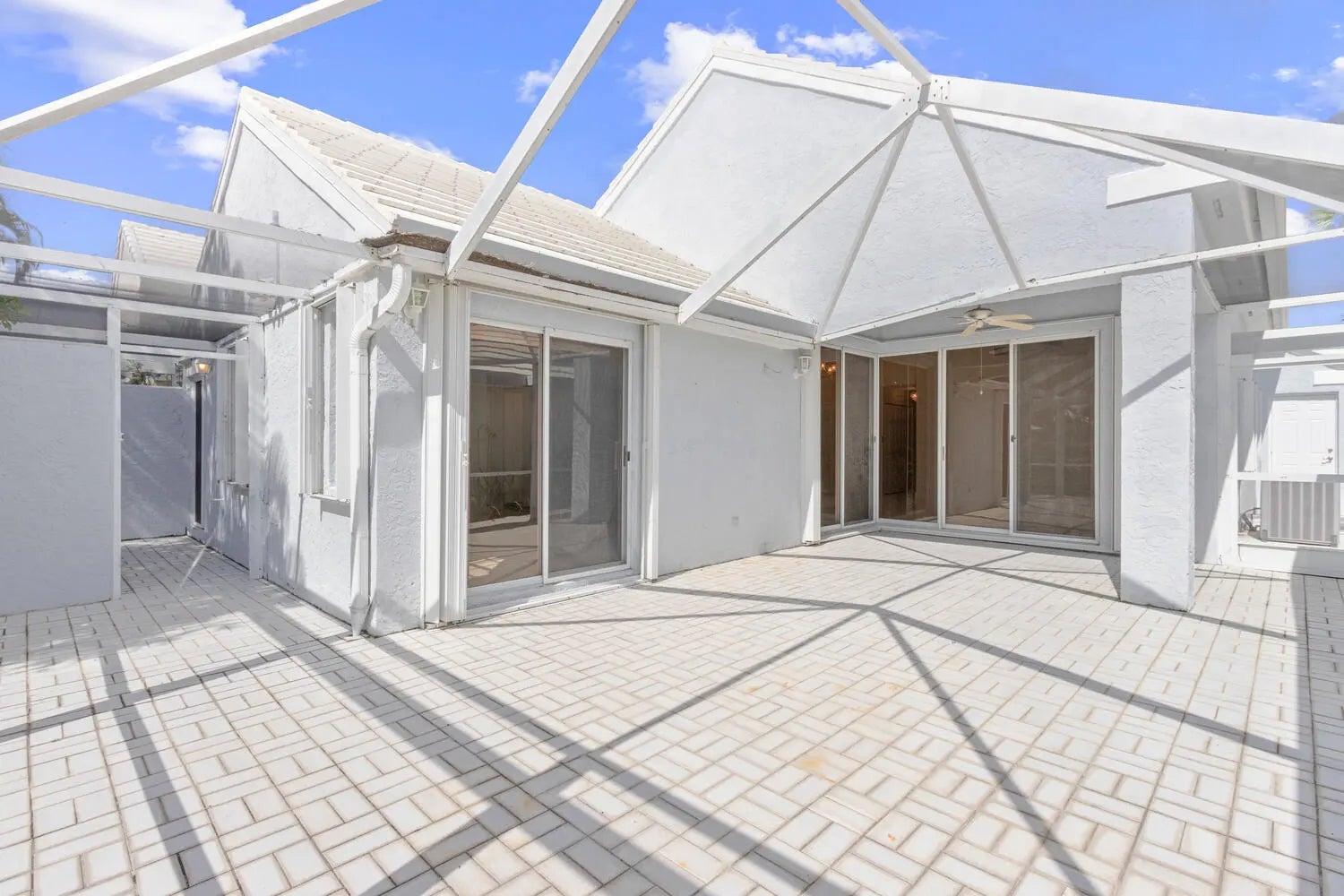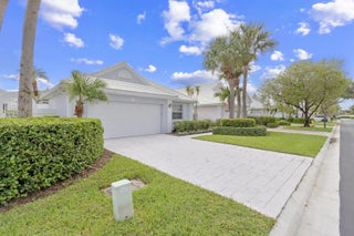 Discover the beauty of Barclay Club, nestled by a tranquil lake lagoon in gated PGA National Golf & Resort Community. This charming home features 3 bedrooms, 2 baths, and a 2-car garage, just steps to a private community pool for residents. Upgrades include impact glass doors, hurricane shutters, elegant 20x20 ceramic tile floors in the living areas. Enjoy the extended, screened back patio with serene water views, complemented by abundant natural light from windows, doors and skylights. With a low HOA fee and no mandatory golf membership, this home is ideal for both seasonal and year-round living.