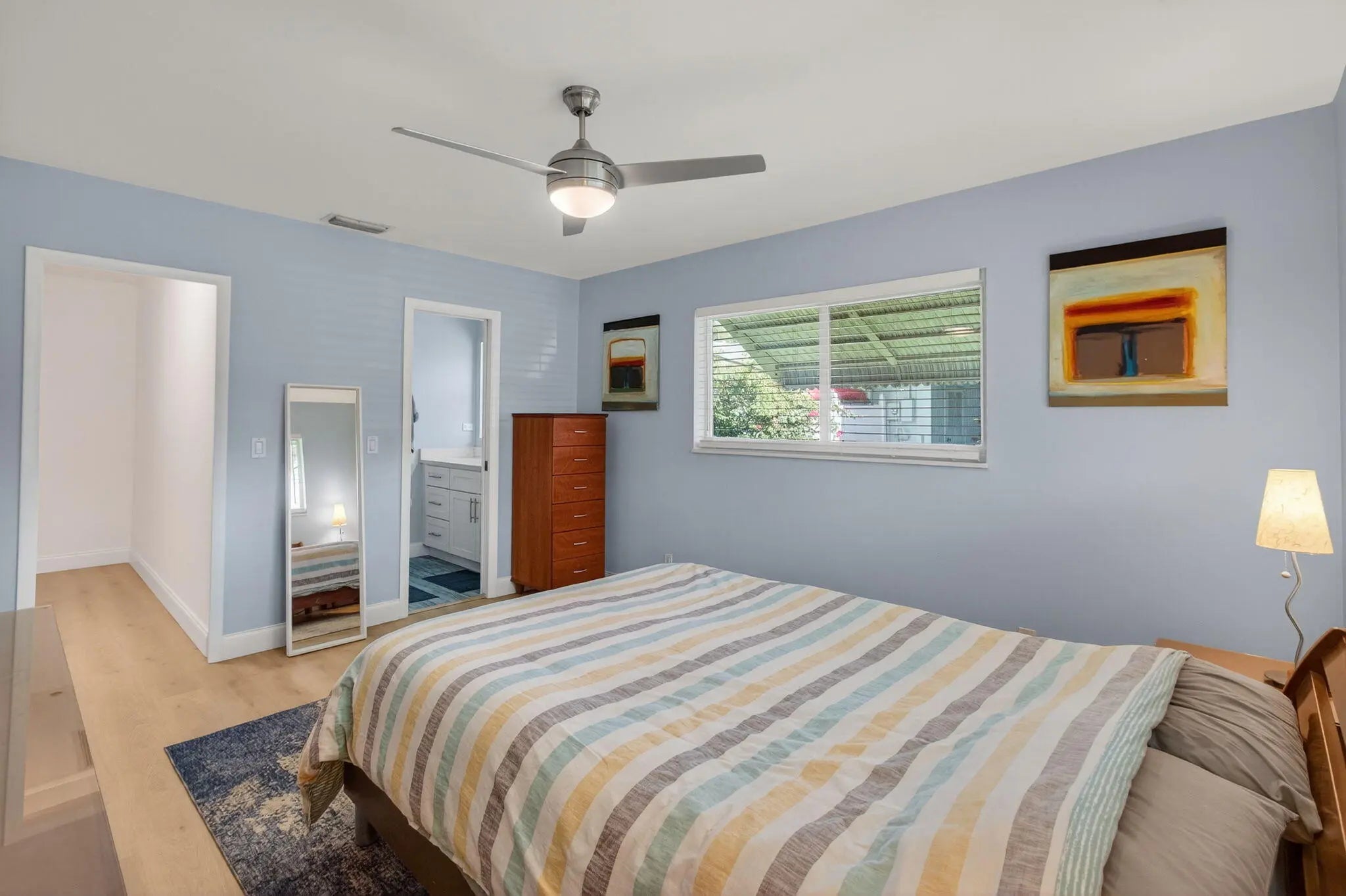Experience the best of modern Florida living in this beautifully renovated 2-bedroom, 2-bath villa, ideally situated on a peaceful canal in the highly sought-after 55+ community of Country Manors. Every inch of this home has been thoughtfully updated to combine contemporary style with comfort and functionality, offering a truly move-in-ready retreat just minutes from downtown Delray Beach. The modern kitchen is a showpiece, featuring white shaker cabinetry, sparkling quartz countertops, a stunning tile backsplash, and stainless-steel appliances. Every detail has been designed for beauty and practicality, from ample storage to the sleek finishes that complement the open layout. The home's primary suite is a tranquil haven with a walk-in closet and an updated ensuite bathroom showcasing designer fixtures and finishes. The guest bedroom provides flexible space for visiting friends or can easily serve as a comfortable home office or hobby room. Both bathrooms are tastefully updated, reflecting the home's overall modern aesthetic. A highlight of the home is the enclosed patio/sunroom, offering serene water views of the canal - the perfect spot to enjoy morning coffee, read a book, or simply unwind in privacy. Adjacent to the patio is a dedicated laundry and storage room equipped with a full-size washer and dryer, providing everyday convenience. Additional upgrades include new exterior paint (2025), AC (2020), hot water heater (2023), neutral flooring throughout, and popcorn-free ceilings. Furniture is negotiable - offering an easy, turnkey option for immediate enjoyment. Beyond the villa itself, Country Manors offers a vibrant social lifestyle with amenities designed to keep residents active and engaged. Enjoy nine swimming pools, a clubhouse with organized social activities, a fitness center, billiards room, and shuffleboard courts. The monthly HOA fee includes all amenities plus cable, ensuring an effortless lifestyle in a friendly, well-maintained community. Located just a short drive from Downtown Delray's famed Atlantic Avenue, residents can explore award-winning restaurants, art galleries, boutique shopping, and beautiful sandy beaches - all within minutes of your doorstep. Whether you're looking for a year-round residence or a seasonal retreat, this home offers the perfect combination of location and lifestyle in one of Delray Beach's most welcoming 55+ communities. Don't miss this exceptional opportunity to own your piece of paradise.