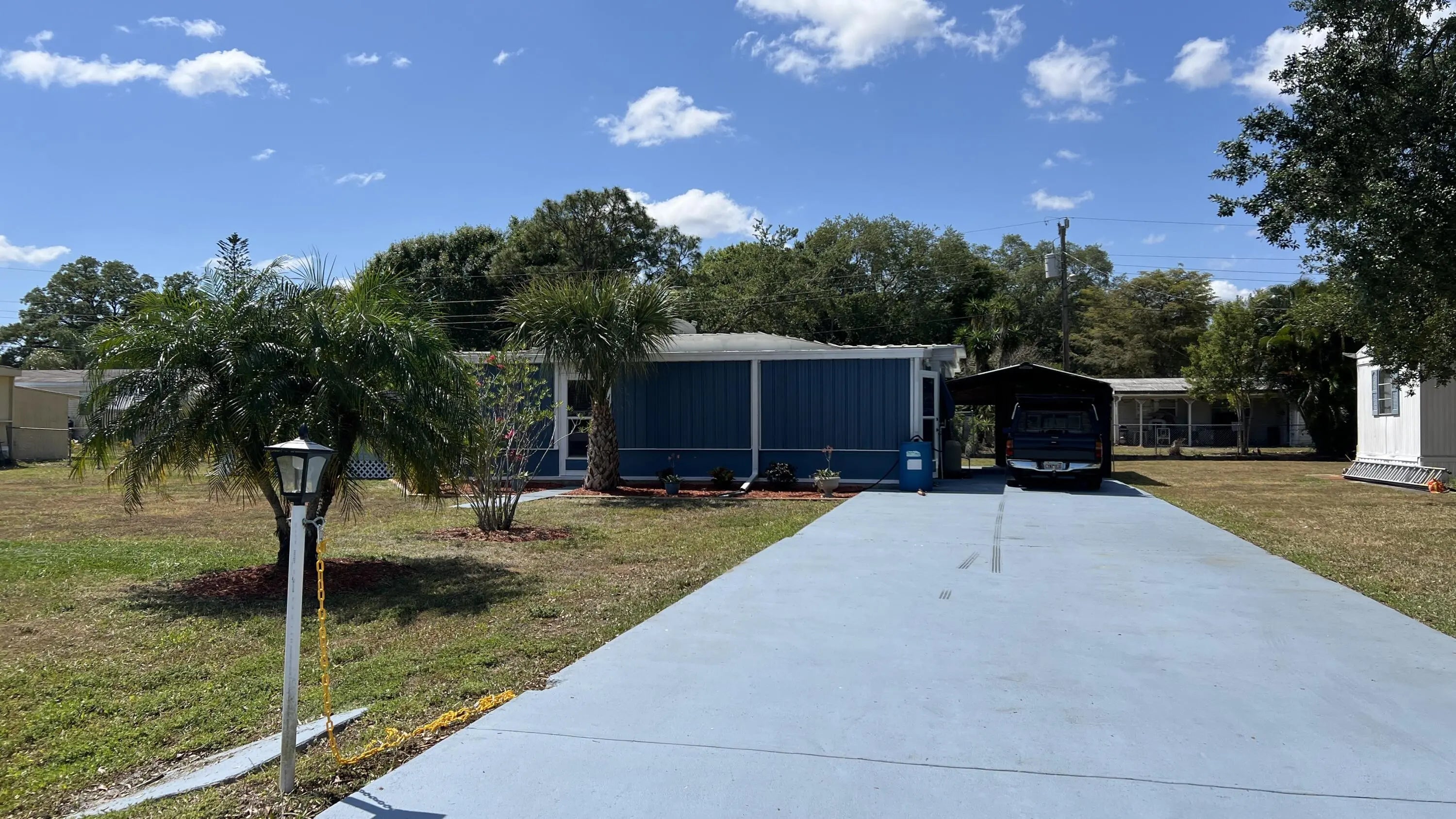 2 bedroom 1.5 bathroom mobil home in Lakewood Park. Carpet and Vinyl flooring. Big yard. Renters insurance is required. First, Last and Security. Tenant is responsible for lawn care.