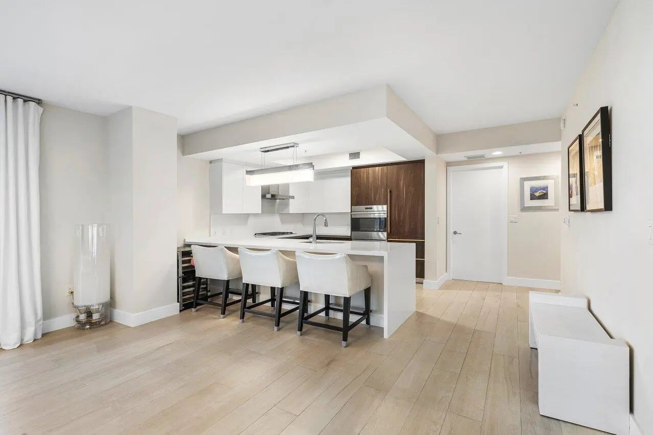 Residence 707 offers 2 Bedrooms, 2.5 Bathrooms with Skyline and Sunset Views through Floor-to-Ceiling Windows. The Open Living Area leads to a Private Terrace with Built-In BBQ. The Gourmet Kitchen features Italian Cabinetry,Quartz Countertops, and Sub-Zero & Wolf Appliances, including a Gas Cooktop. The Primary Suite offers a Walk-In Closet, Dual Vanities, Soaking Tub, and Glass-Enclosed Shower. En-Suite Guest Bedroom, Laundry Room, and Powder Room. Designer Furnishings Negotiable. RIVA amenities: Fitness Center, Heated Lap Pool, Yoga Studio, Spa, Outdoor Jacuzzi, Resident Lounge, Sunset Deck, Riverfront Dock with Ocean Access, 24/7 Front Desk, Valet, 2 Dog Walks, and Three Guest Suites. Includes 1 Parking Space. Boat Slip Available for Rent or Purchase Separately. One Mile to Beach.
