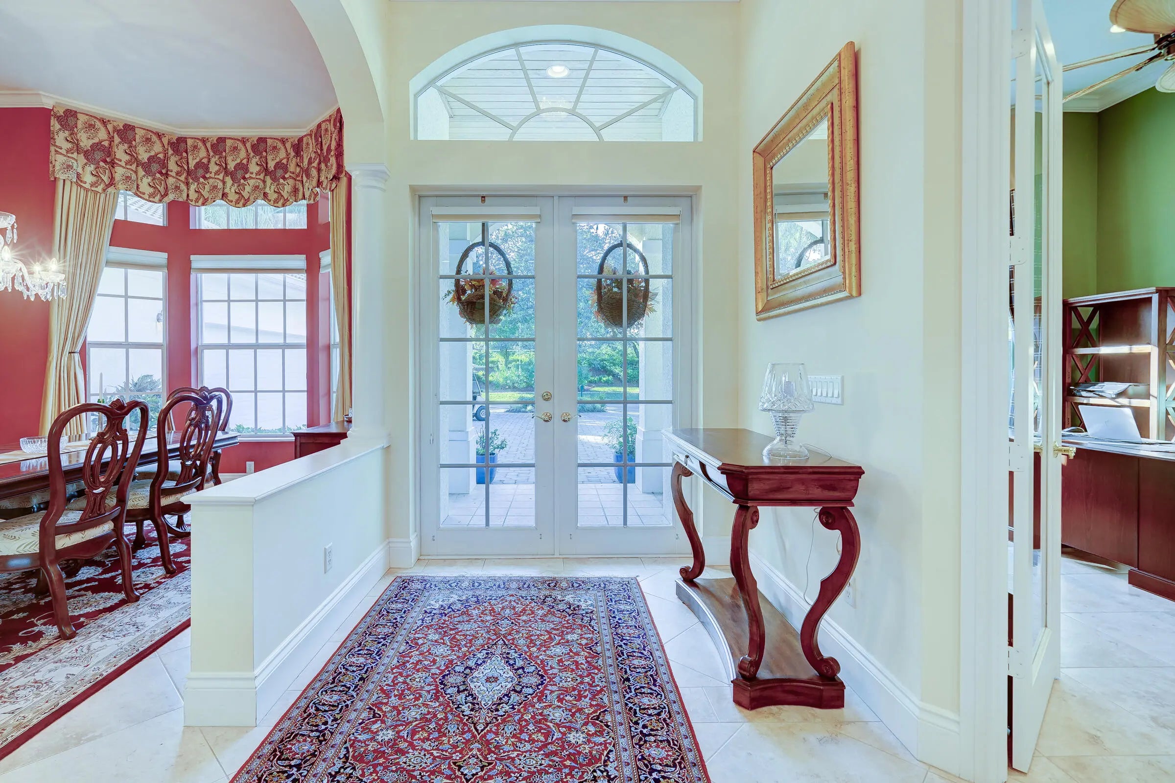 Luxury lakeside living awaits in this 5BR, 3 full & 2 half bath home in prestigious Willoughby Golf Club. All impact glass & doors. Main level features a spacious primary suite, 2 guest rooms w/ Jack & Jill bath, office w/ closet (possible 6th BR), living rm w/ gas fireplace, great rm w/ cabana bath opening to lanai & grill area, dining rm, breakfast nook, and kitchen w/ double wall ovens, island, prep sink & 2nd DW. Elegant wood & tile floors flow throughout. Upstairs offers 2 more BRs, full bath & private balcony overlooking the lake & pool. Enjoy resort-style amenities—golf, tennis, pickleball & more. Minutes from downtown Stuart's dining, boutiques & farmers market.